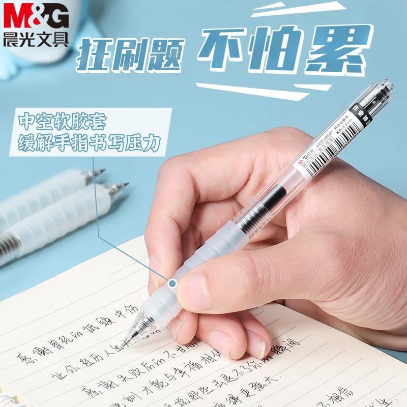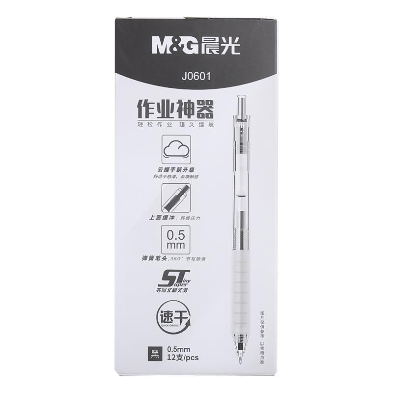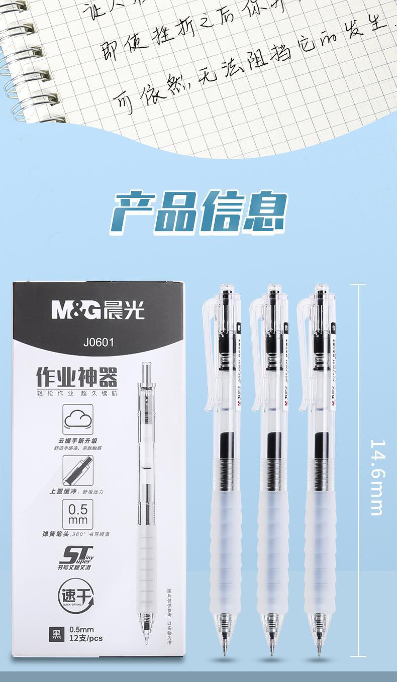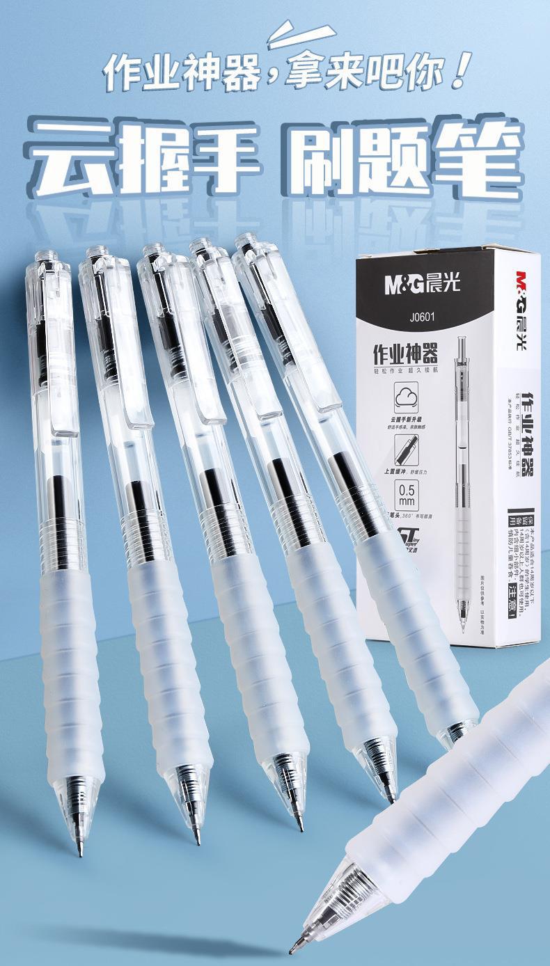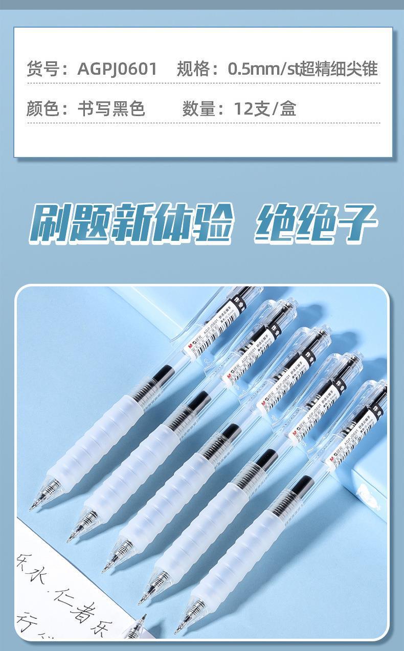 晨光中性笔作业神器系AGPJ0601黑色0.5子弹头按动签字笔学生文具