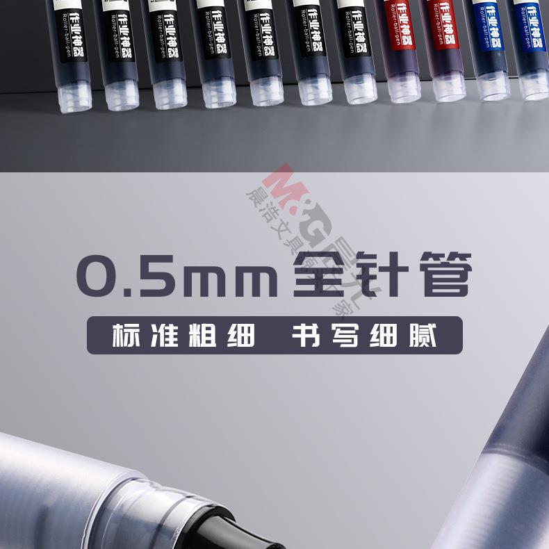 晨光作业神器中性笔ARPM2001速干直液式走珠笔0.5mm大容量全针管