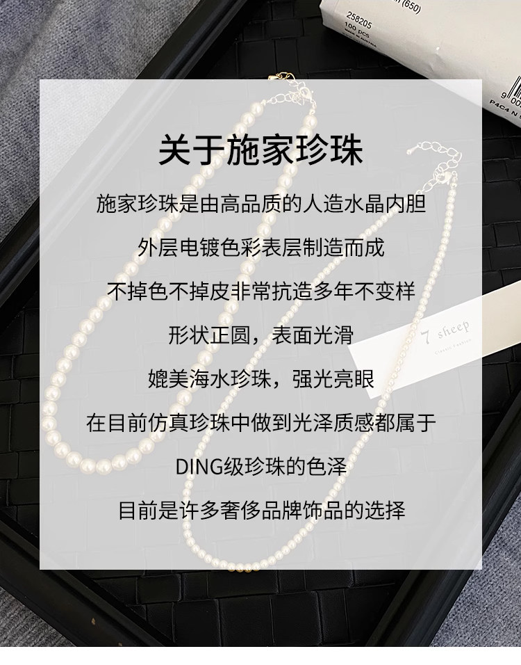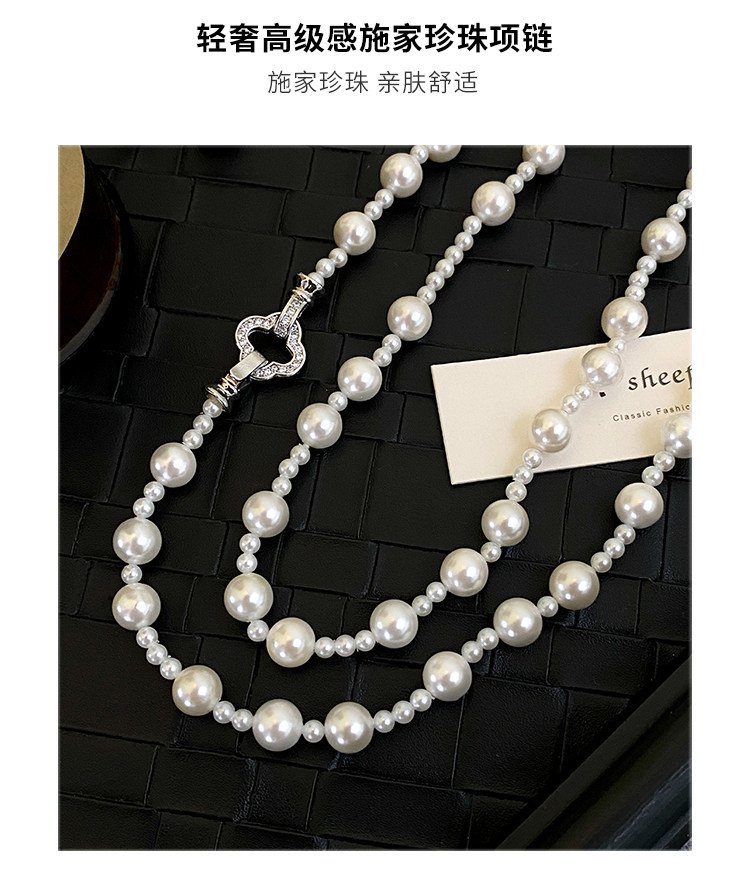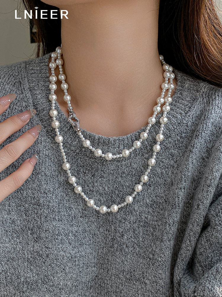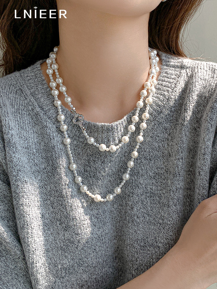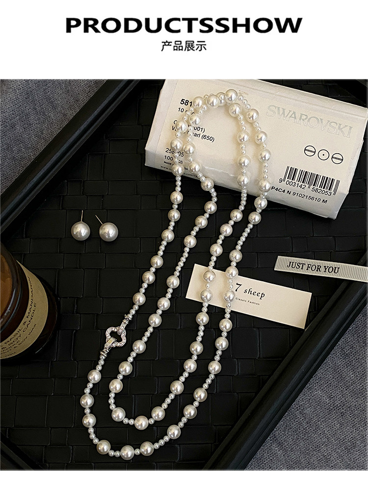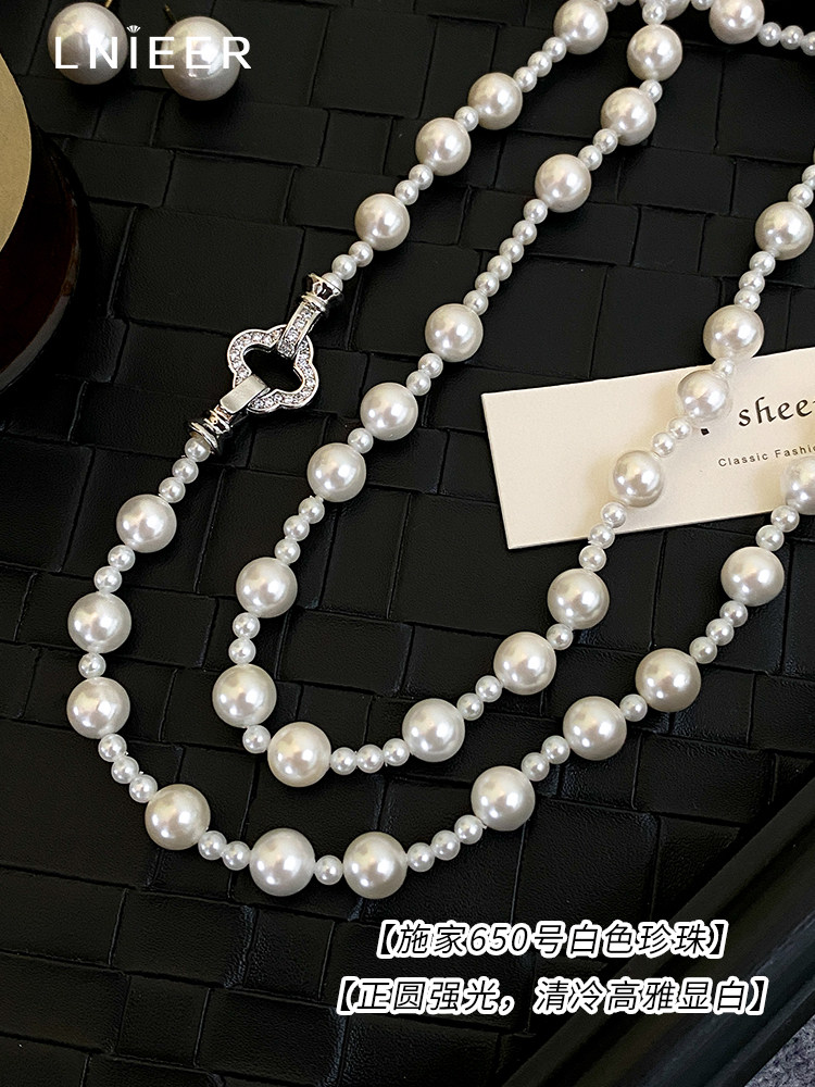 施家强光珍珠项链女轻奢小众高级感长款叠戴锁骨链2025气质毛衣链