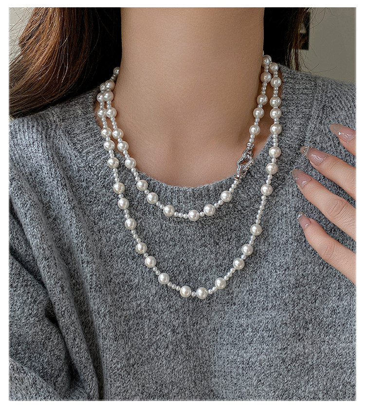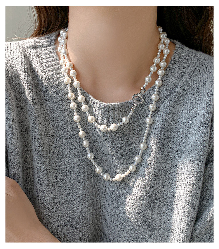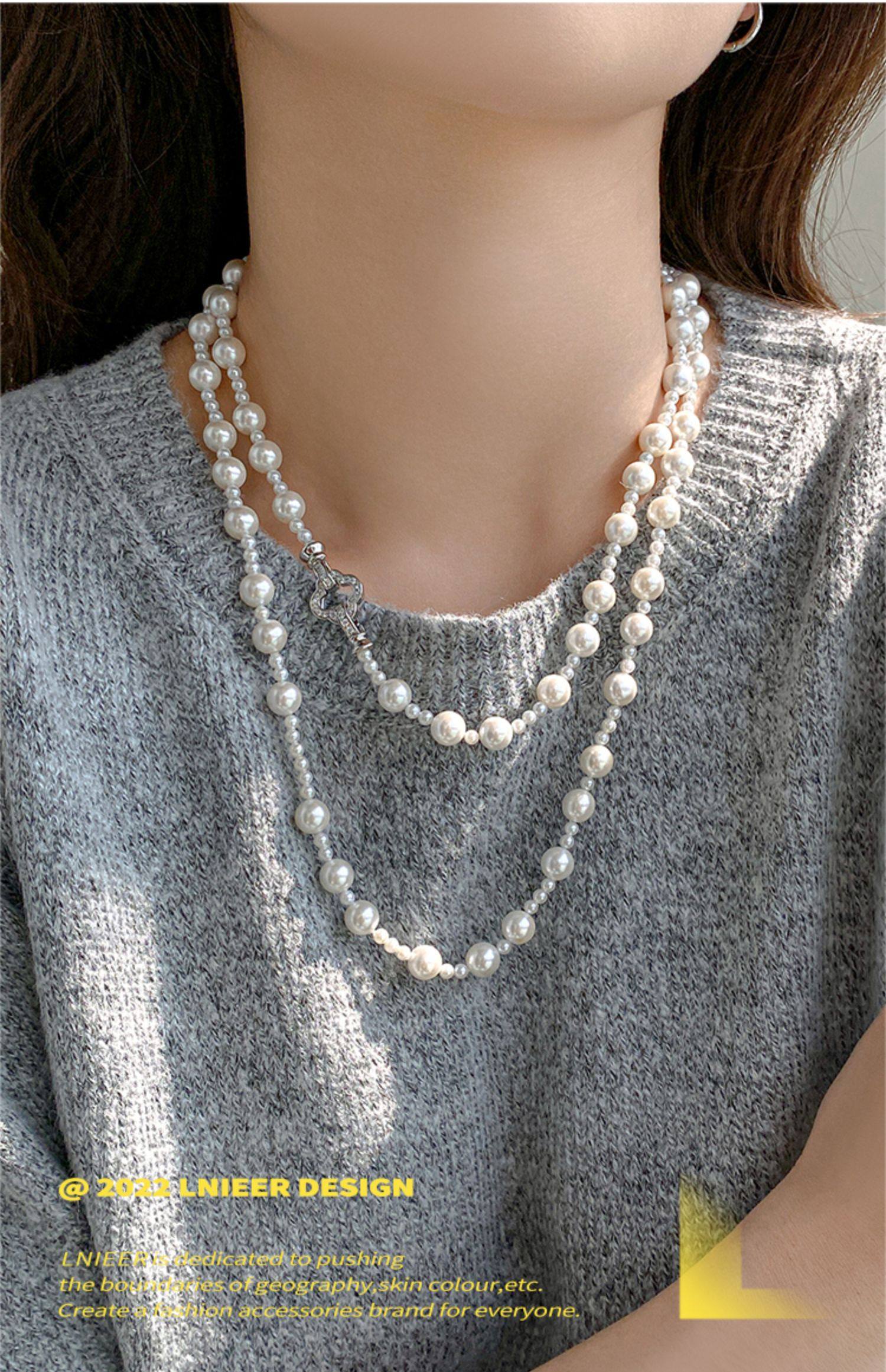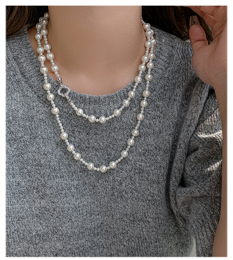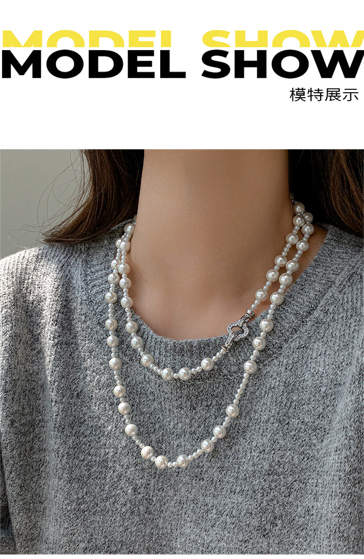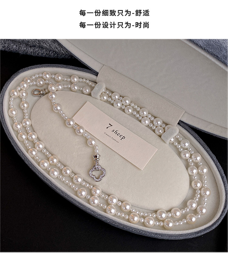 施家强光珍珠项链女轻奢小众高级感长款叠戴锁骨链2025气质毛衣链