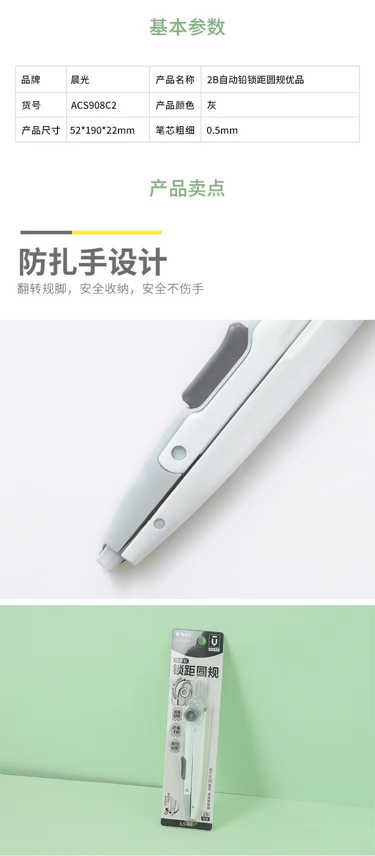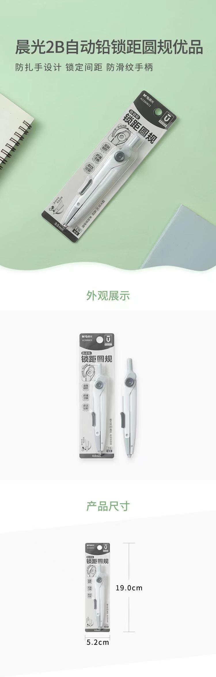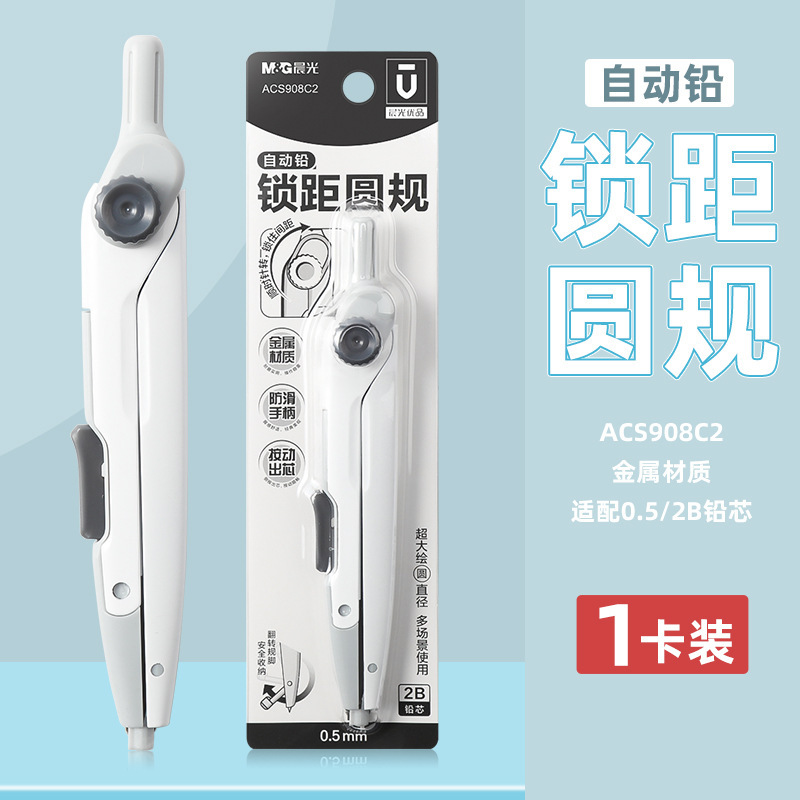 晨光优品系列锁距圆规2B按动出芯学生画图工具角度可锁定ACS908C2
