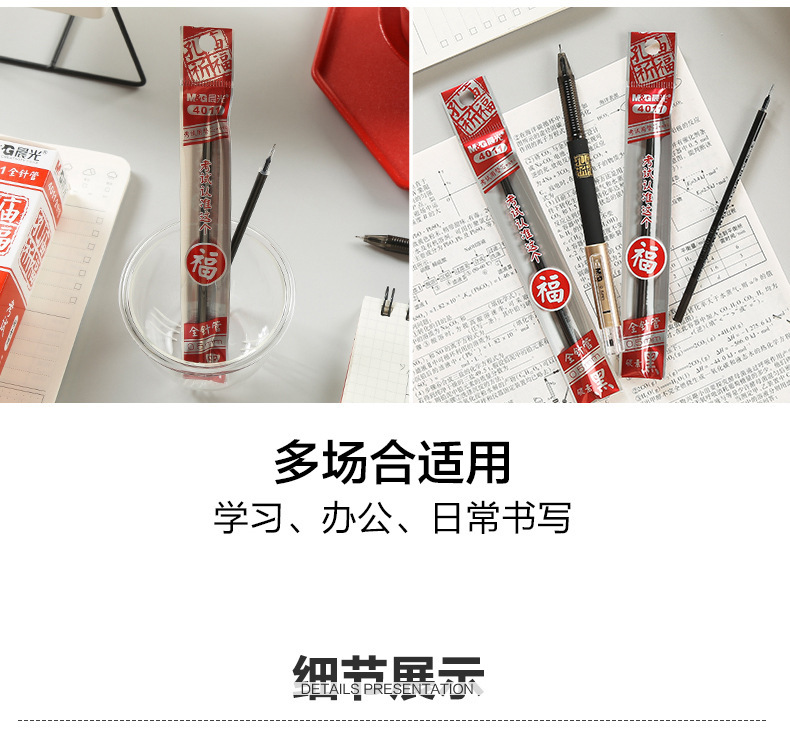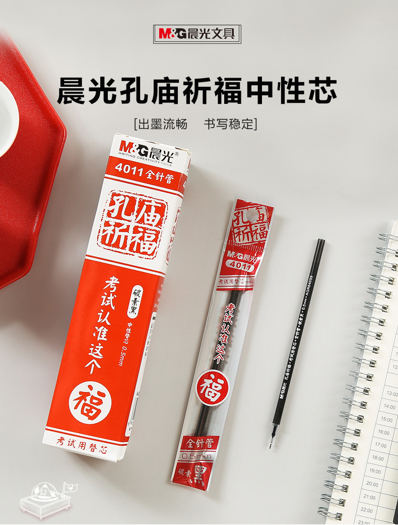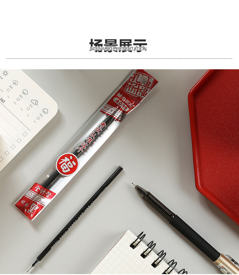 晨光孔庙祈福中性笔芯0.5mm全针管碳素黑色书写水笔芯4011批发