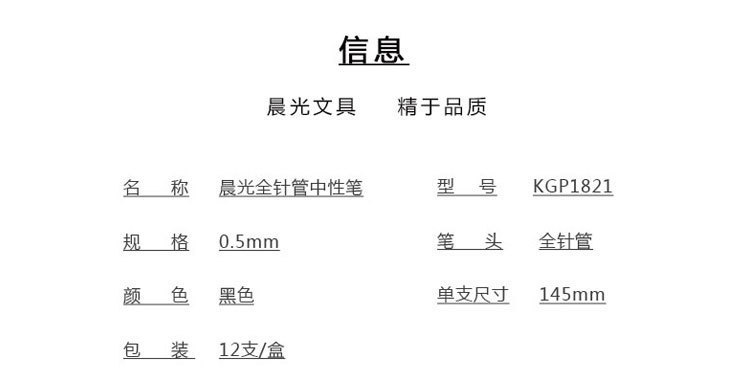 晨光KGP1821中性笔学生用0.5mm全针管黑色考试用笔水笔签字笔