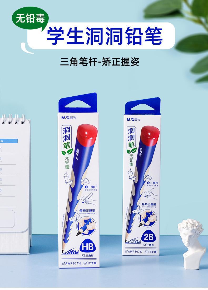 晨光正姿洞洞笔2B/HB矫正握姿三角木杆铅笔AWP30717学生书写文具