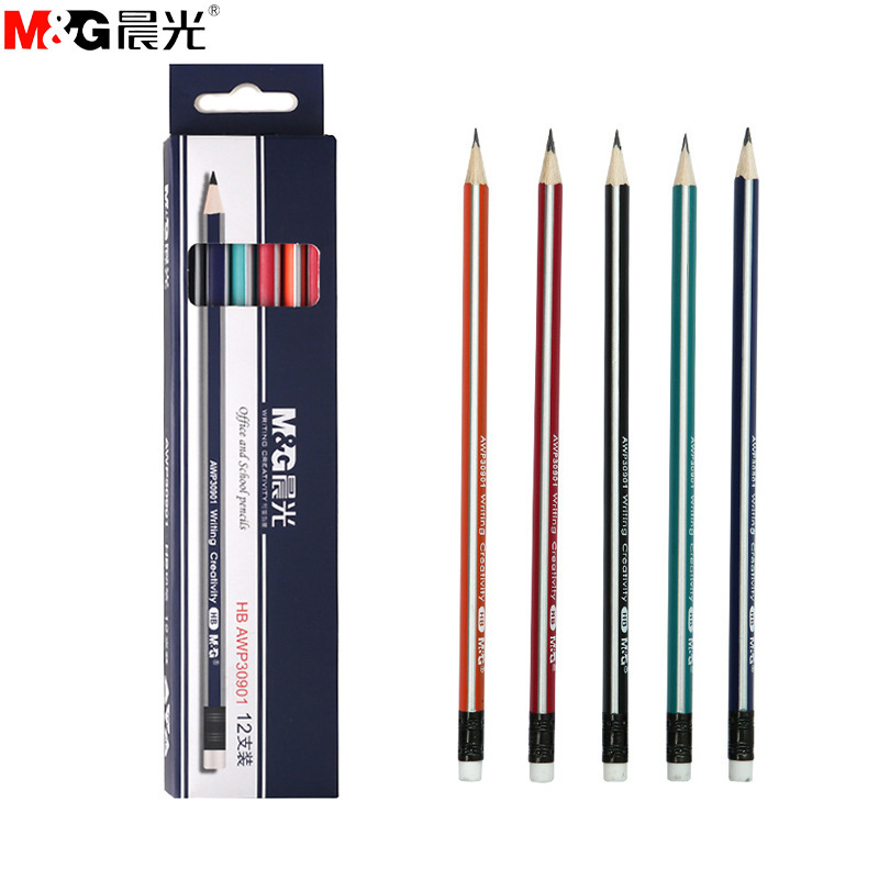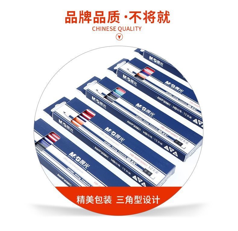 晨光铅笔小学生HB三角杆木制彩色带橡皮正姿无铅毒文具批发30901