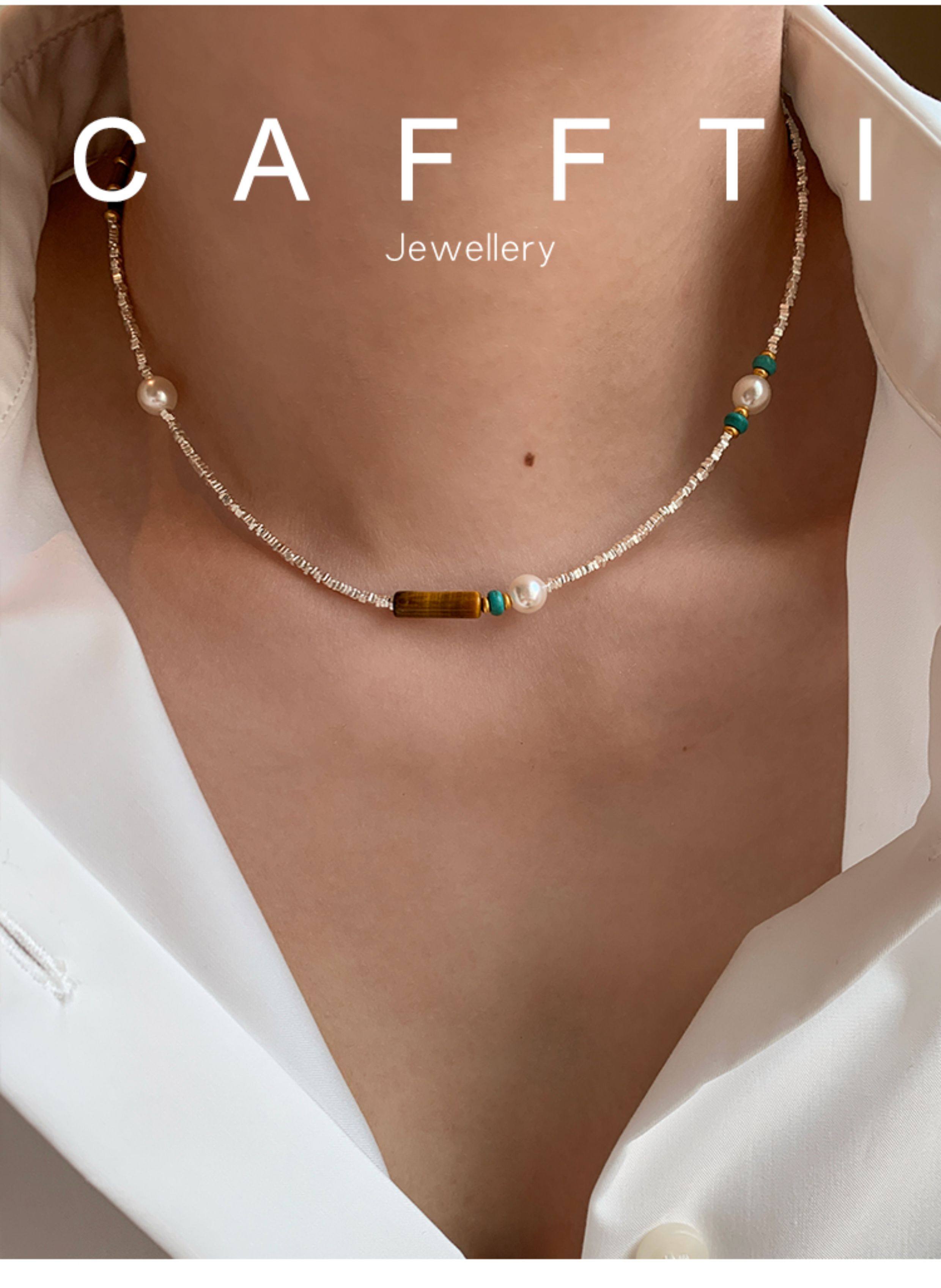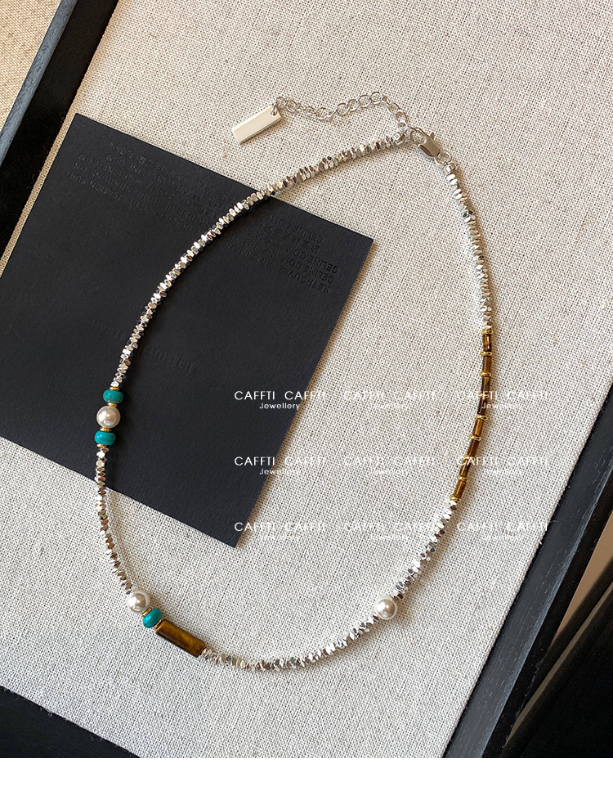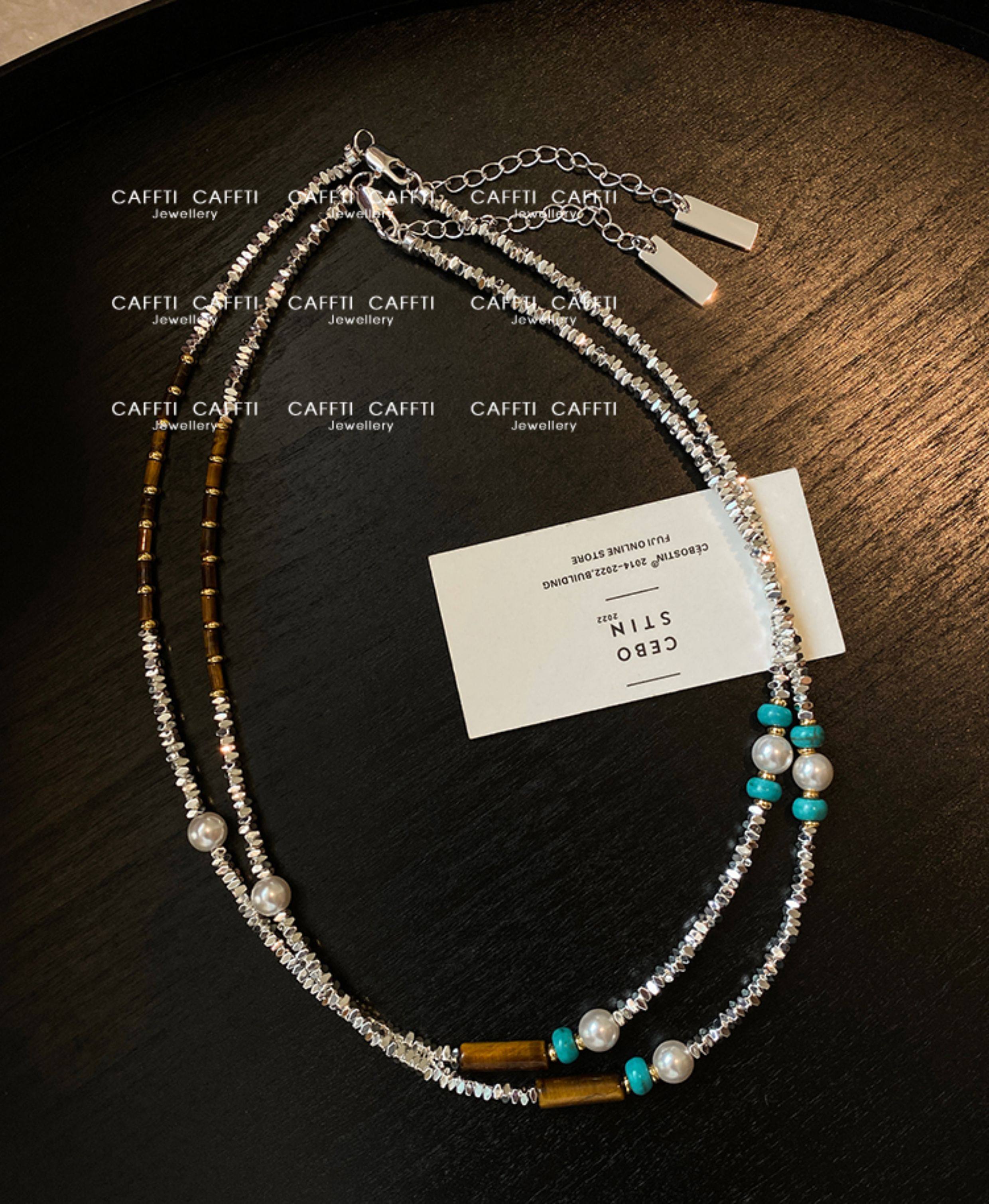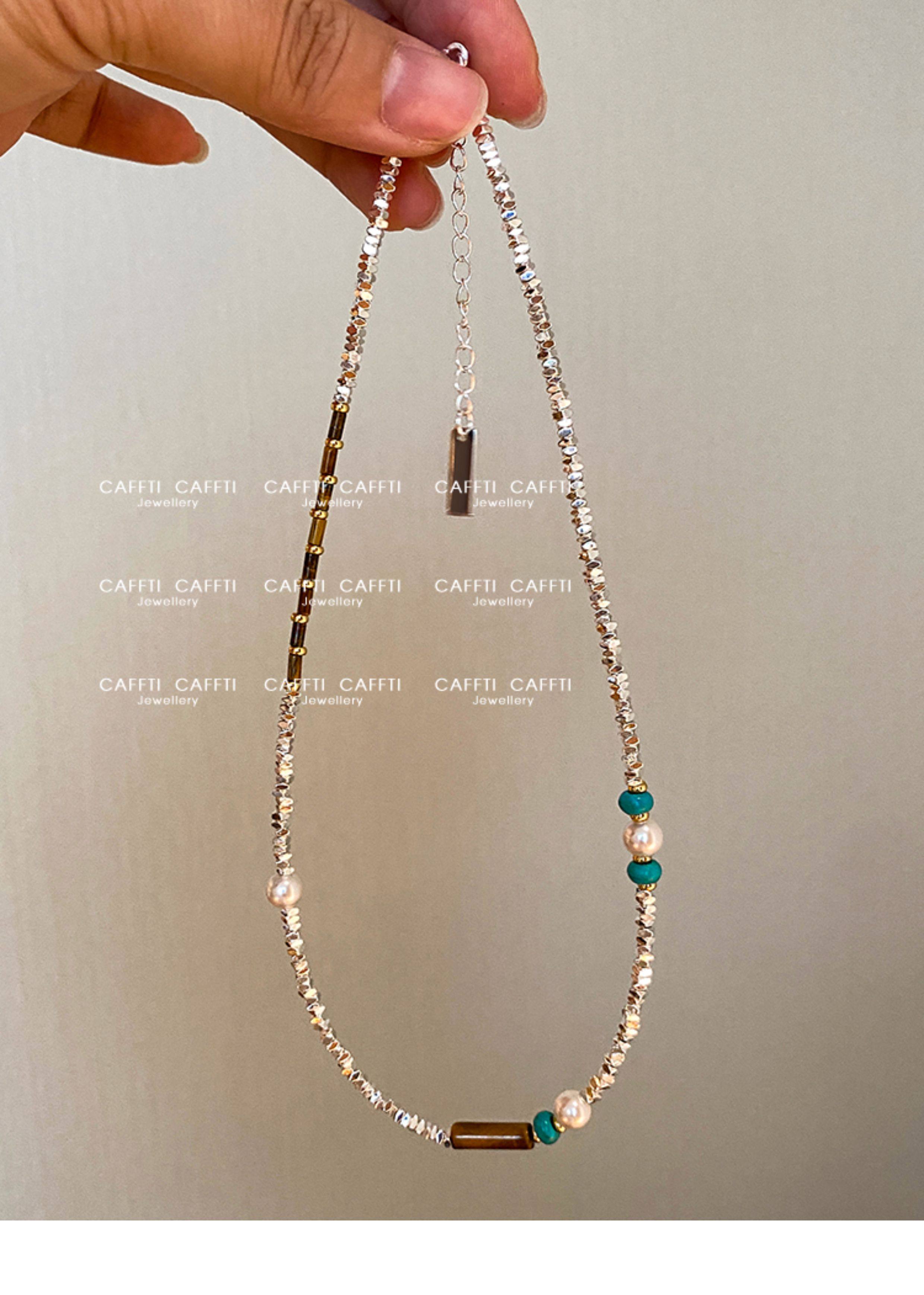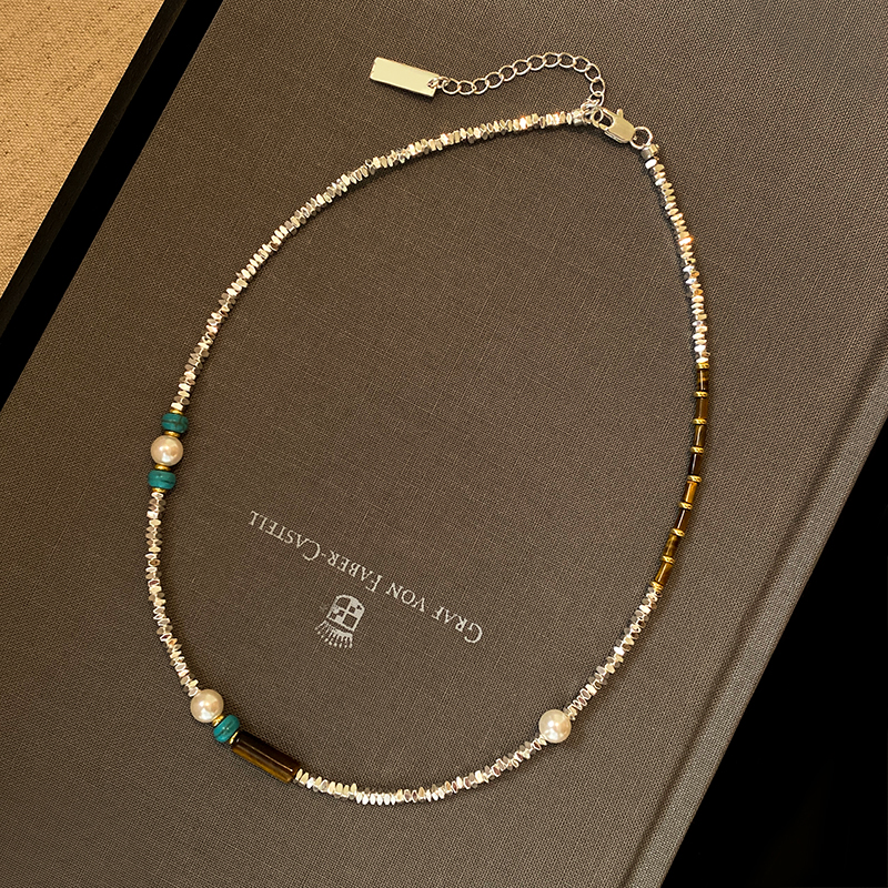 碎银子天然石绿松石色串珠珍珠项链女高级感轻奢小众独特锁骨颈链