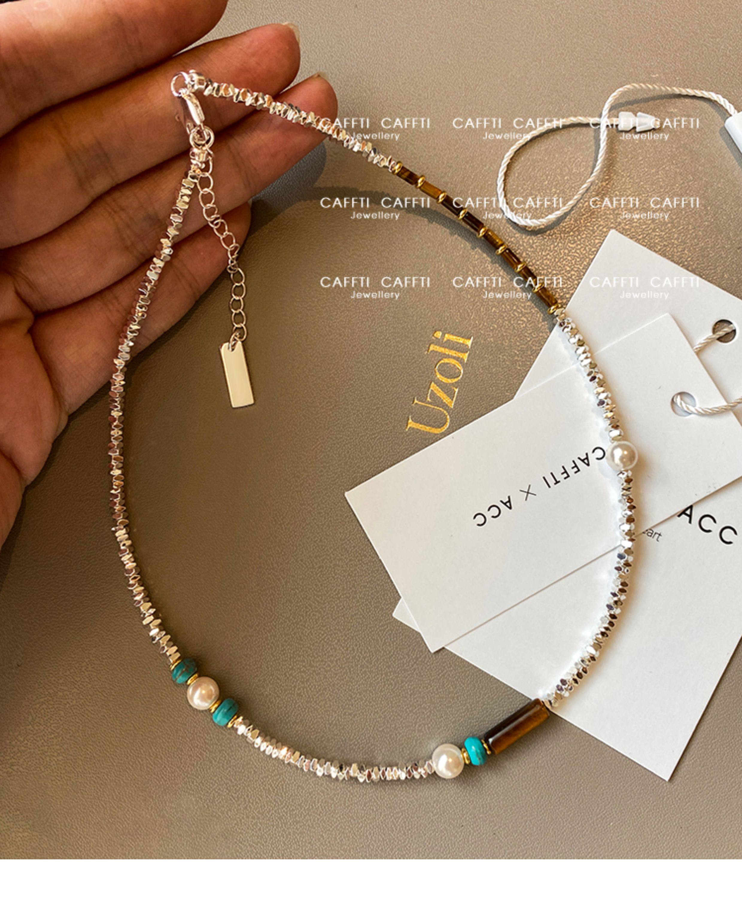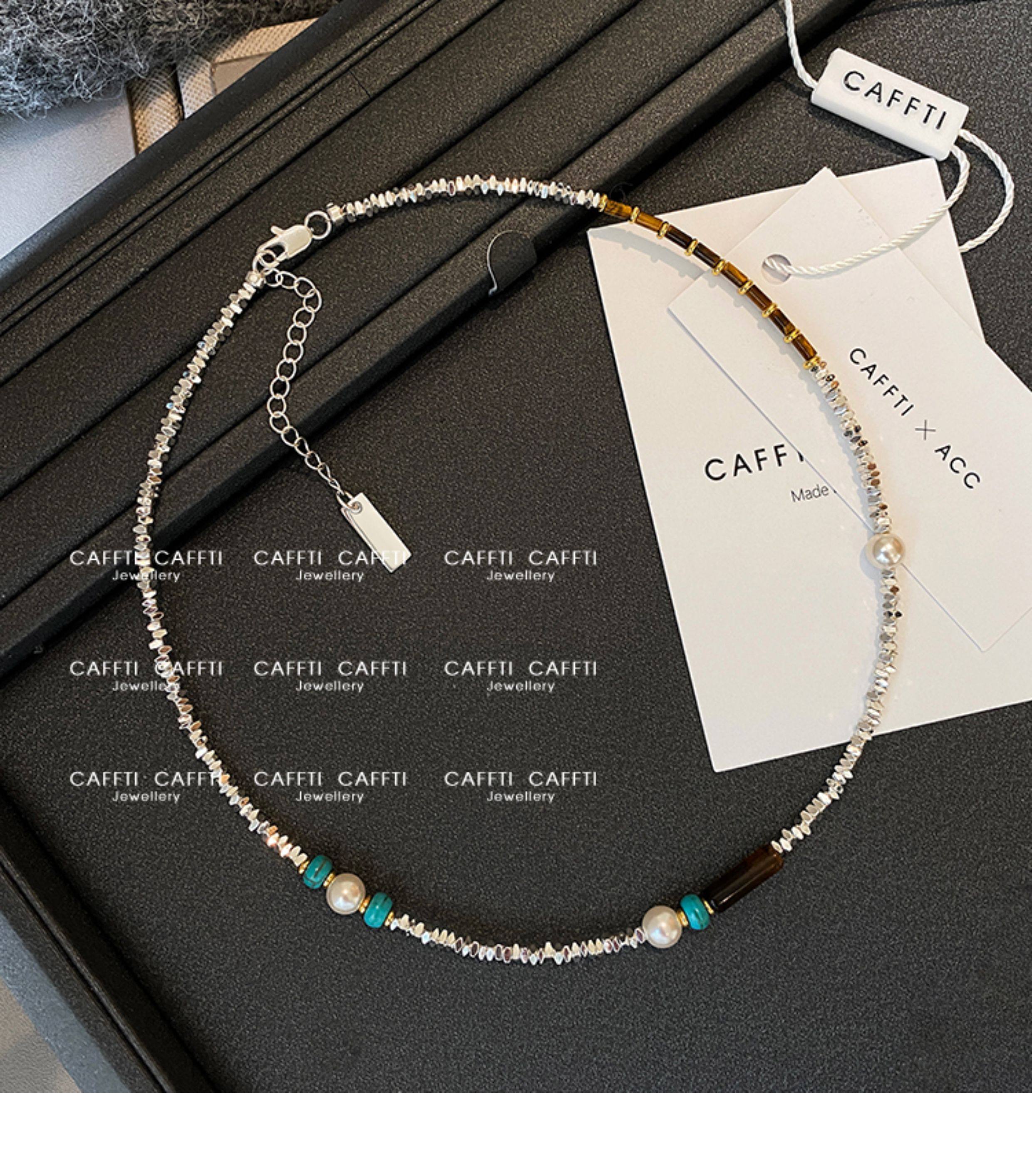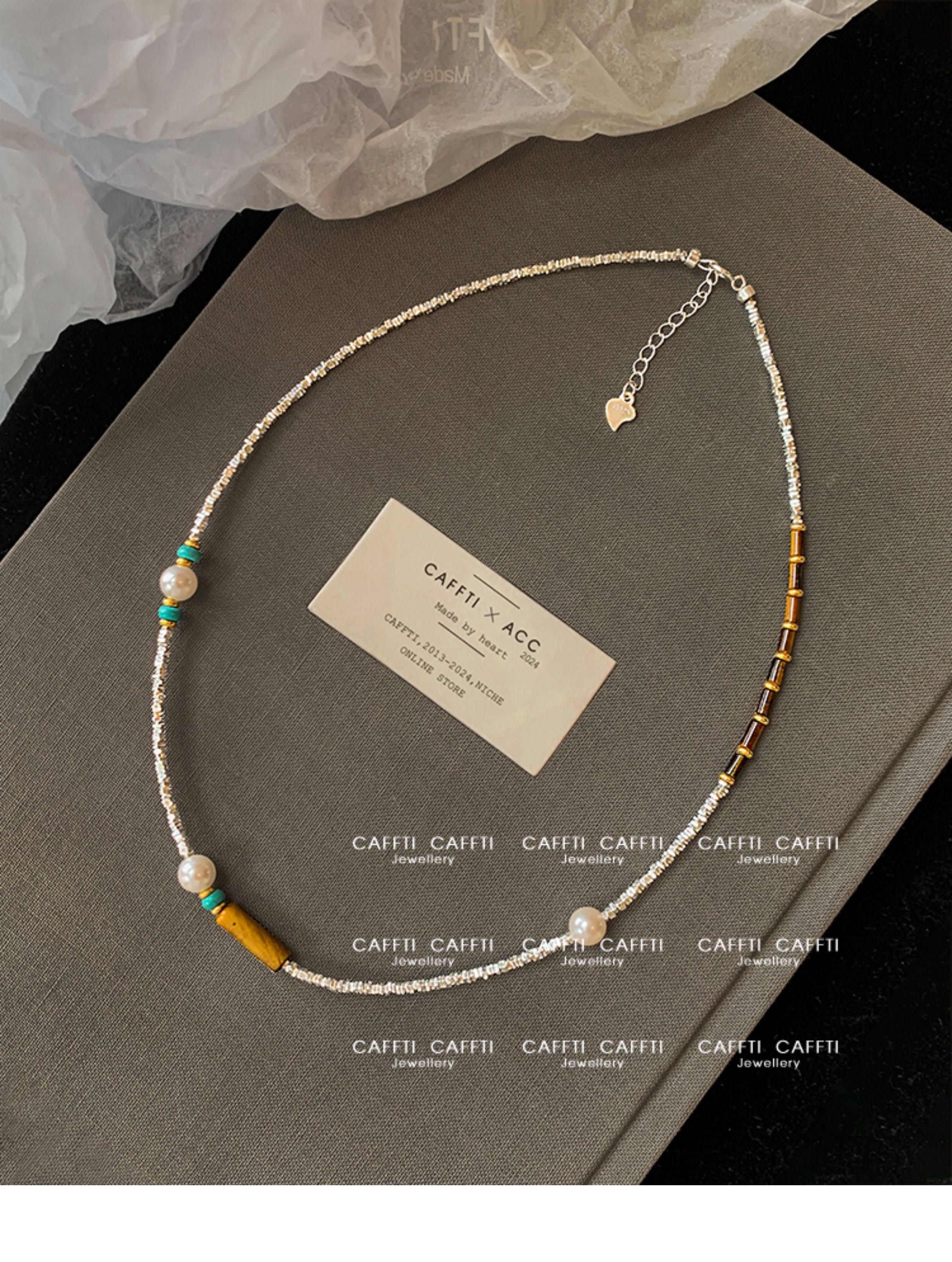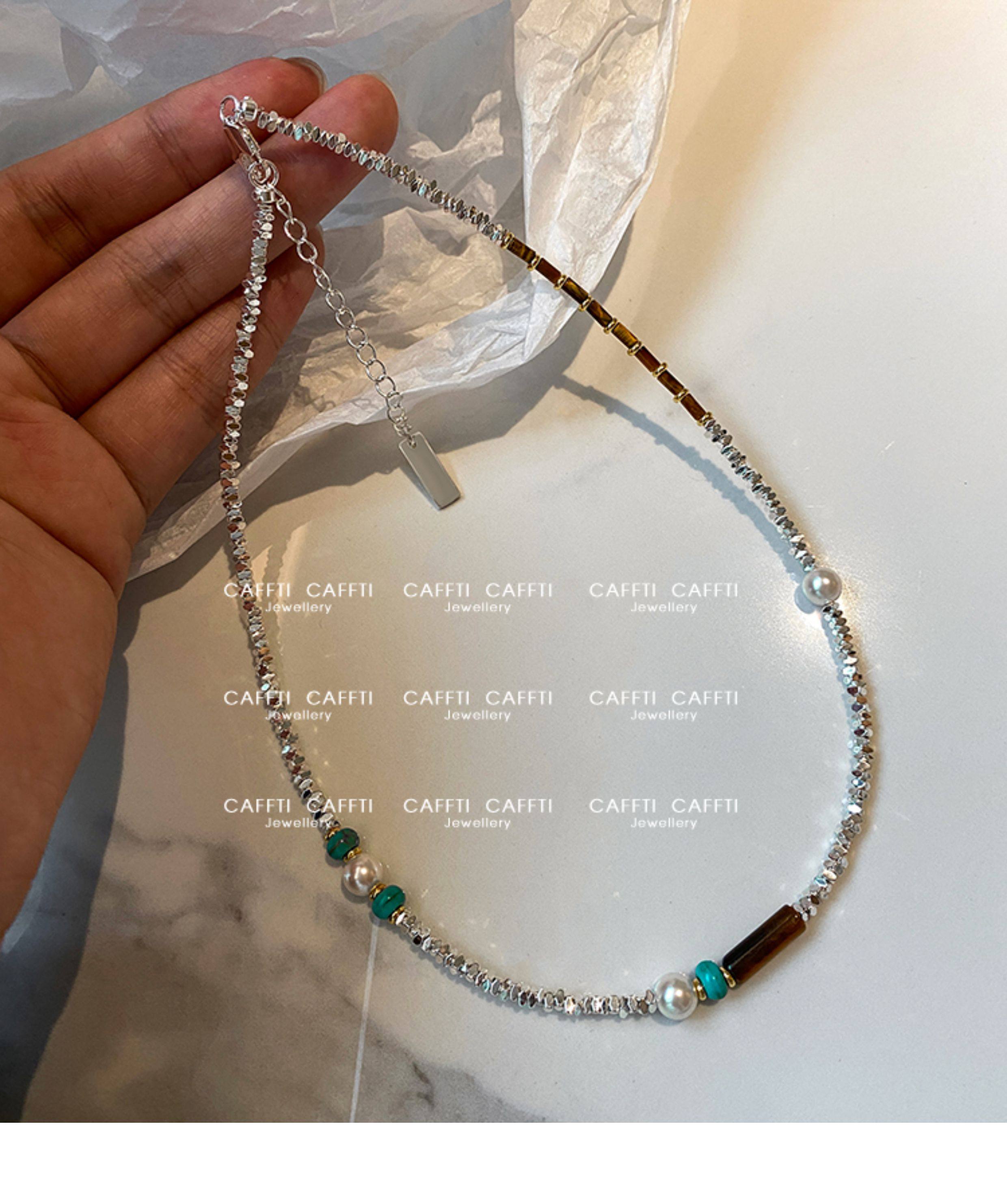 碎银子天然石绿松石色串珠珍珠项链女高级感轻奢小众独特锁骨颈链