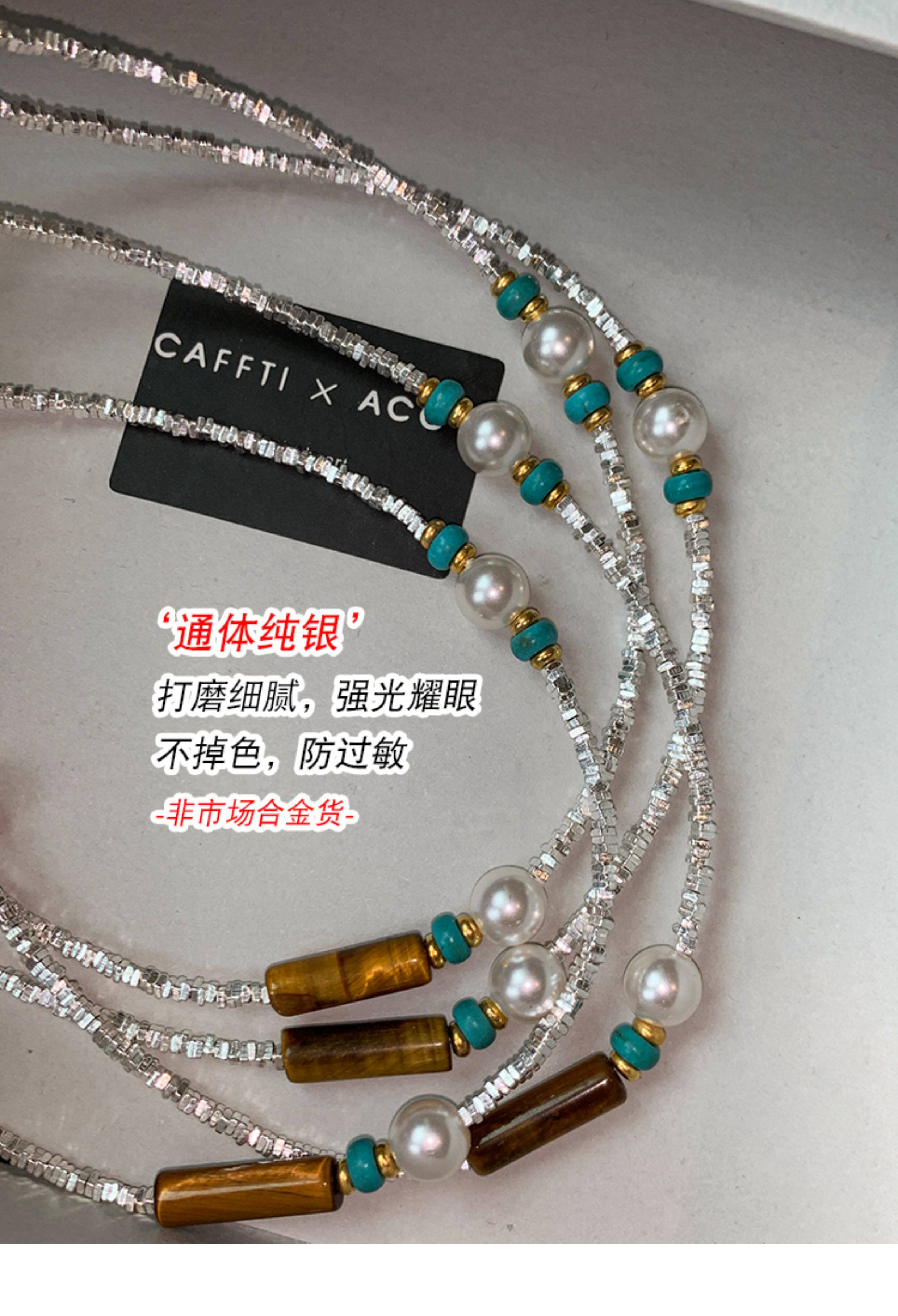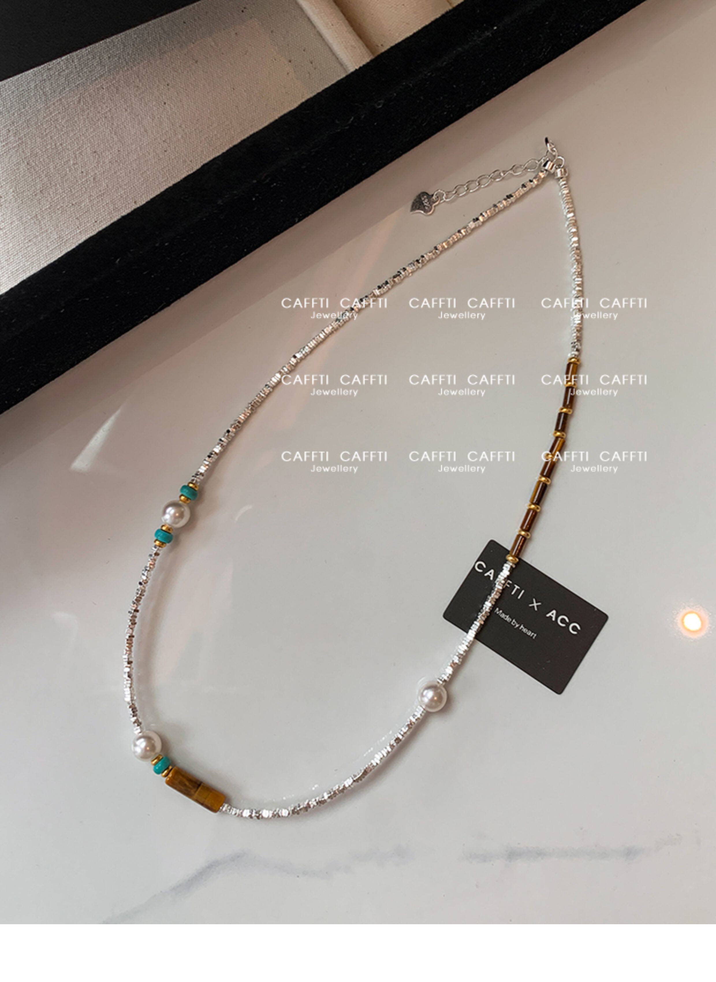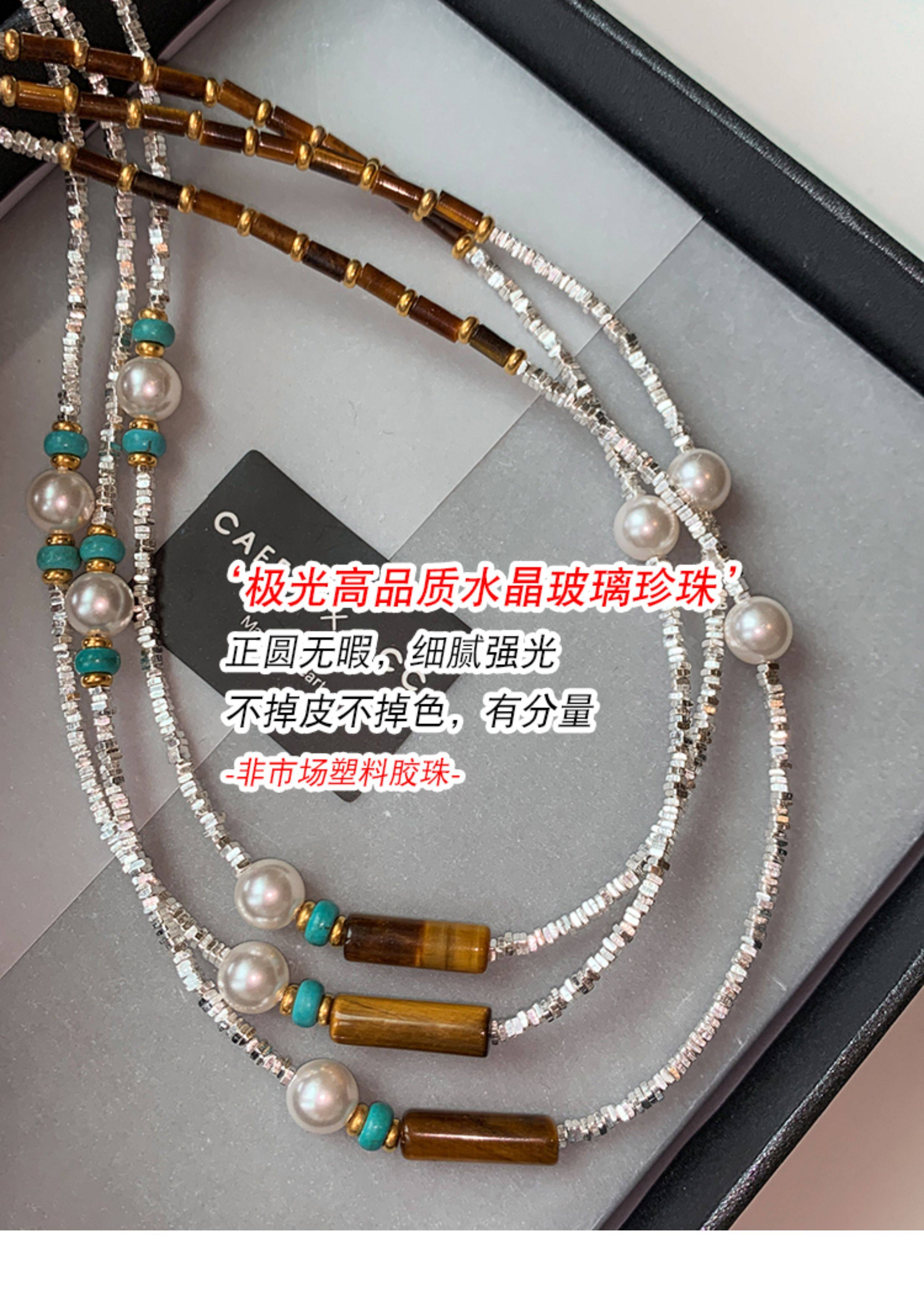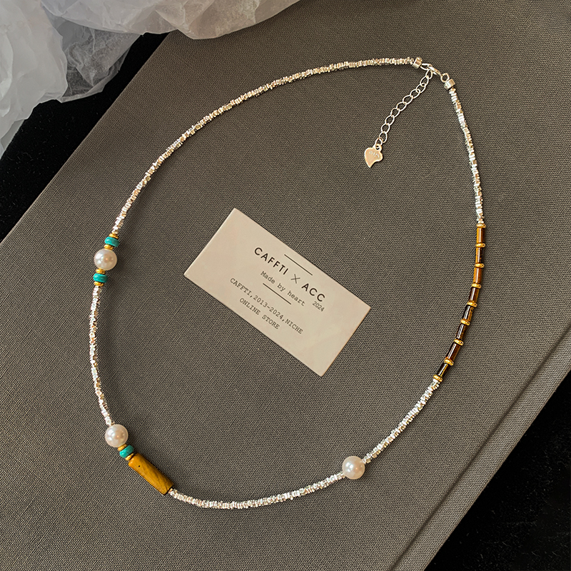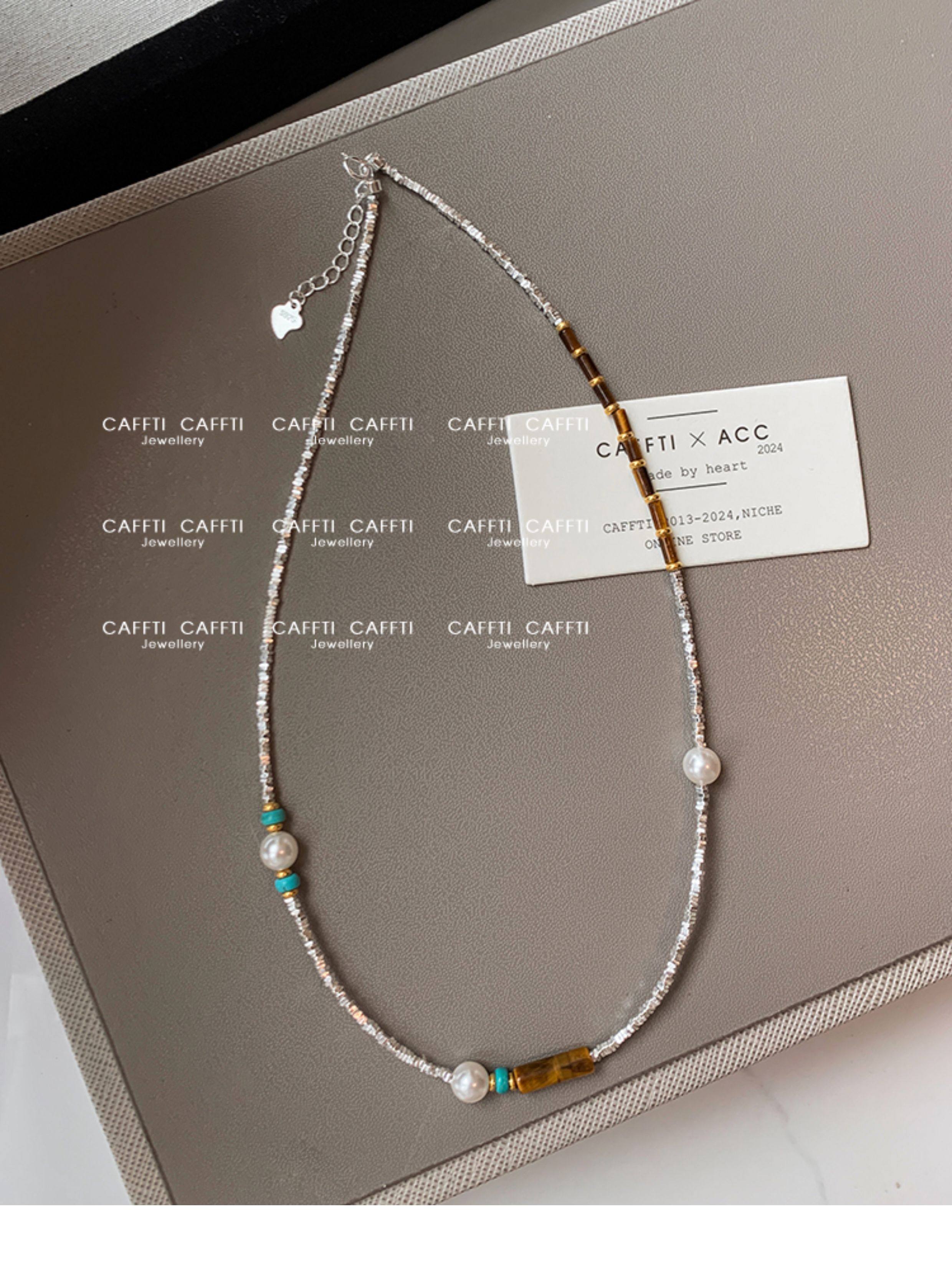 碎银子天然石绿松石色串珠珍珠项链女高级感轻奢小众独特锁骨颈链