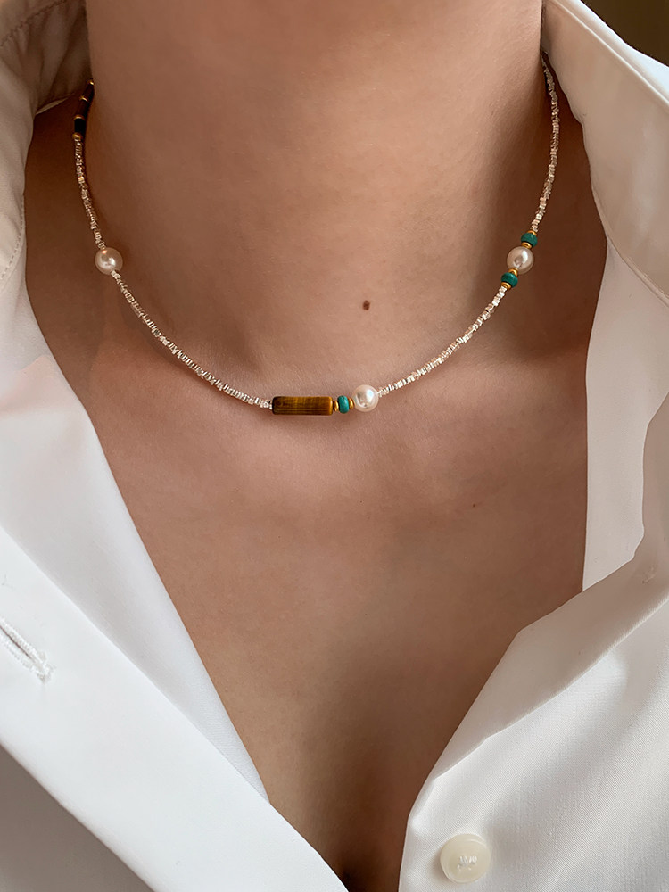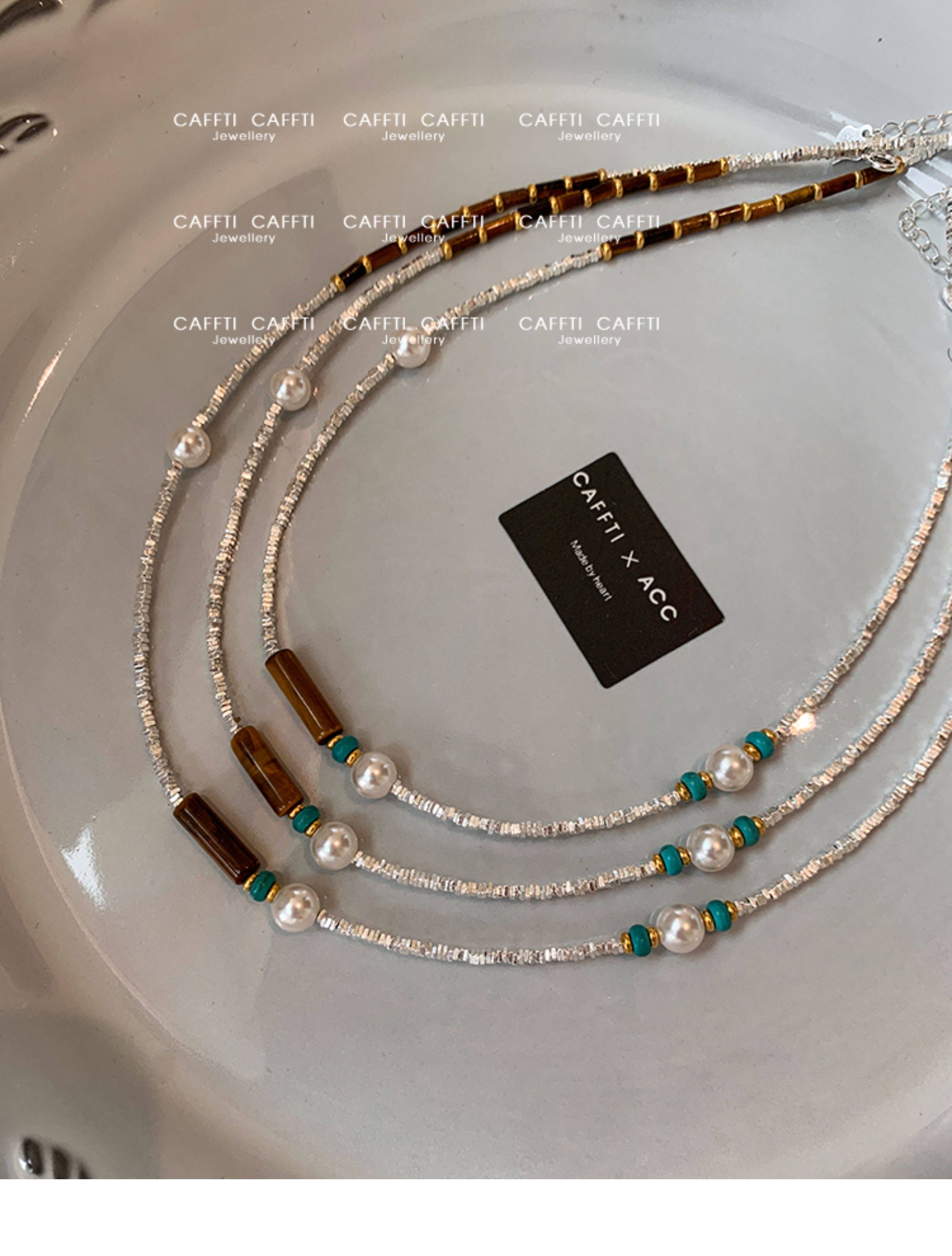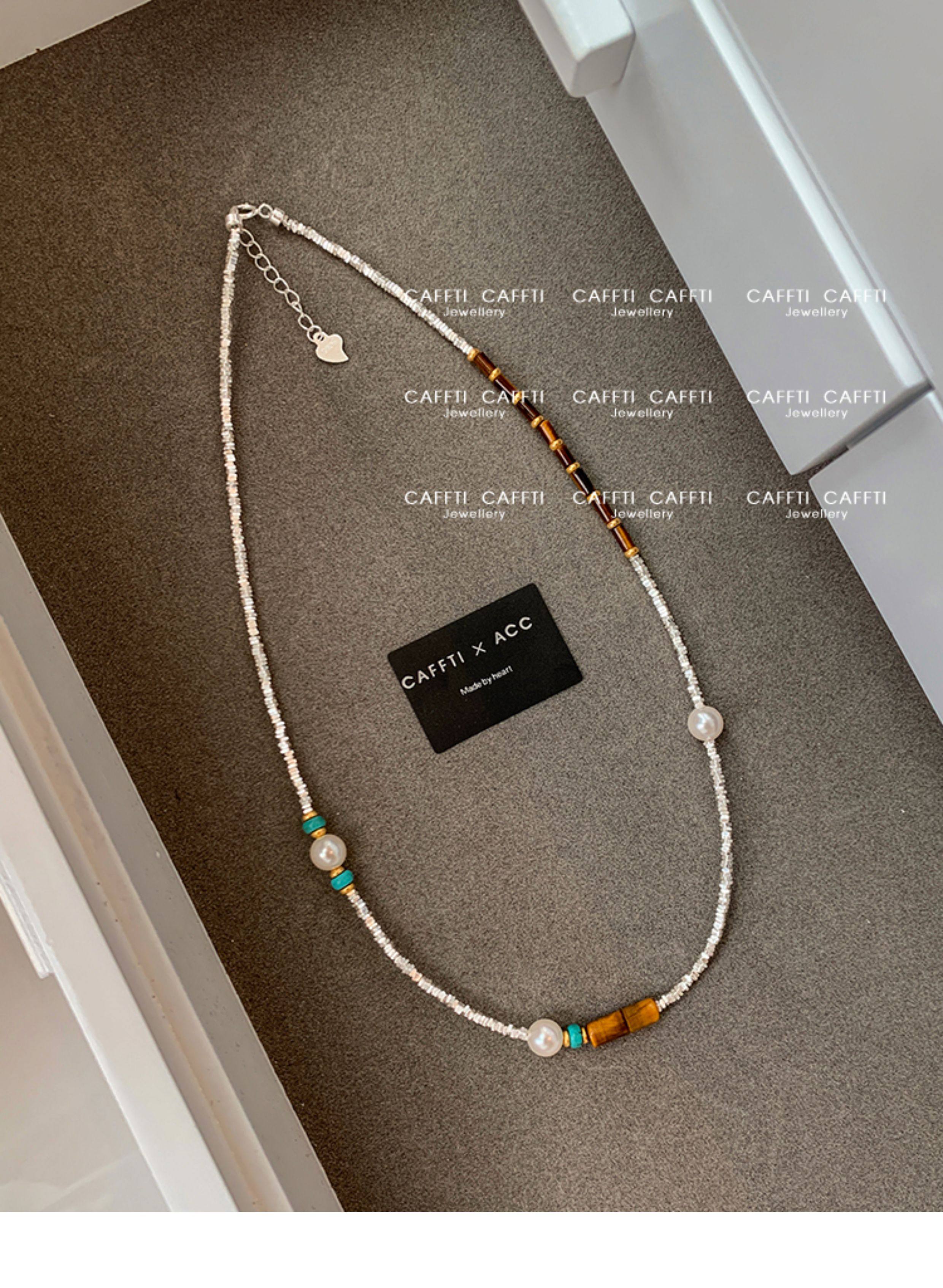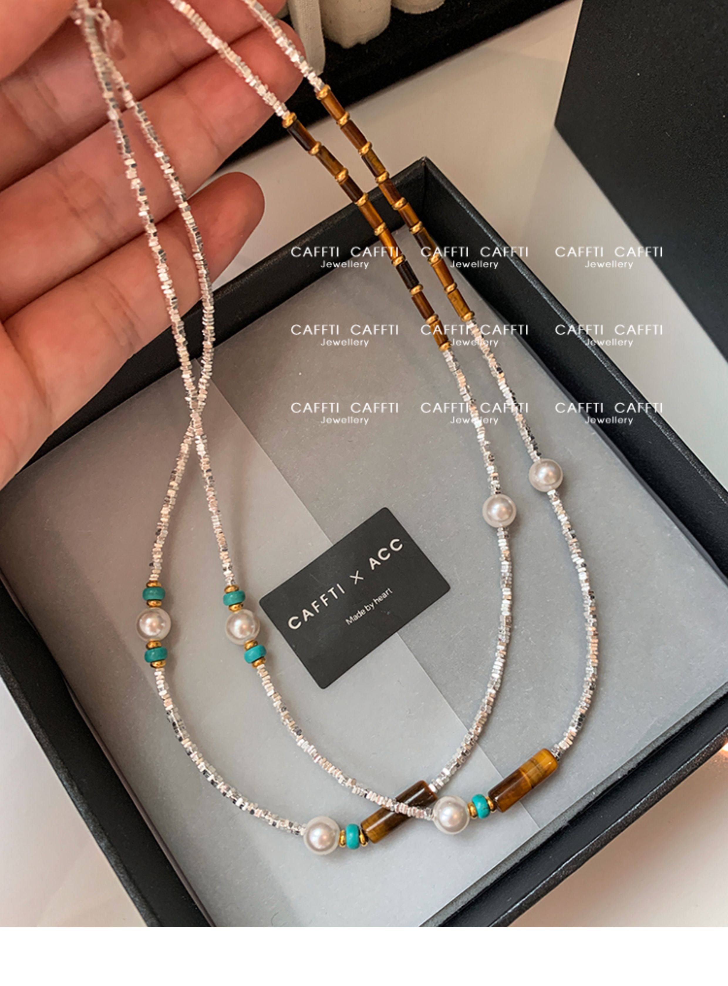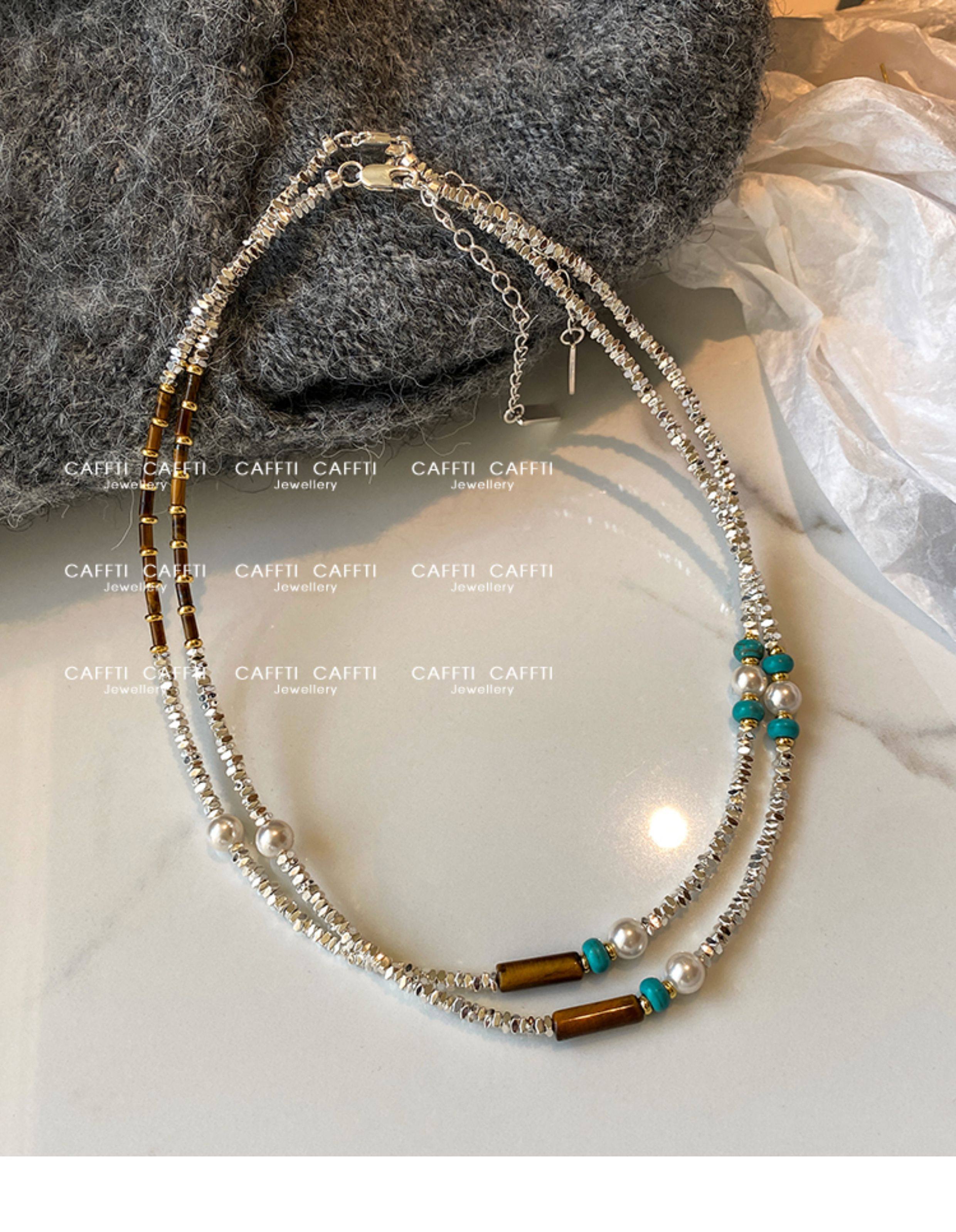 碎银子天然石绿松石色串珠珍珠项链女高级感轻奢小众独特锁骨颈链