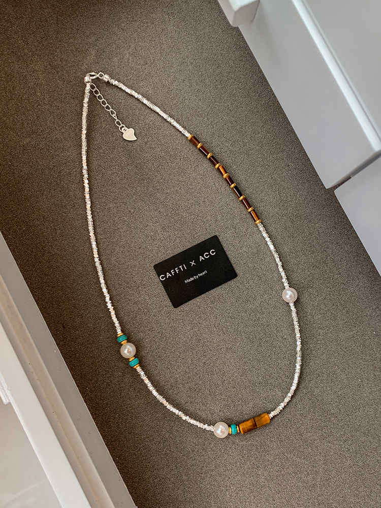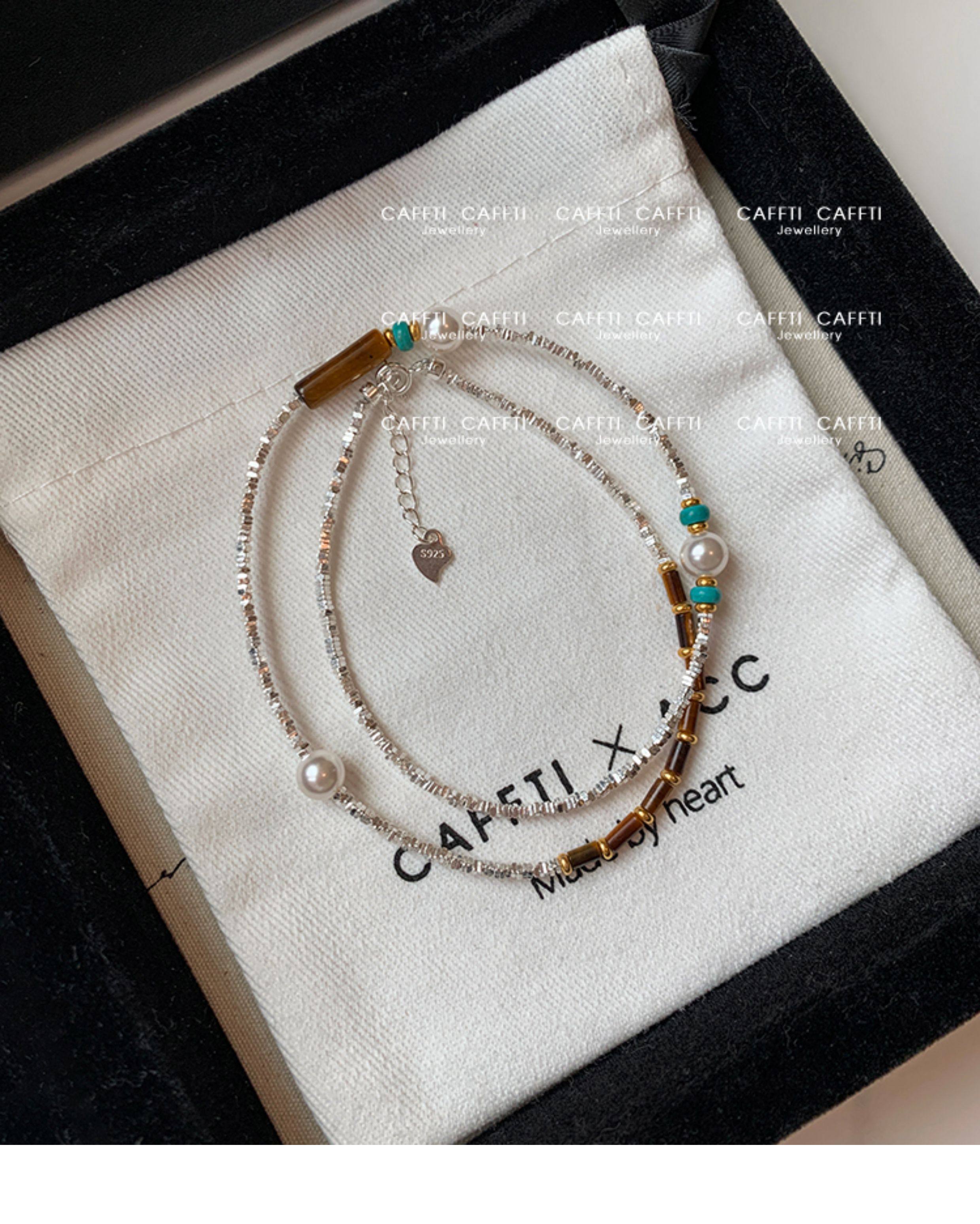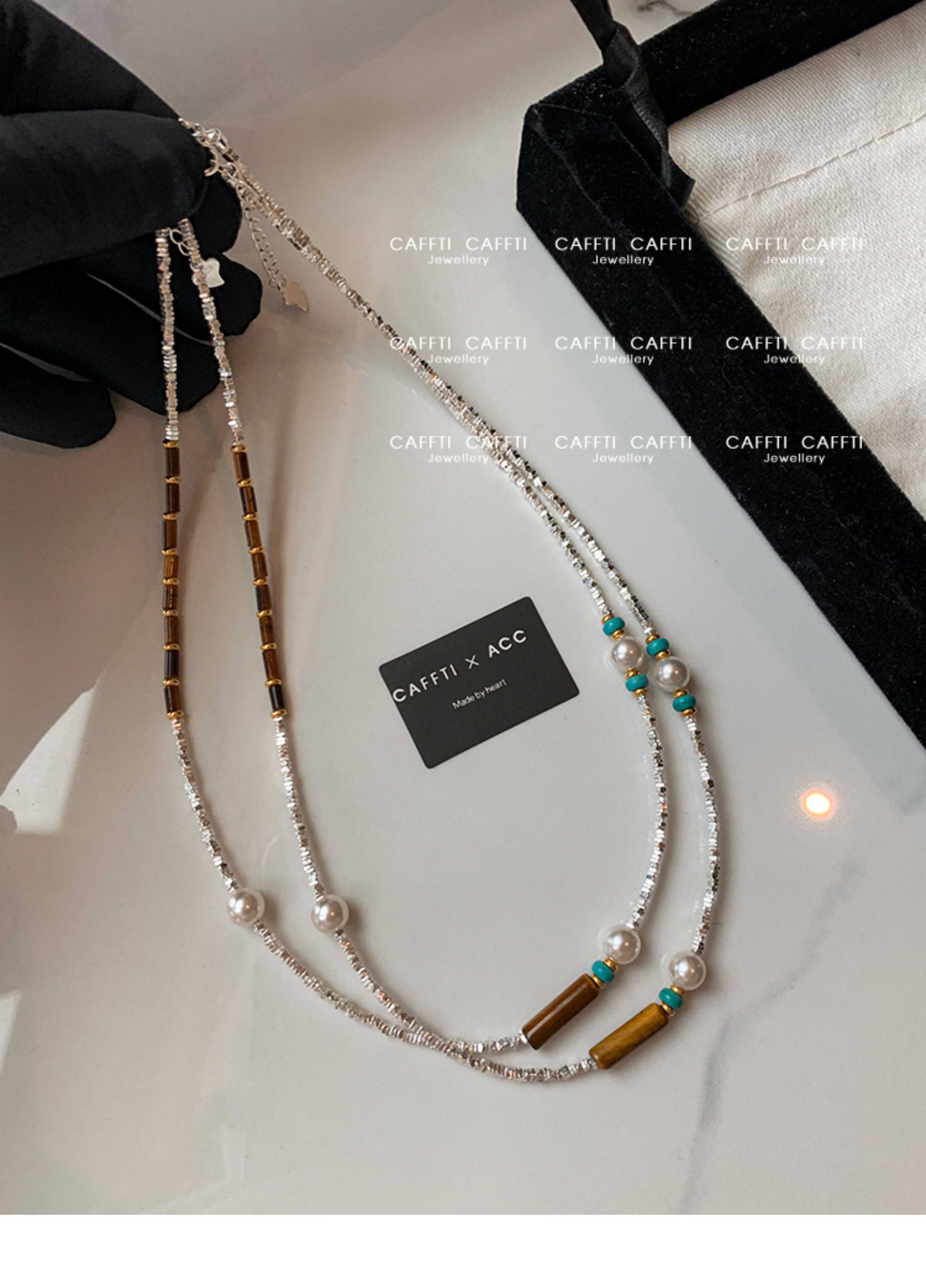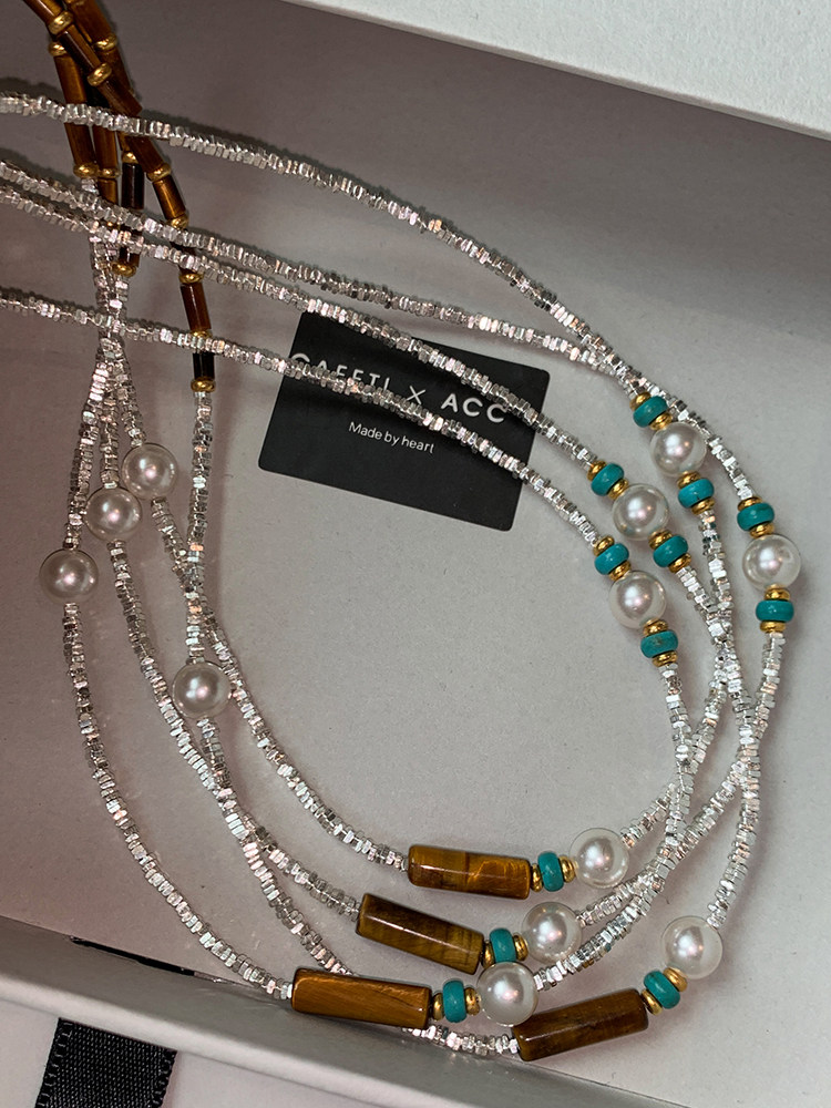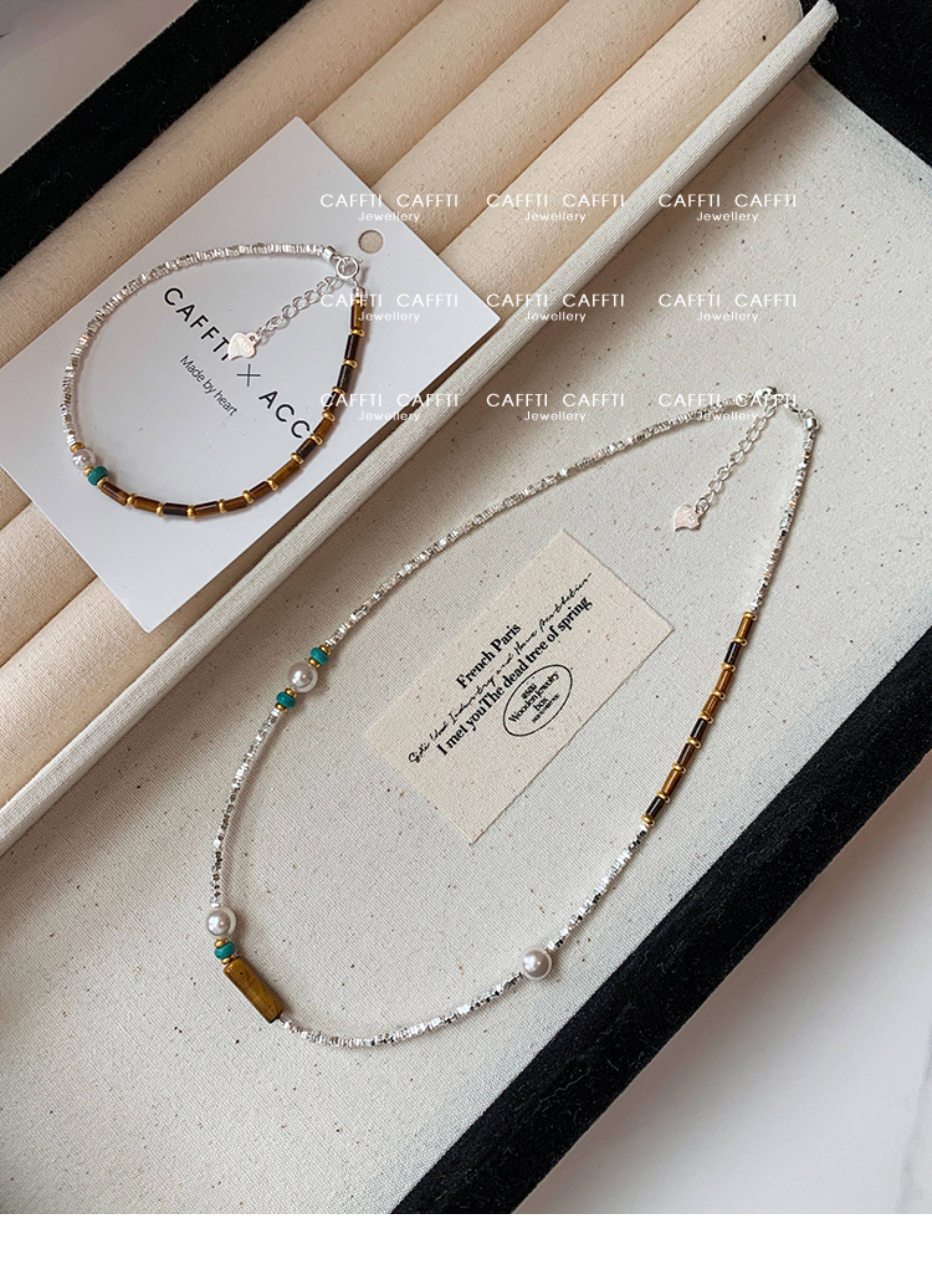 碎银子天然石绿松石色串珠珍珠项链女高级感轻奢小众独特锁骨颈链