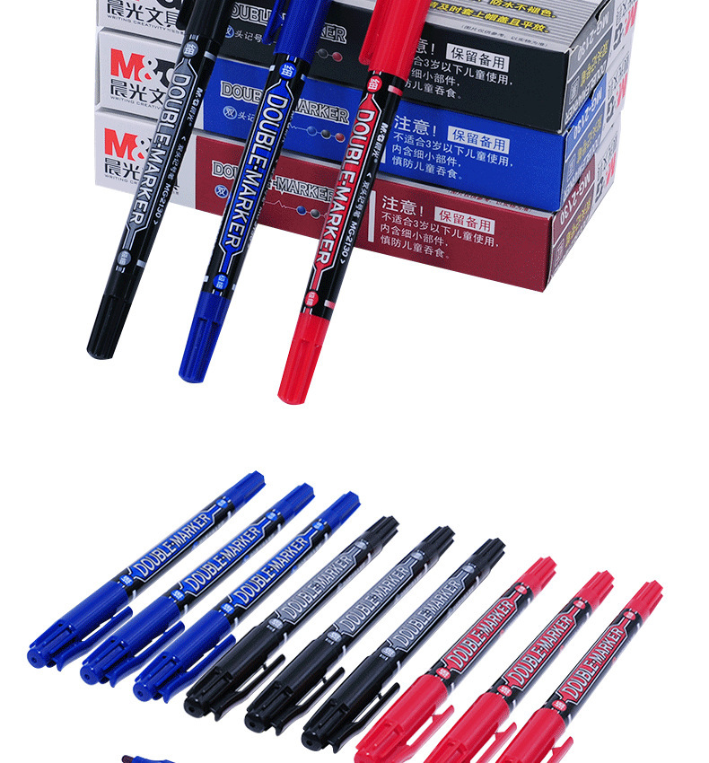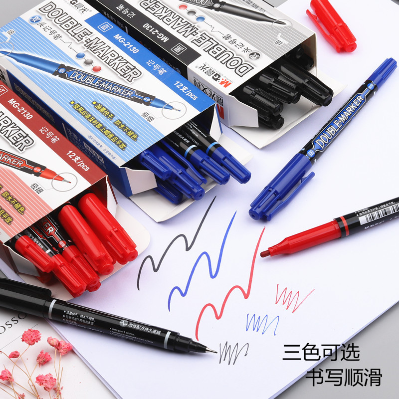 晨光2130小双头记号笔黑油性快干儿童绘画勾线笔学生用美术描边笔