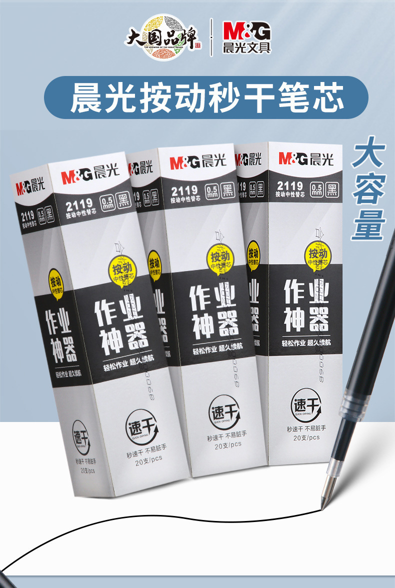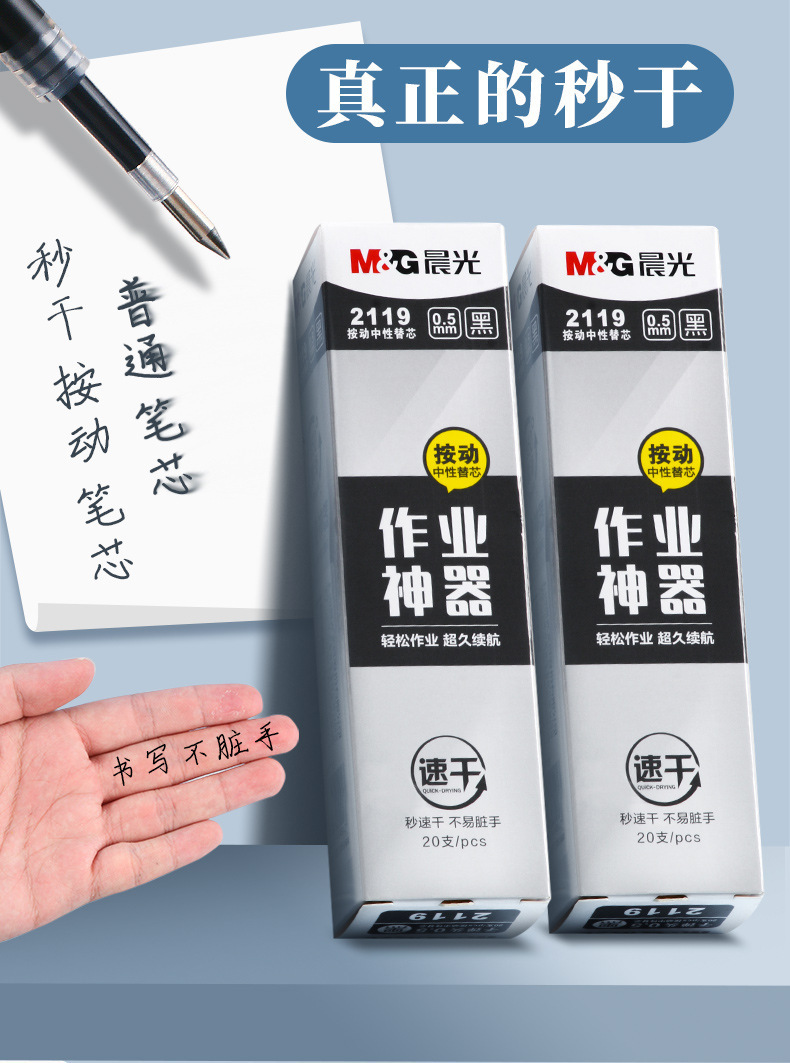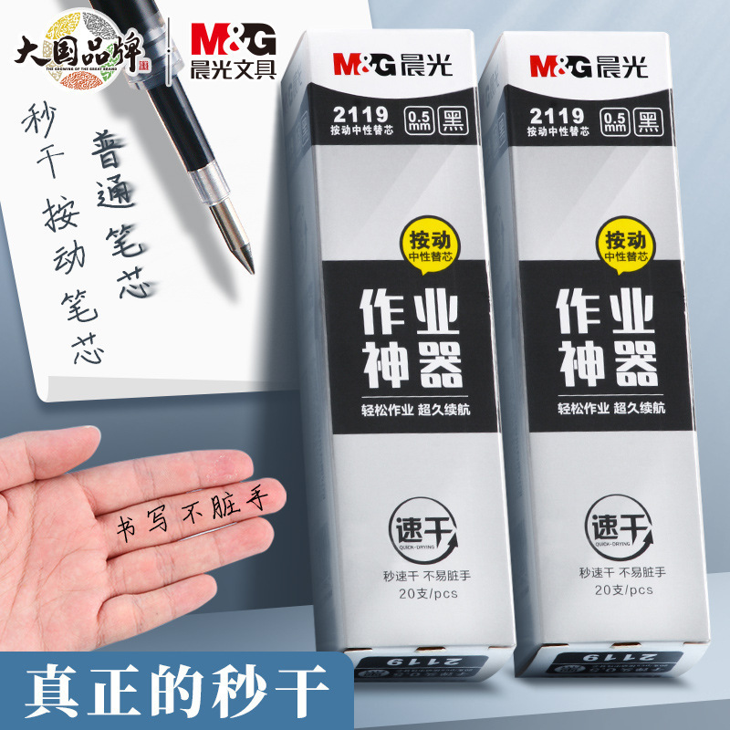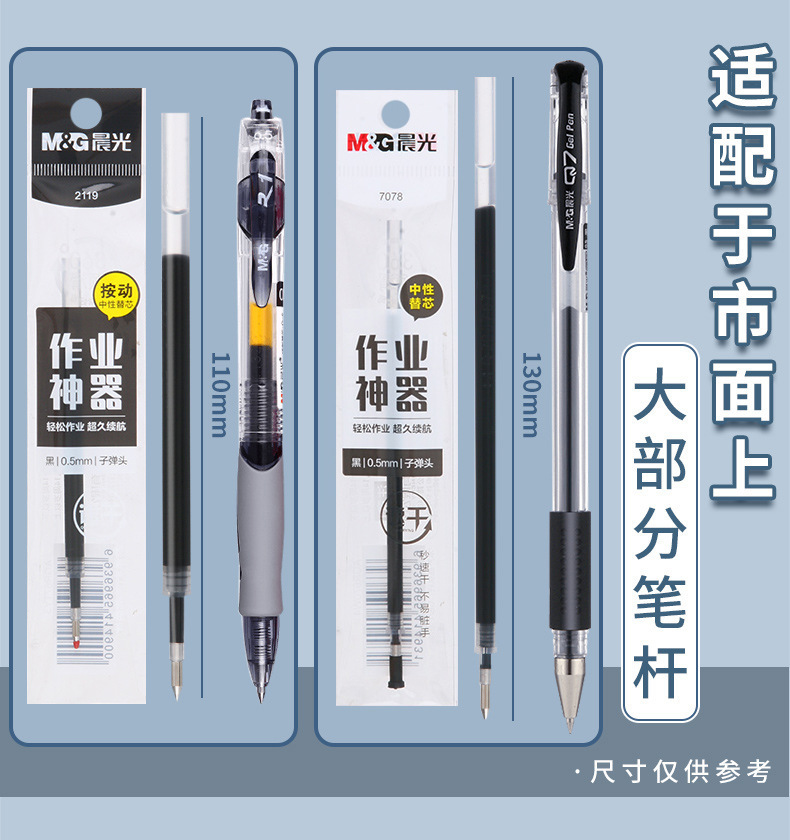 作业神器速干通用替芯黑色子弹头按动笔芯2119拨盖替换芯7078