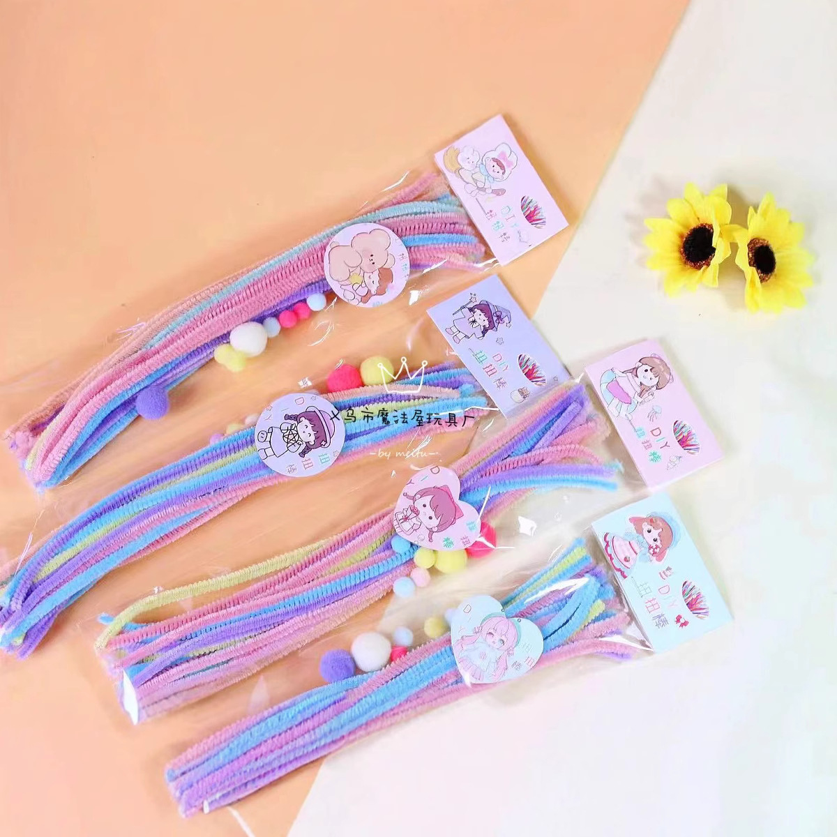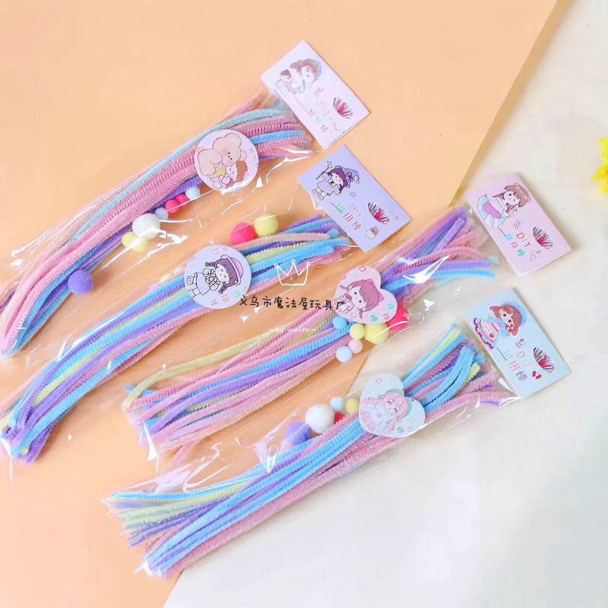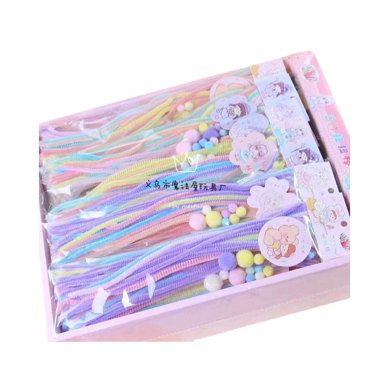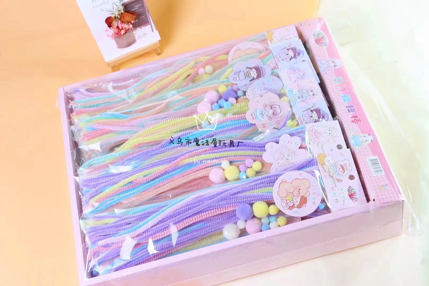 扭扭棒马卡龙色diy盒装材料包仿真毛绒毛条折叠棒批发材料花束