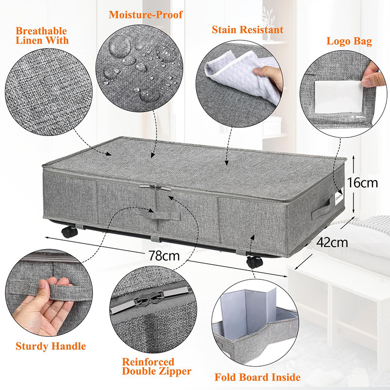 亚马逊带滑轮床下收纳箱衣服毛毯可折叠整理储物箱带盖床底收纳箱