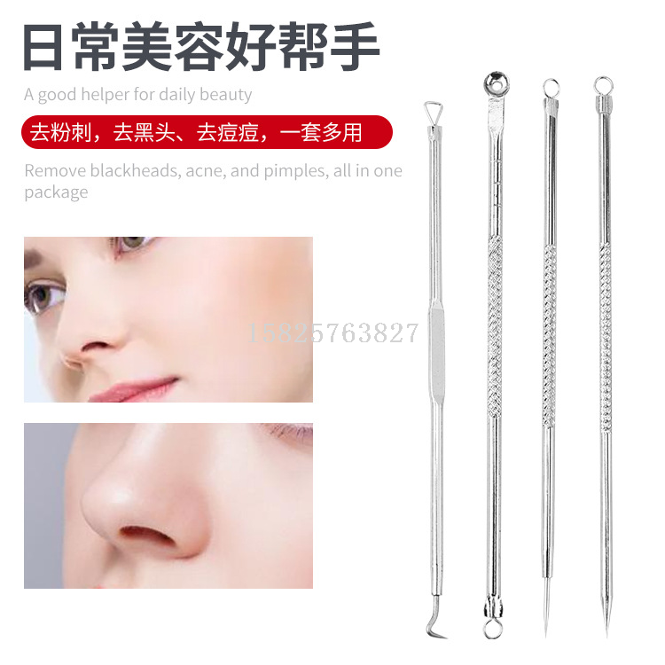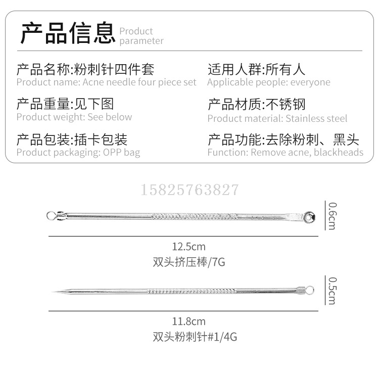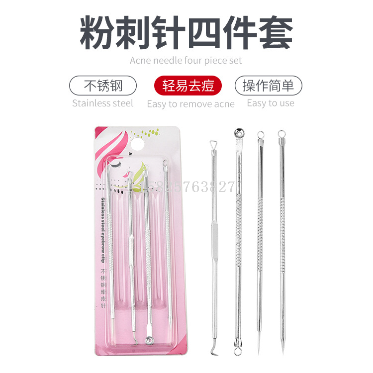 厂家批发不锈钢粉刺针套装家用痘痘针双头暗疮针去黑头美容工具