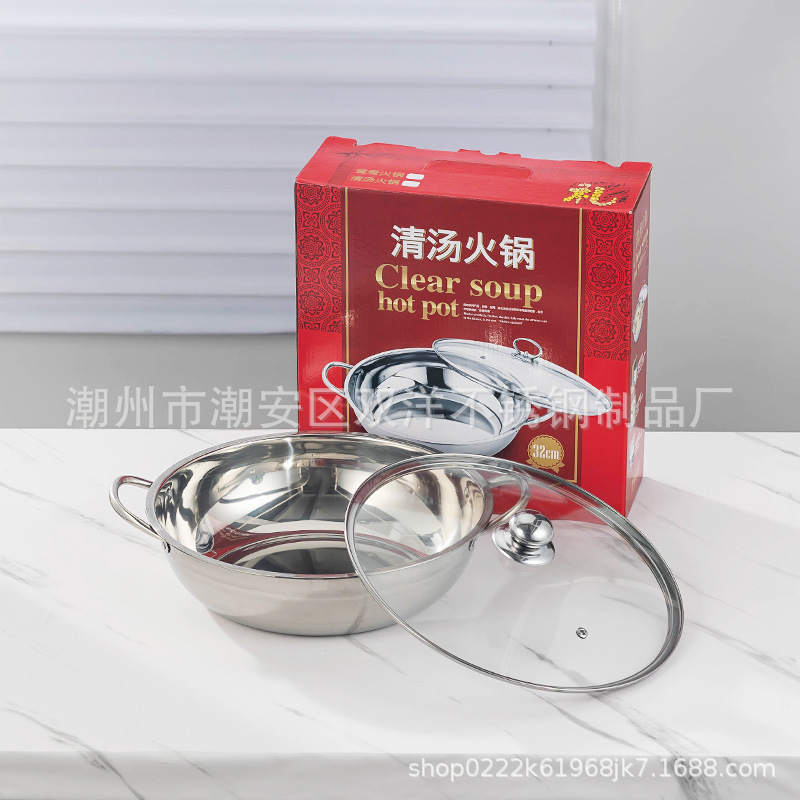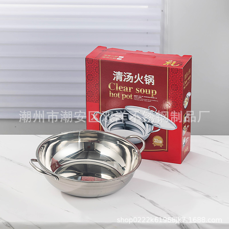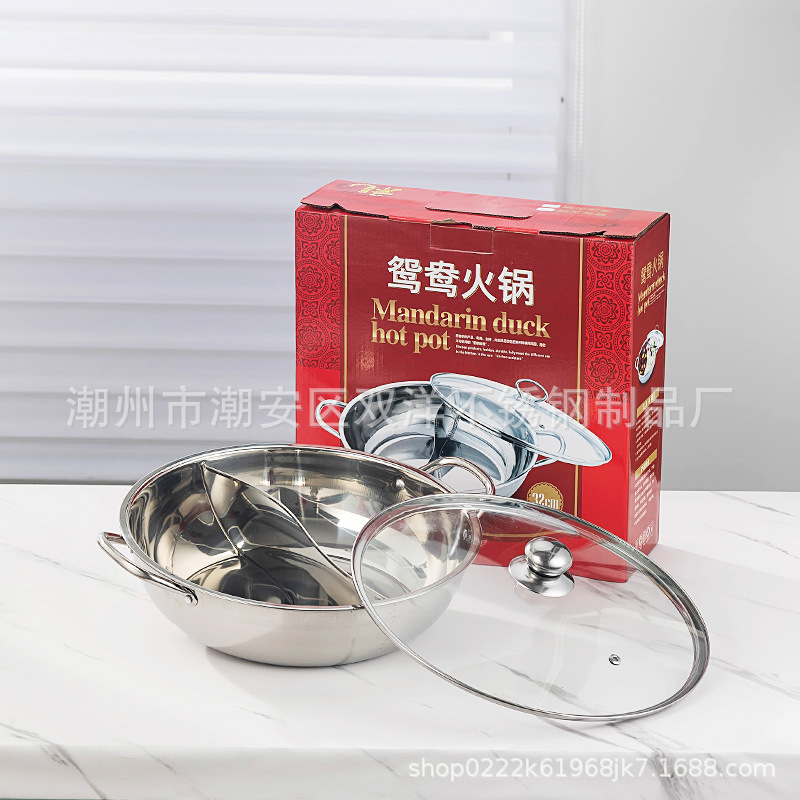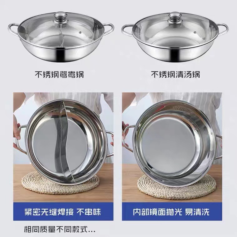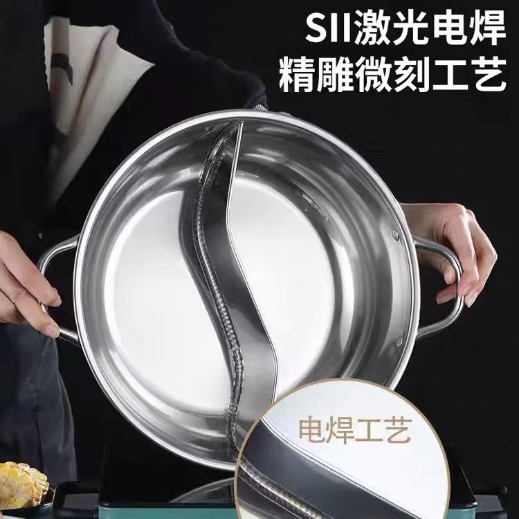 加厚不锈钢火锅鸳鸯锅家用二味隔锅电磁炉专用锅汤锅商超礼品锅具
