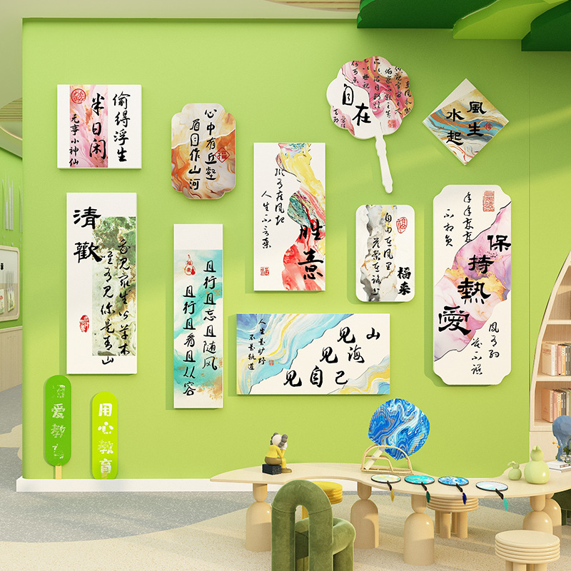 幼儿园环创主题成品材料教室布置非遗漆扇文化墙面装饰中国传统风