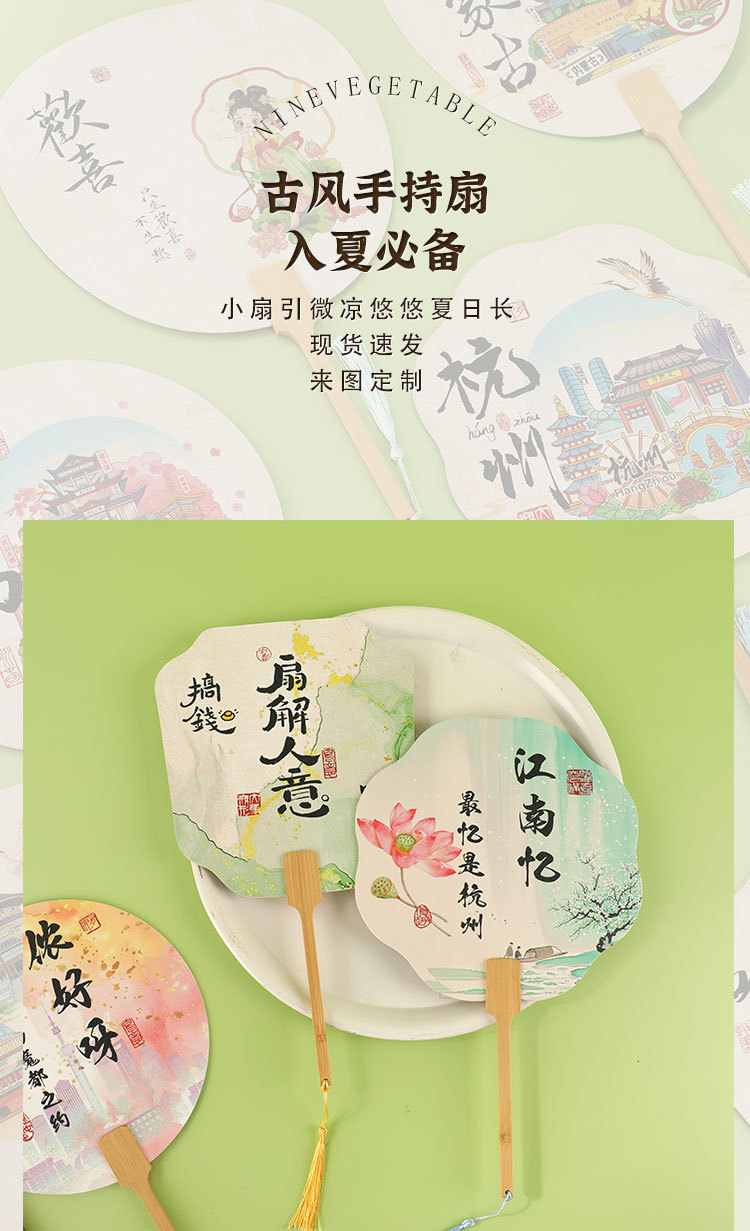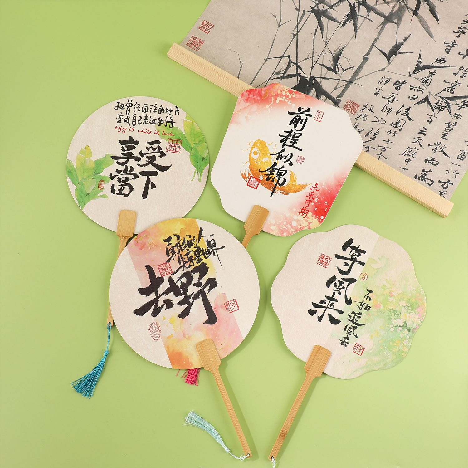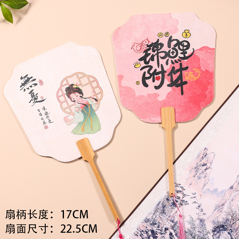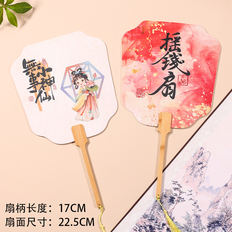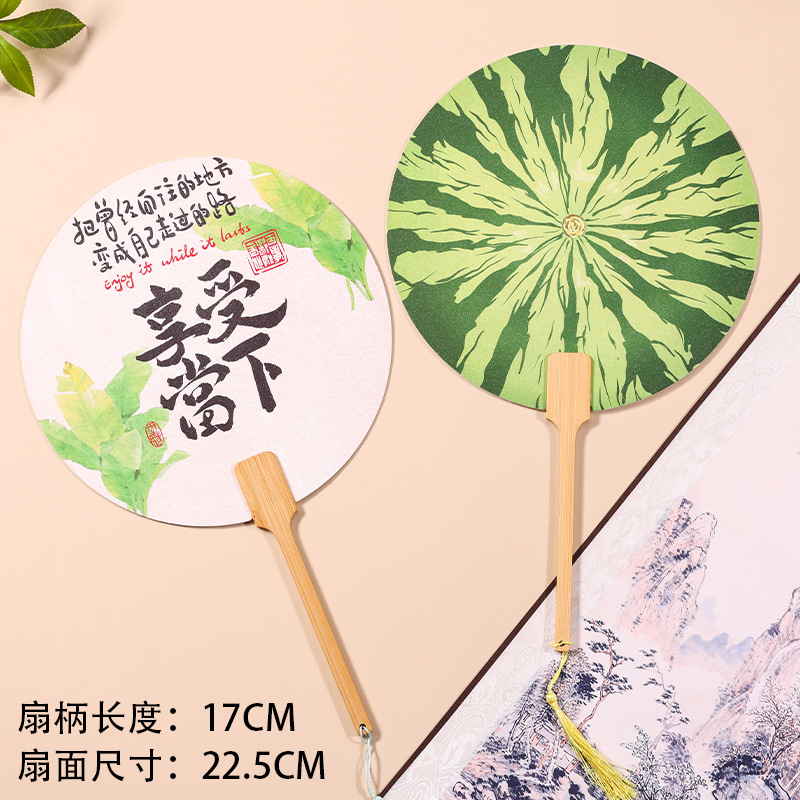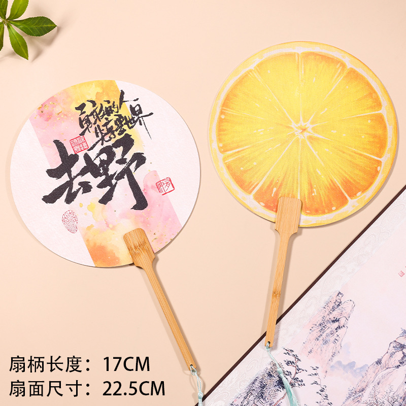 漆扇成品水果创意宣纸画户外拍照打卡手持漂漆扇子古风团扇