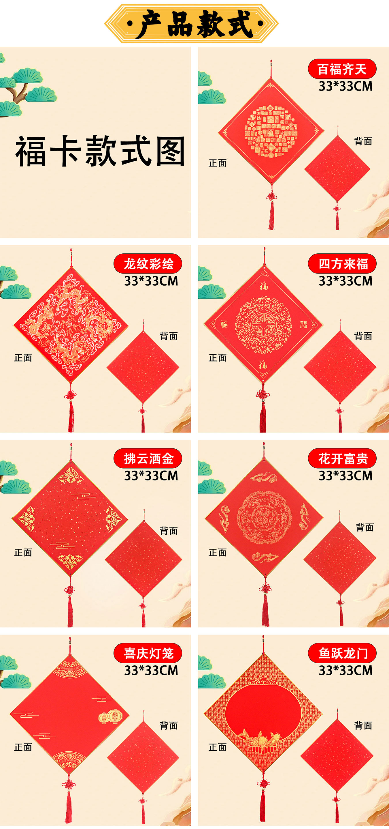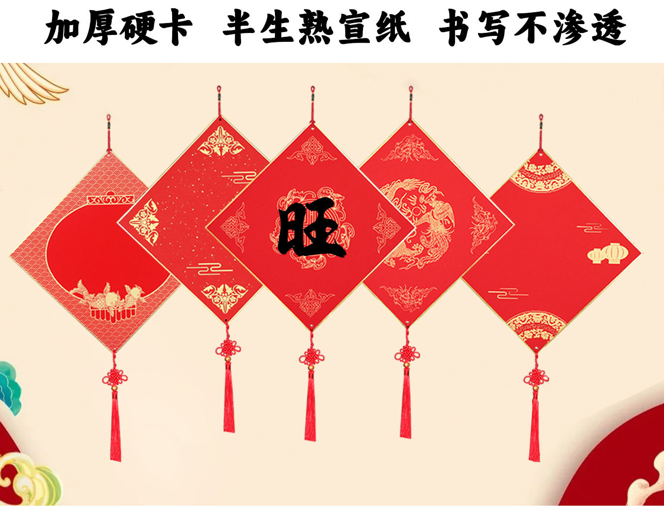万年红福卡双面空白加厚大红色卡纸新春手写斗方福字宣纸硬卡挂饰