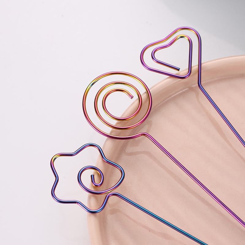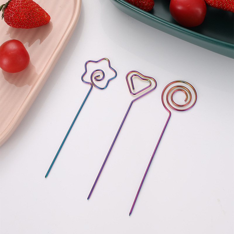 源头厂家304不锈钢彩色装饰签子创意ins风多形状高颜值叉子水果签