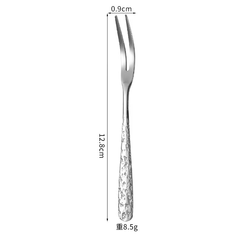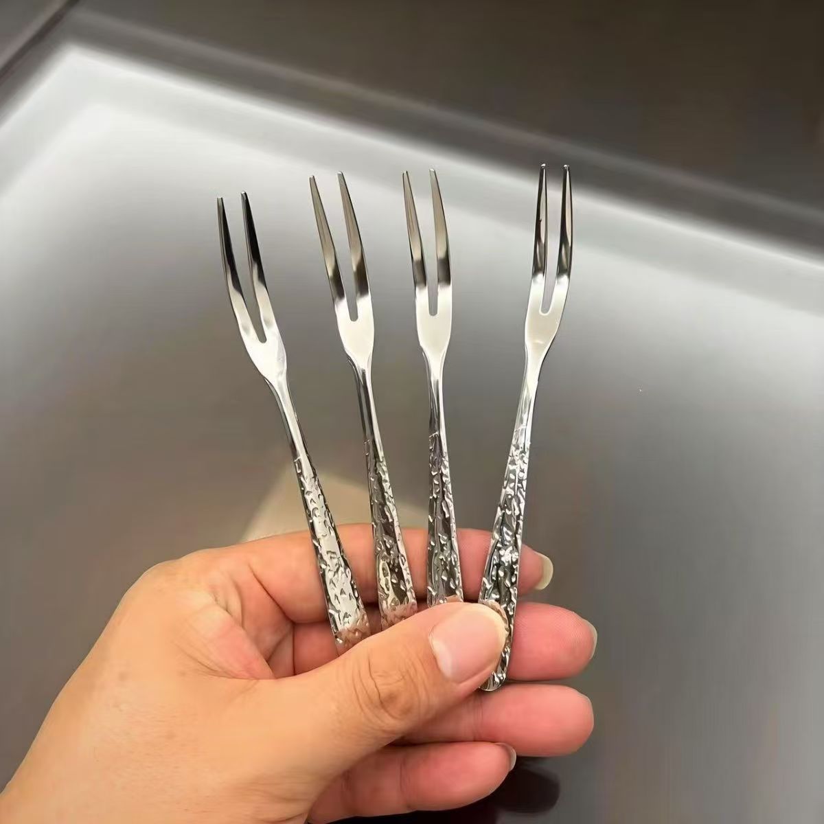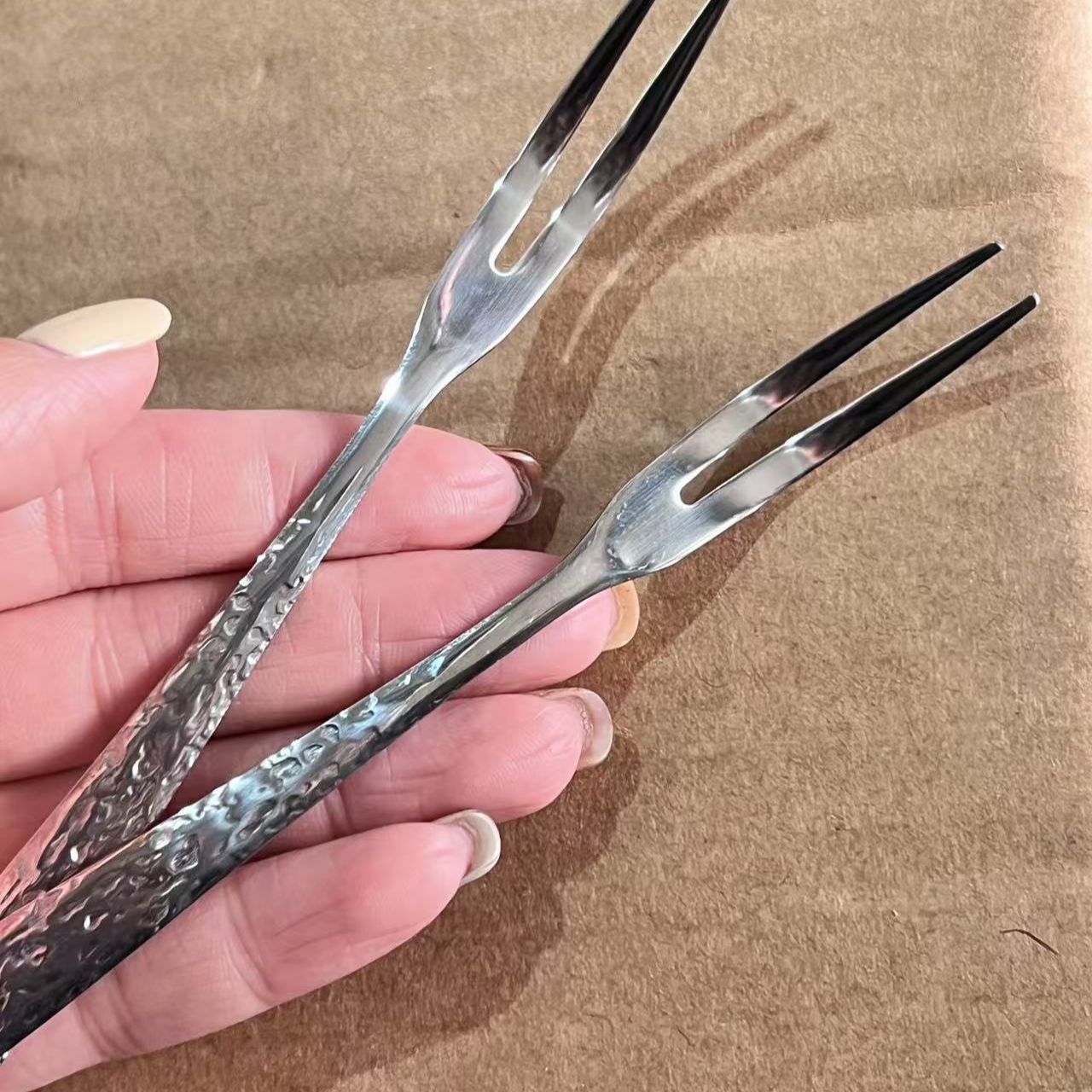 创意冰裂纹水果叉不锈钢锤纹水果叉月饼叉水果签二齿叉蛋糕甜品叉