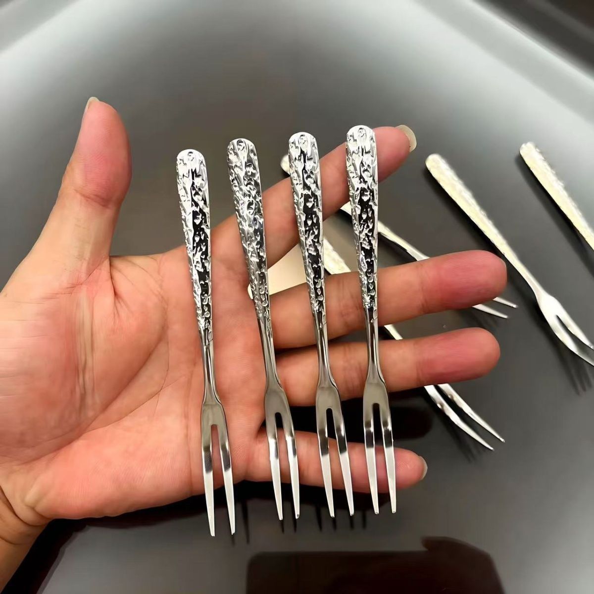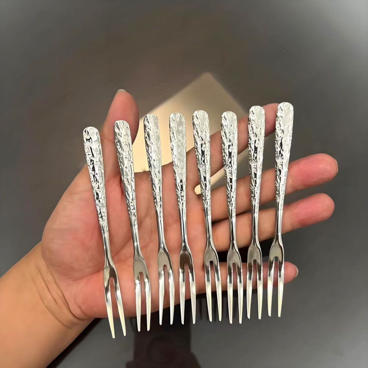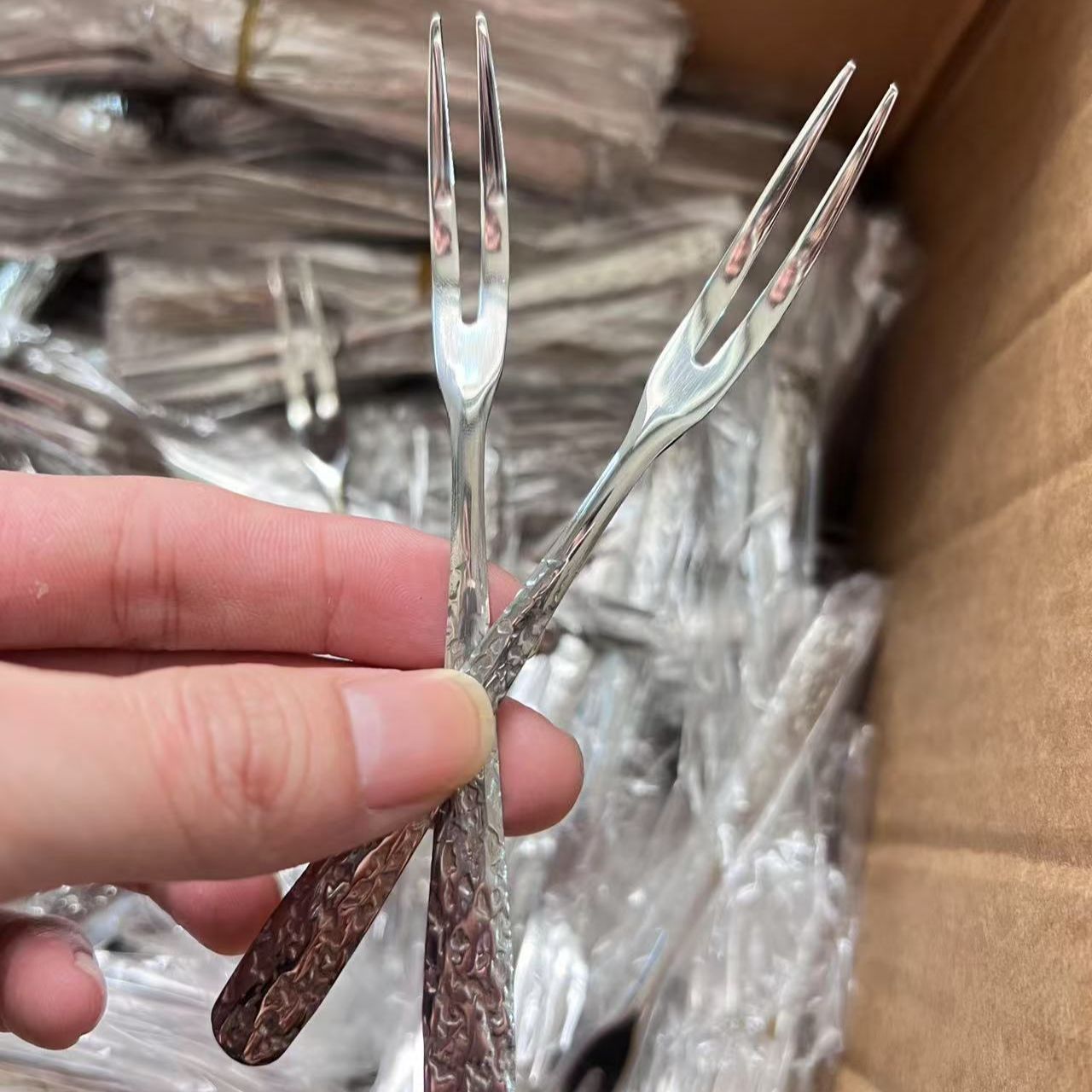创意冰裂纹水果叉不锈钢锤纹水果叉月饼叉水果签二齿叉蛋糕甜品叉