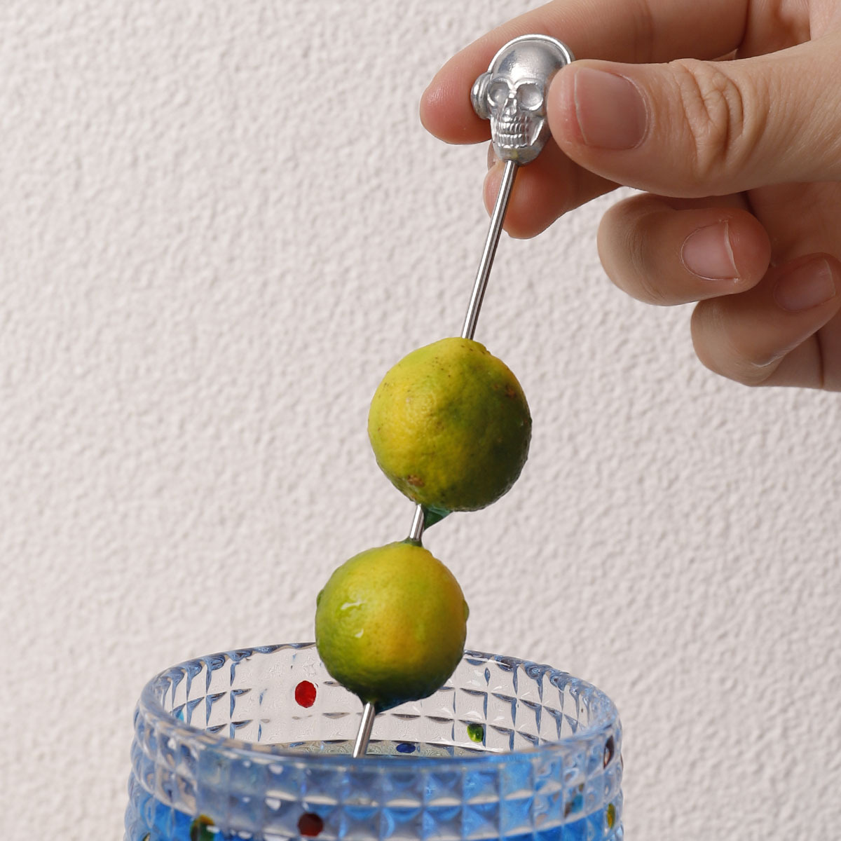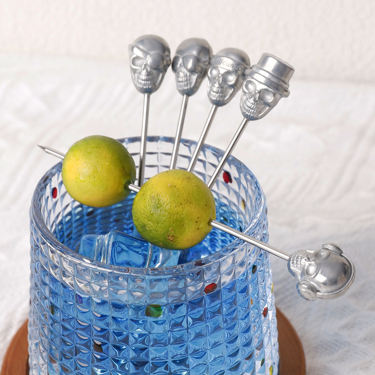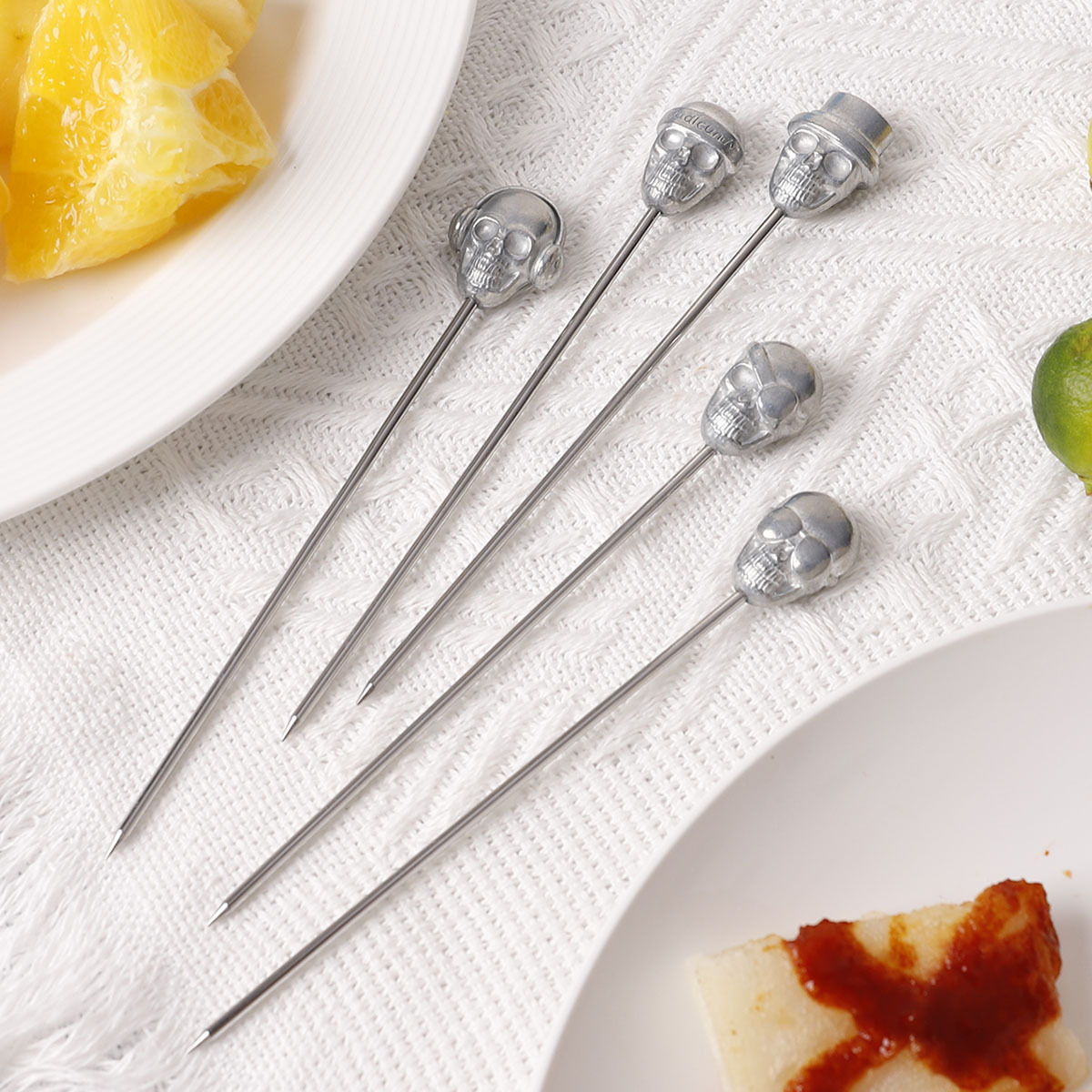 现货热销骷髅头不锈钢鸡尾酒签创意装饰菠萝头水果叉糕点点心签子