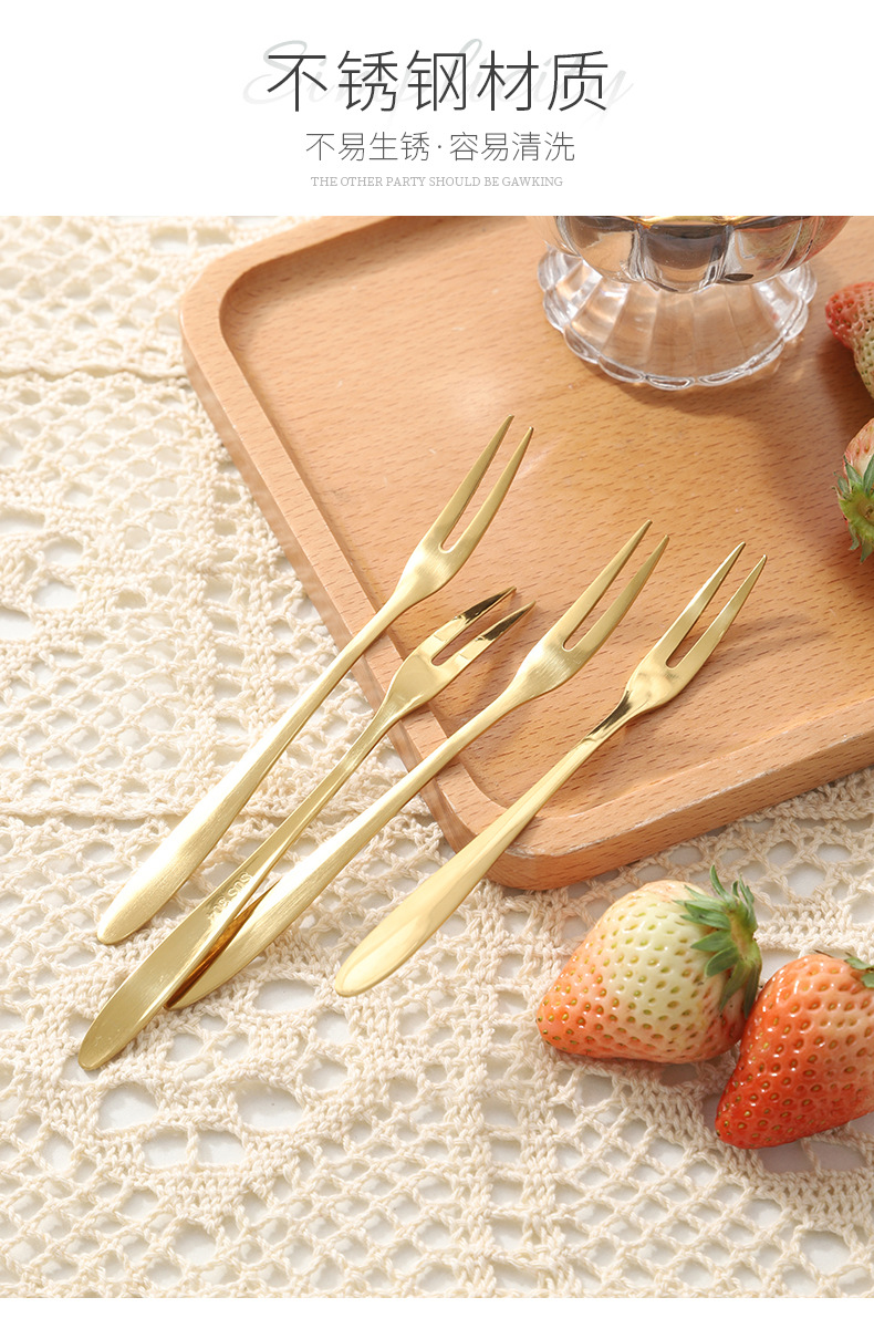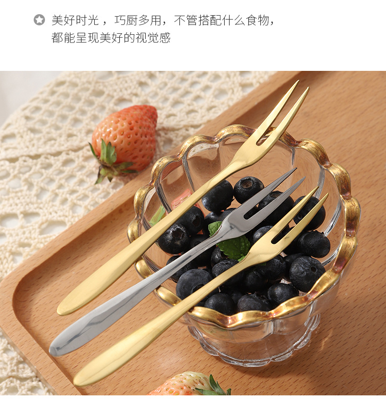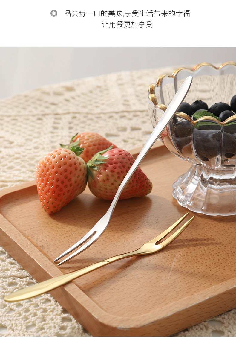 304不锈钢水果叉甜品蛋糕小签子迷你家用高颜值ins风小叉子水果签