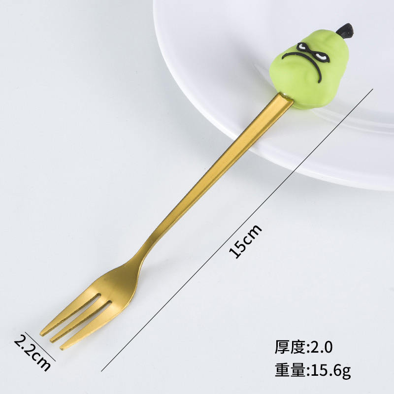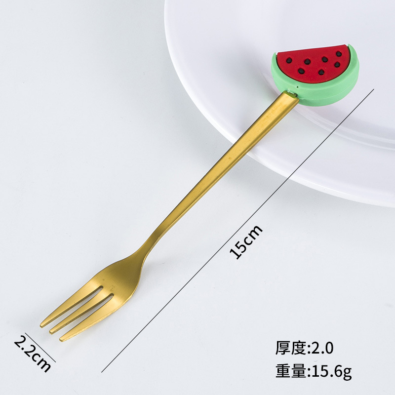 不锈钢勺子叉子餐具套装卡通水果勺叉套装咖啡搅拌勺甜品勺蛋糕叉