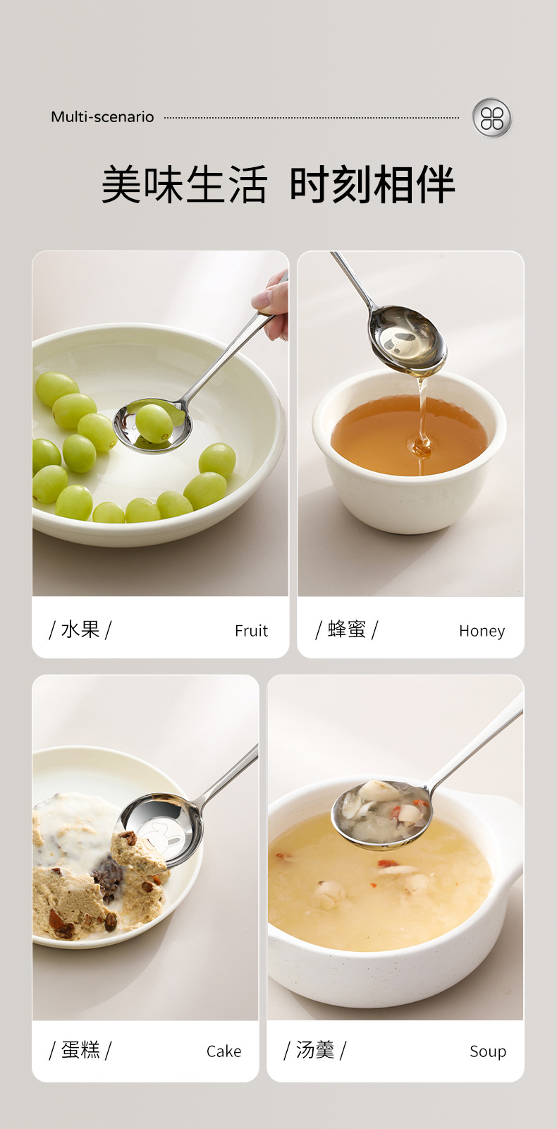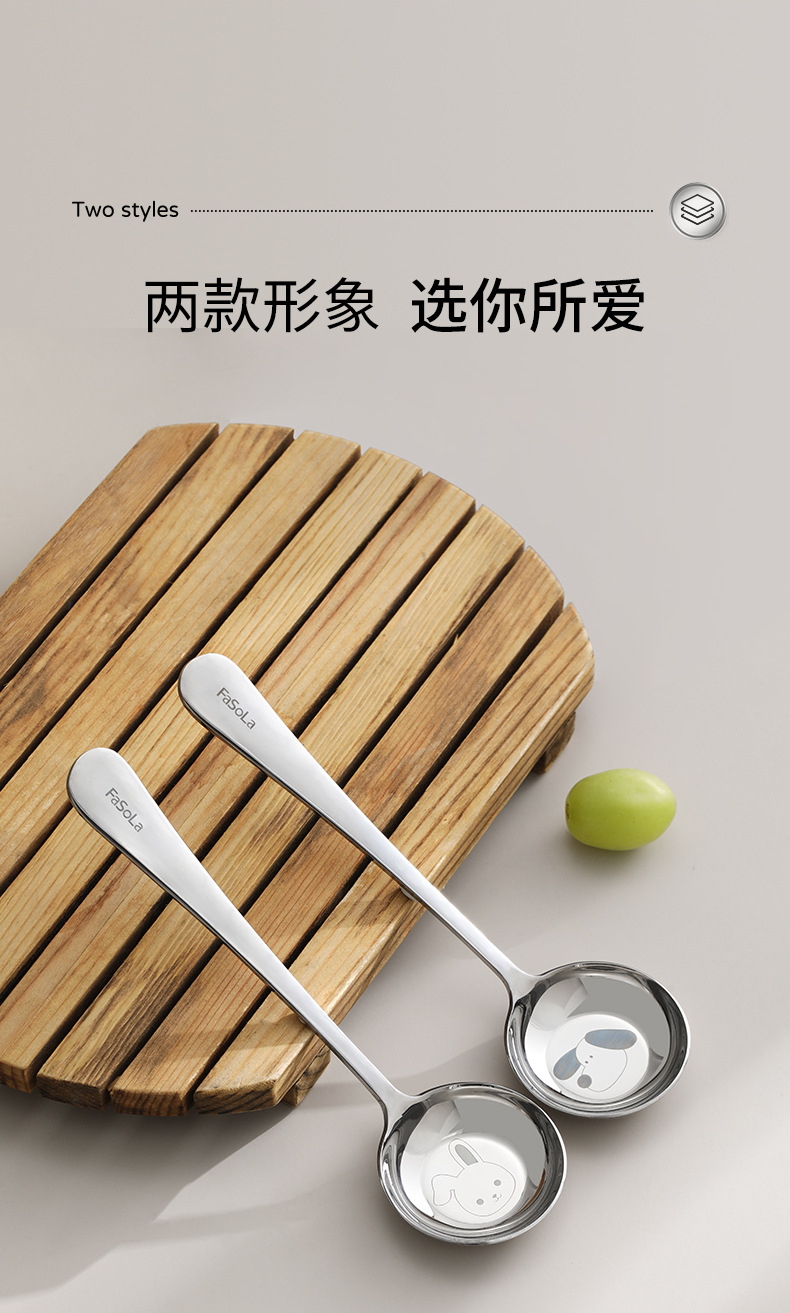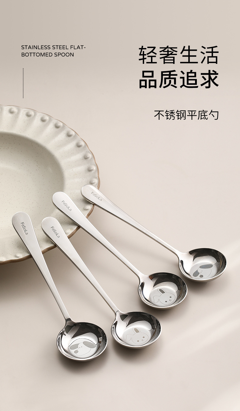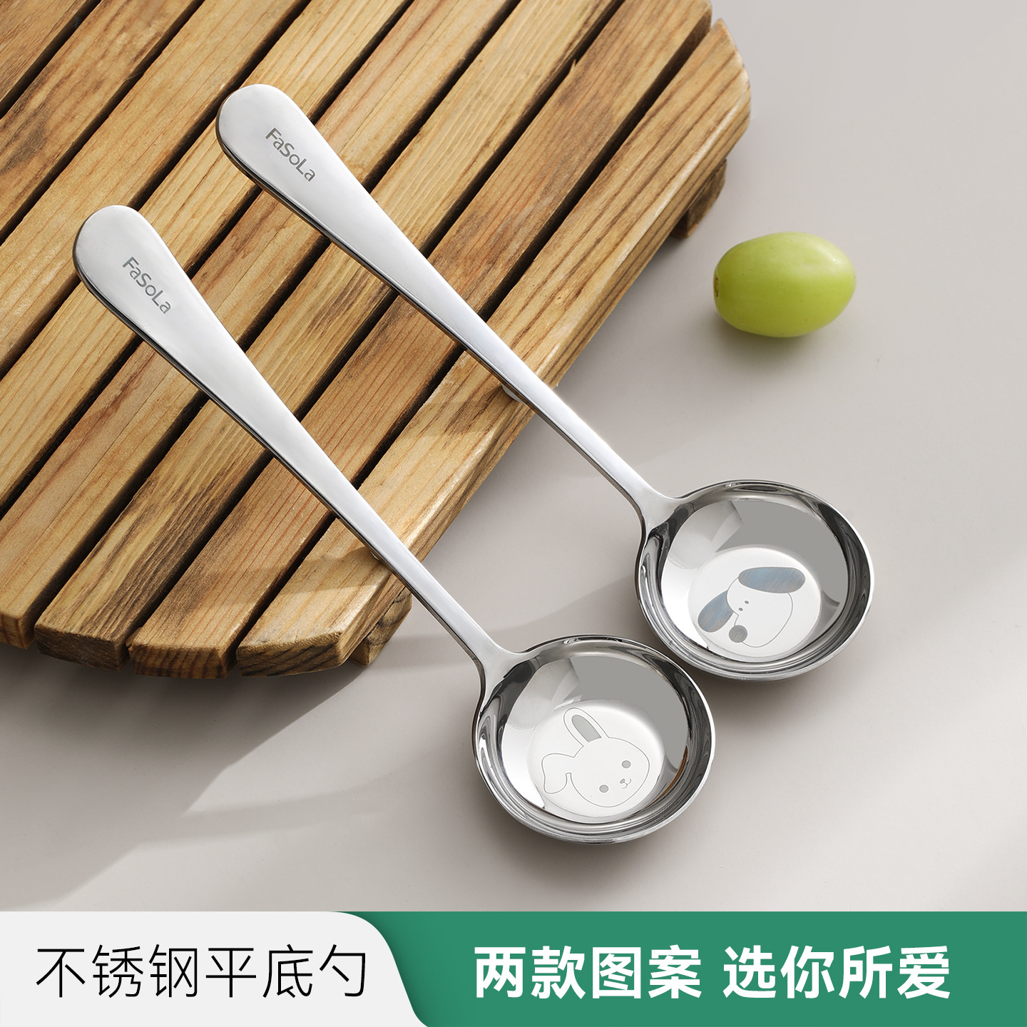 FaSoLa长柄圆勺家用高颜值吃饭喝汤调羹勺食品级316L不锈钢平底勺