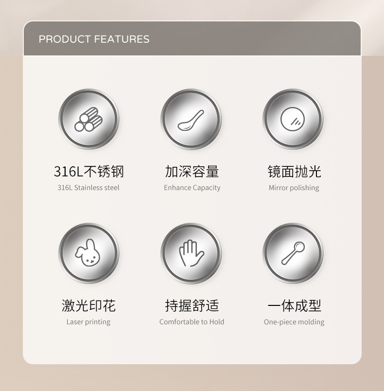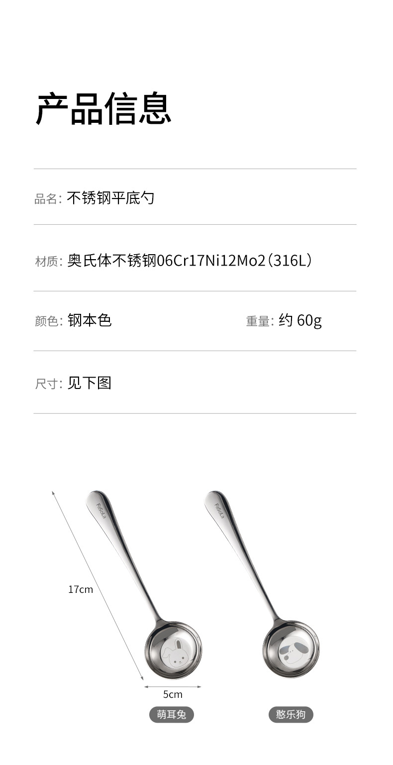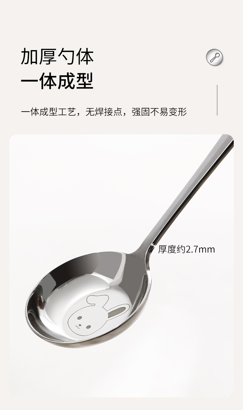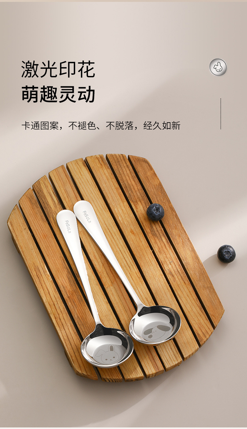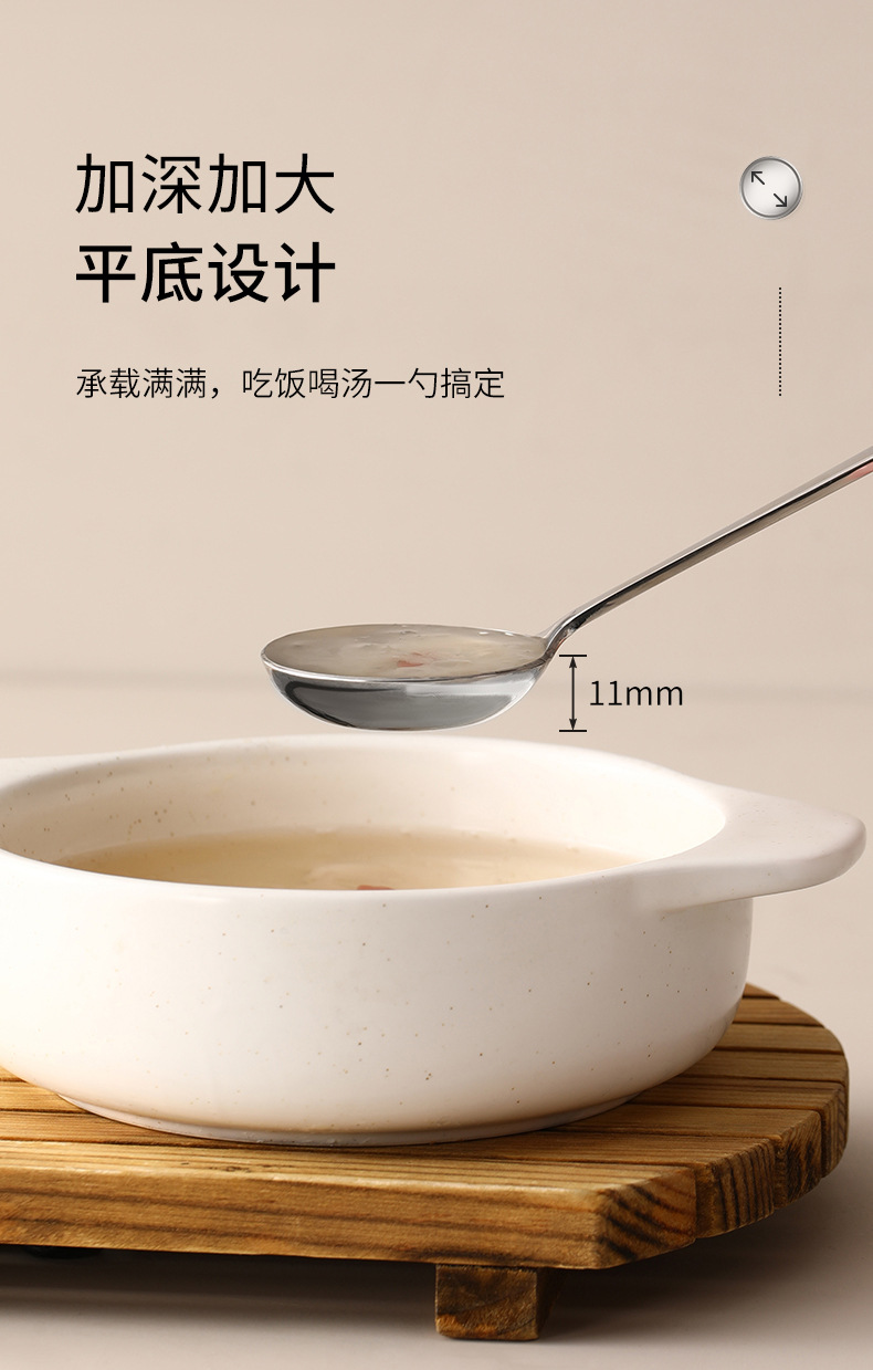FaSoLa长柄圆勺家用高颜值吃饭喝汤调羹勺食品级316L不锈钢平底勺