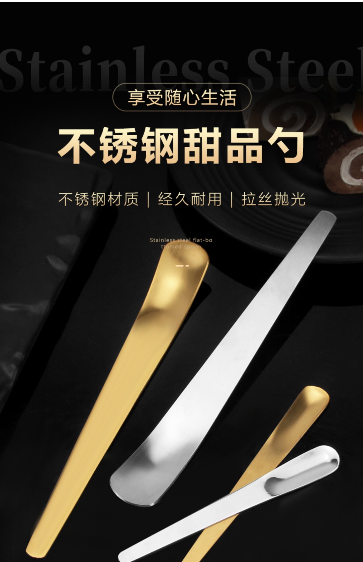 家用甜品勺不锈钢平头勺子长柄可爱雪糕勺蛋糕勺搅拌勺饺子挑馅勺