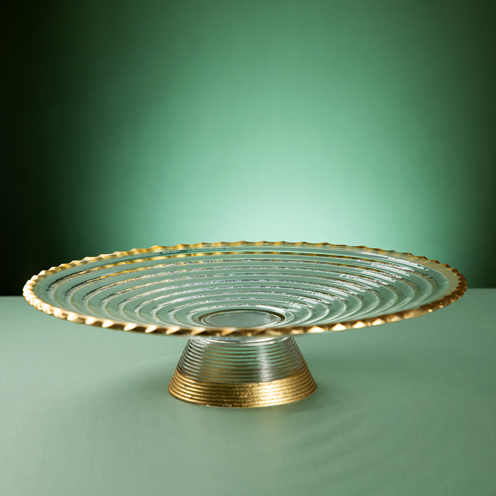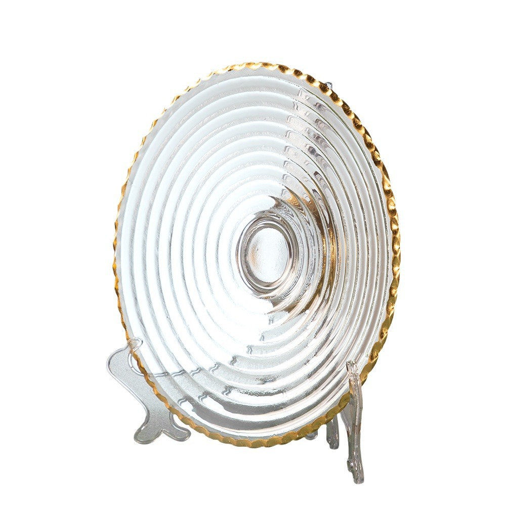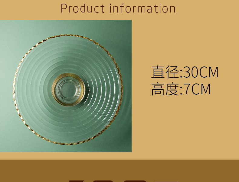 北欧高颜值风描金玻璃水果盘创意客厅家用高档高脚果盘大号零食盘