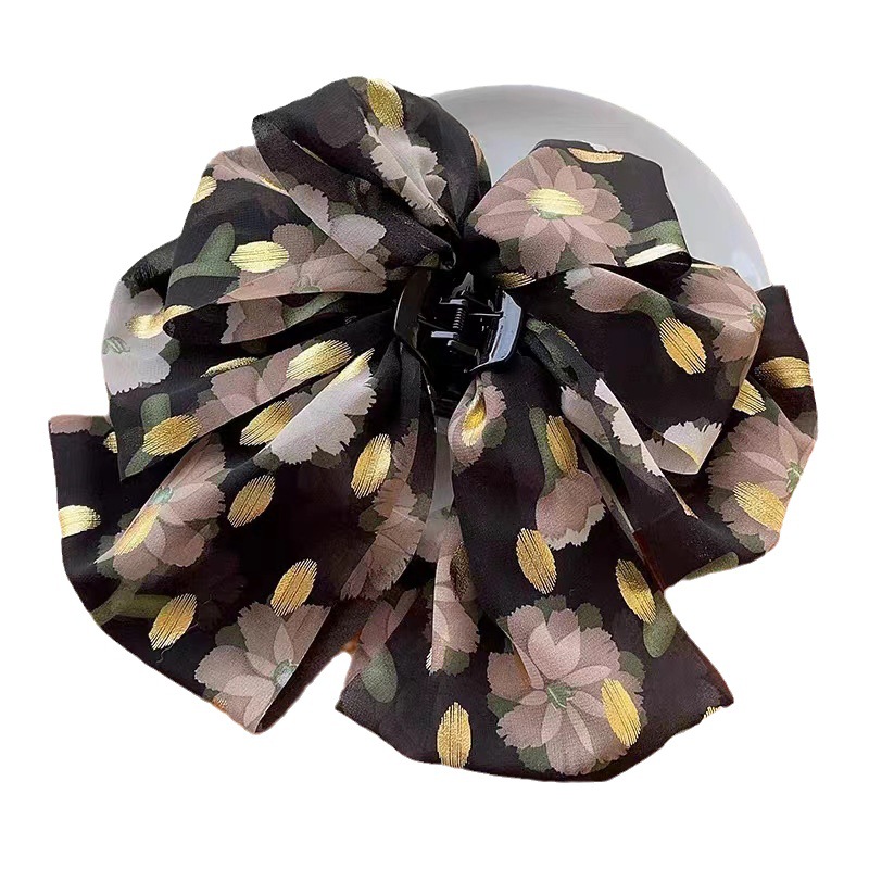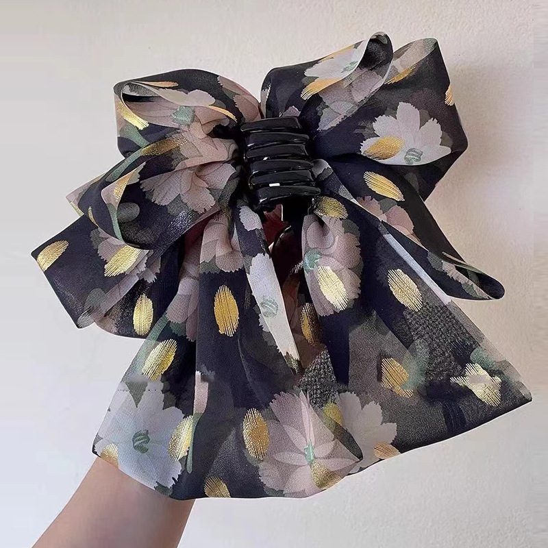 秋季新款法式复古碎花蝴蝶结马尾抓夹气质高级氛围感后脑勺发夹女