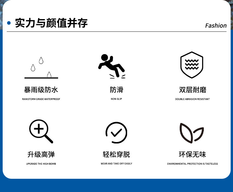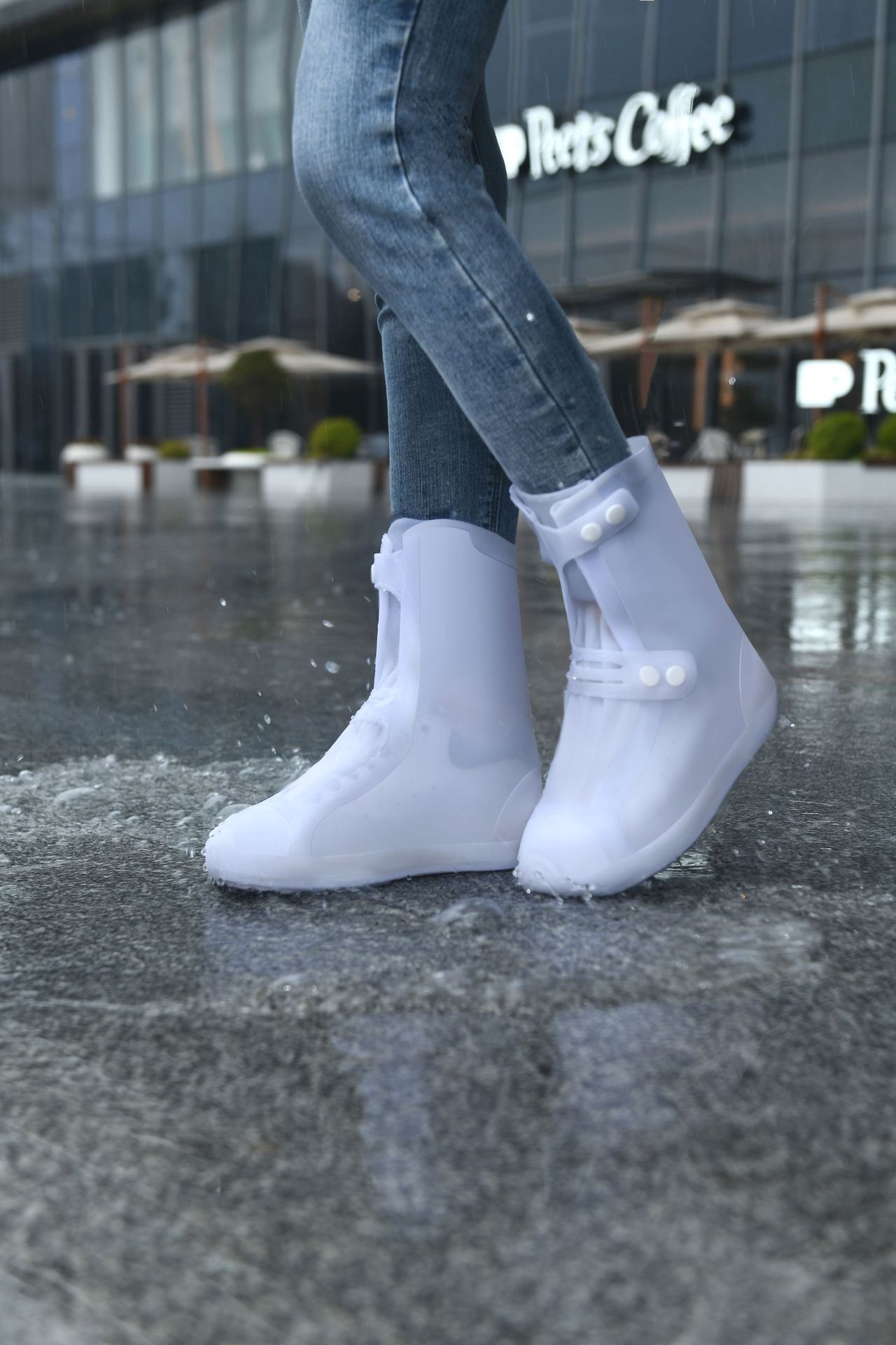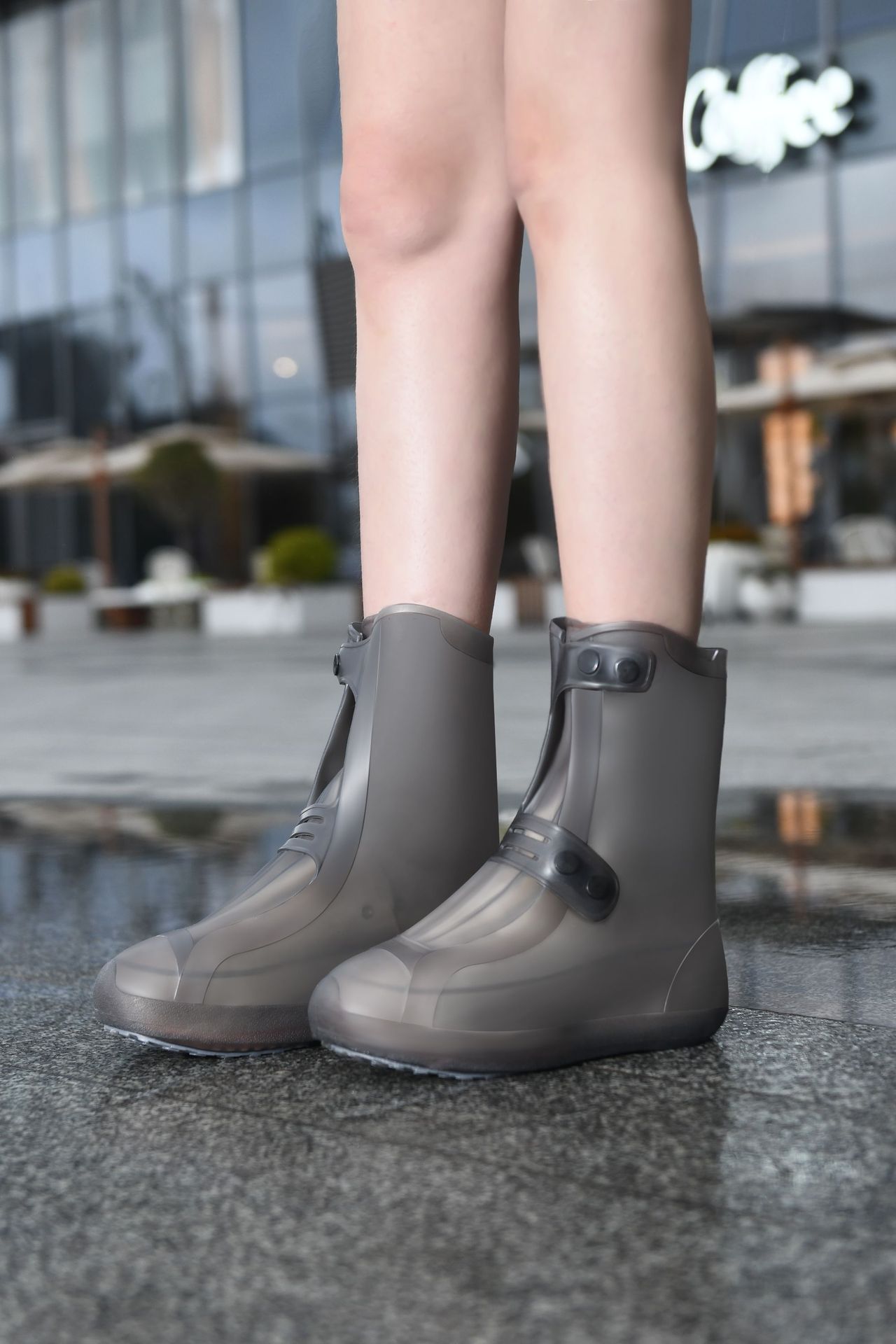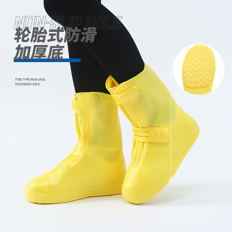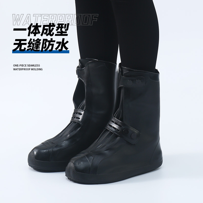 防水鞋套高筒加厚防滑耐磨雨鞋套男女双排扣防雨鞋套TPE鞋套批发
