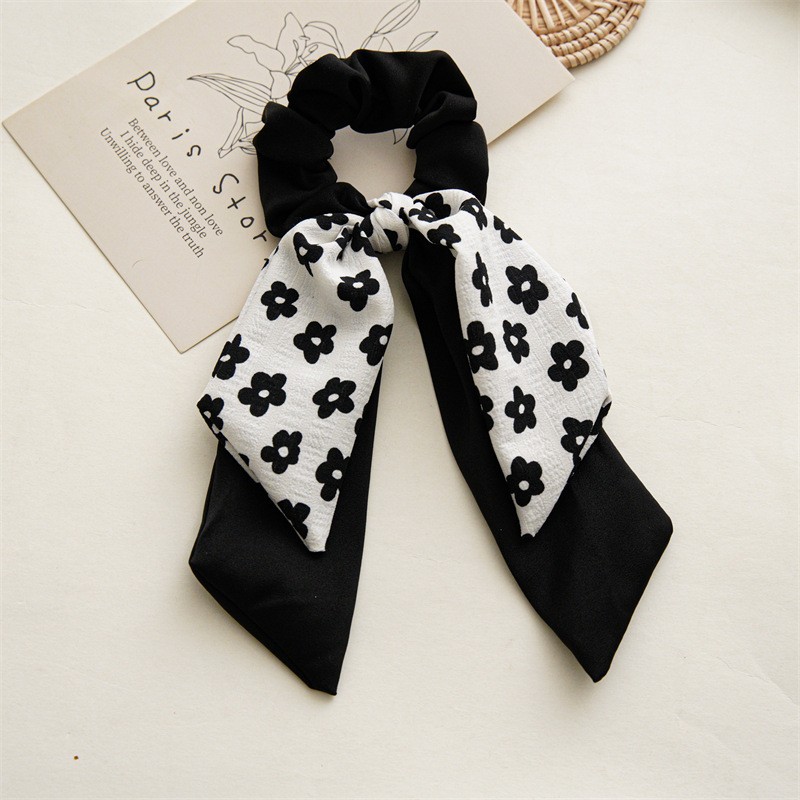 新款黑色系点点双层马尾飘带大肠发圈女蝴蝶结发圈ins风头饰