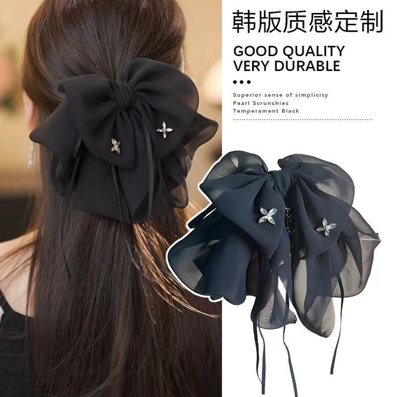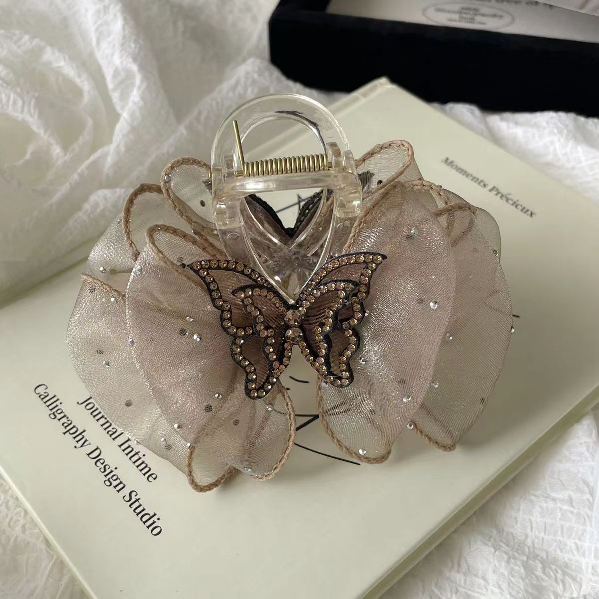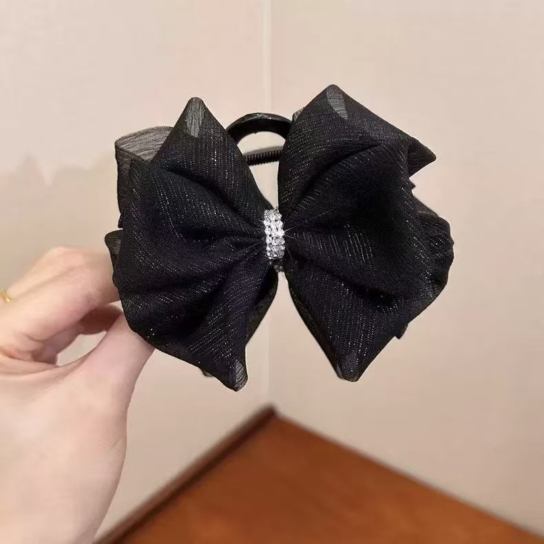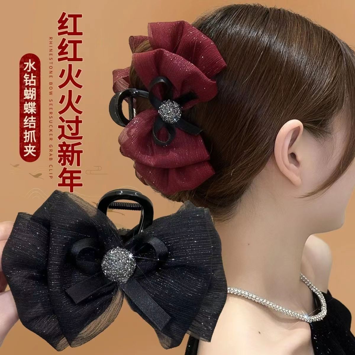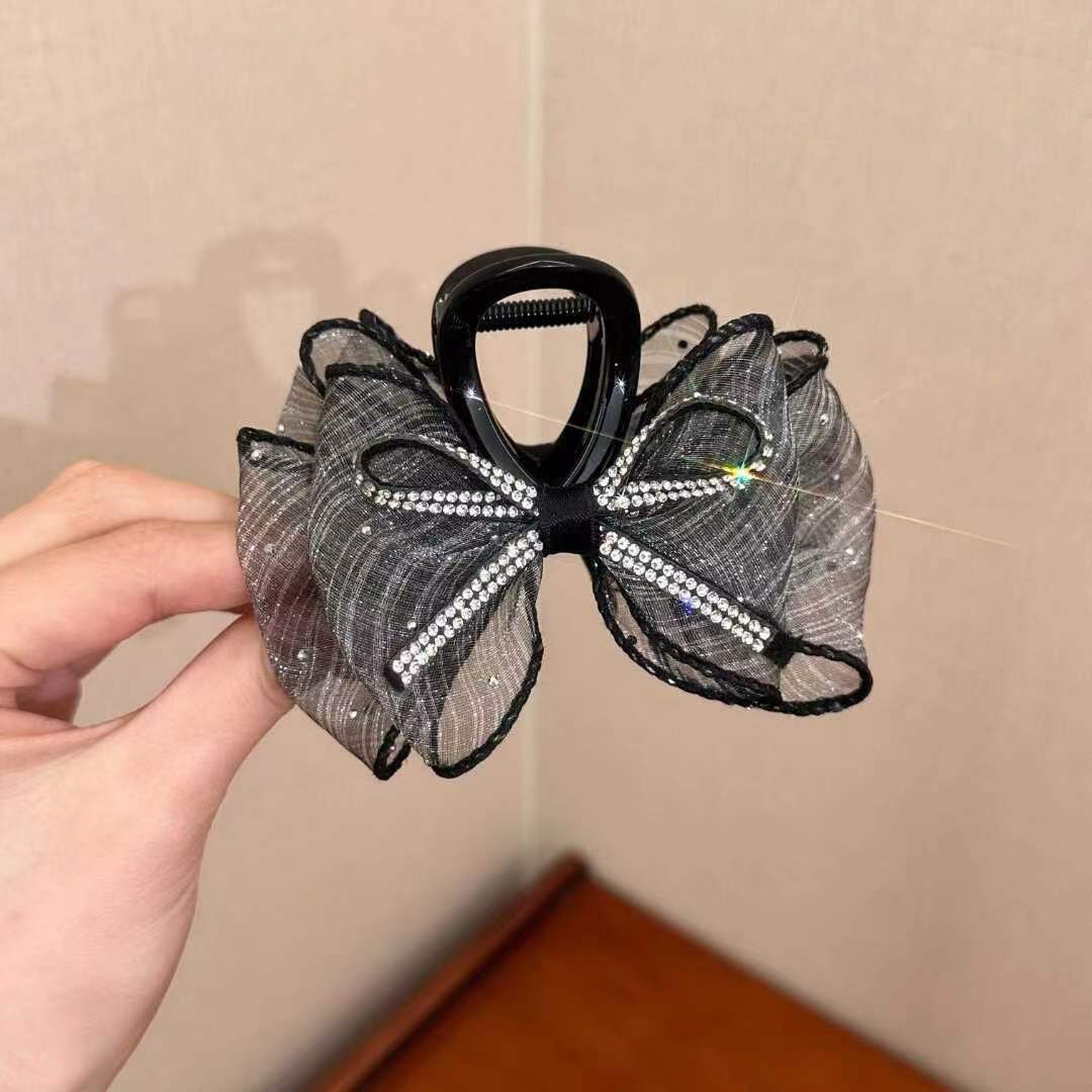 蝴蝶结闪钻网纱抓夹新款优雅洋气百搭后脑勺漂亮鲨鱼夹盘头发饰