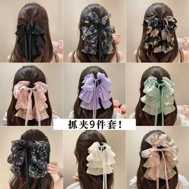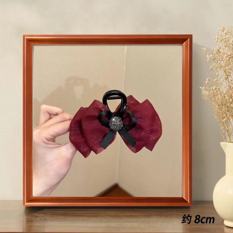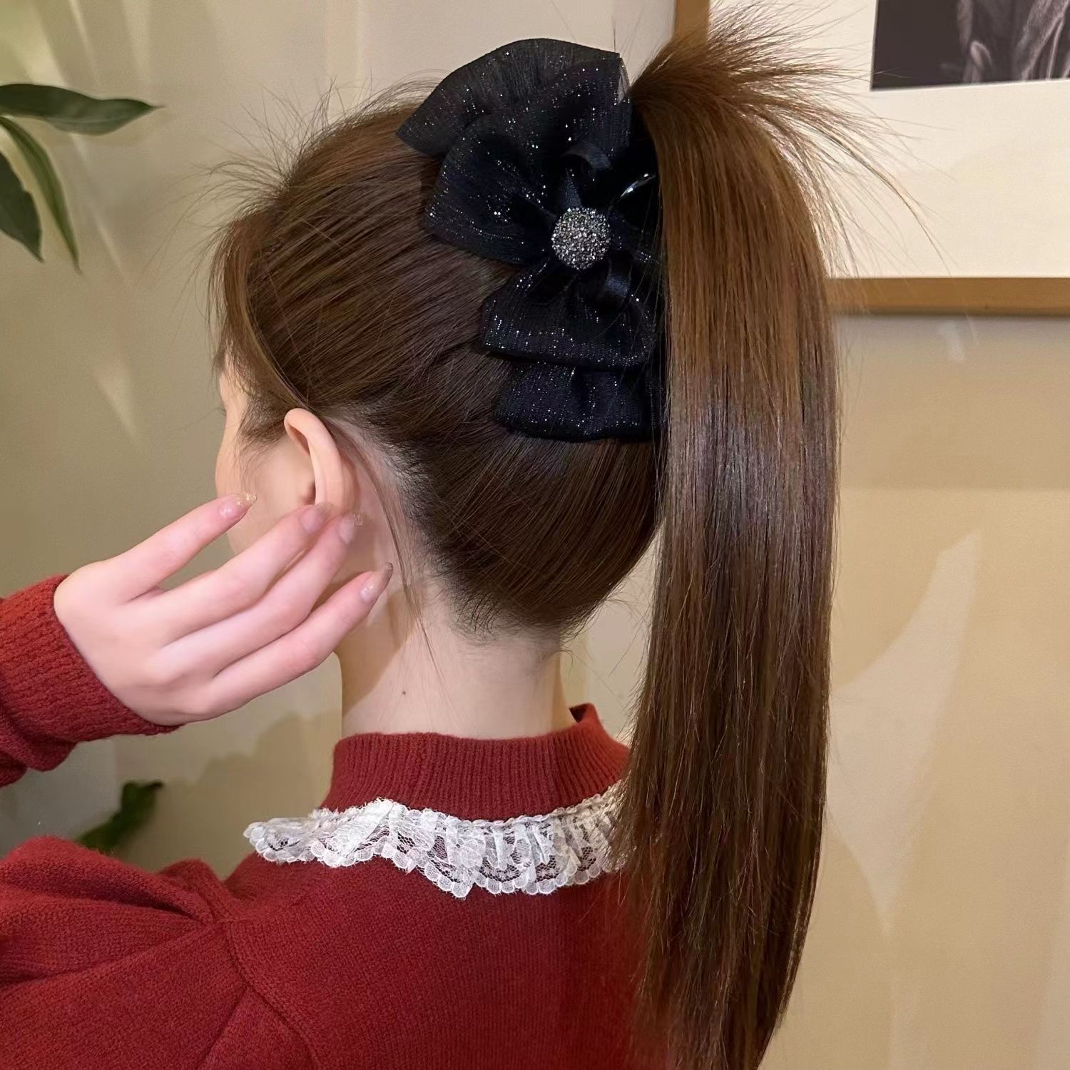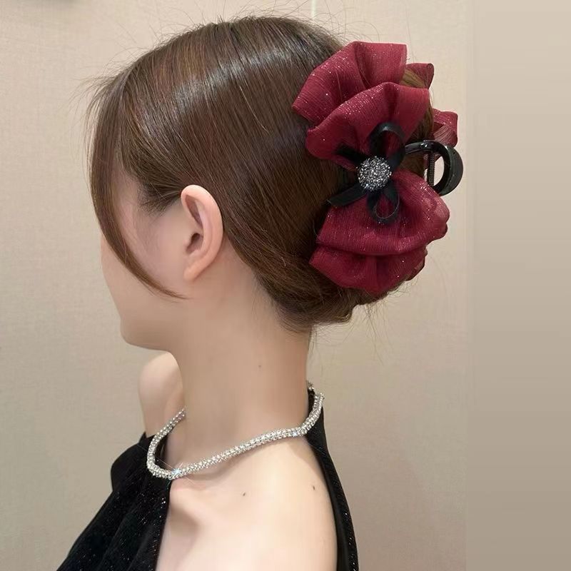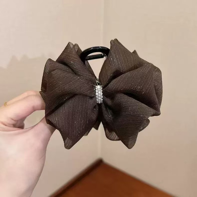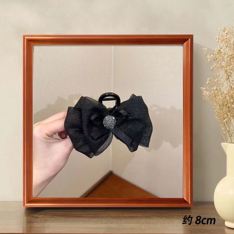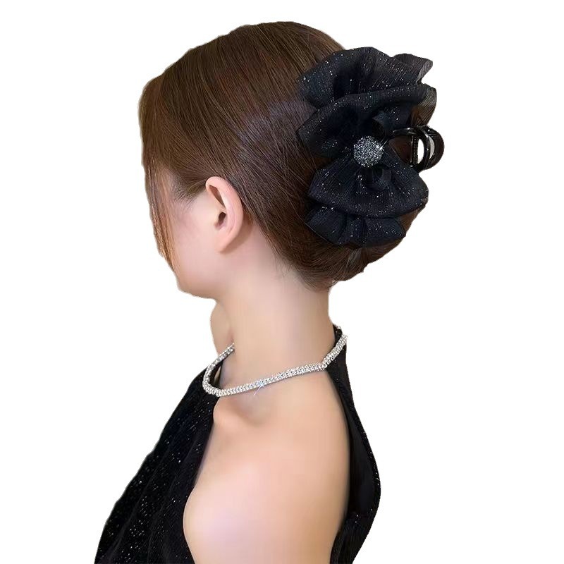 蝴蝶结闪钻网纱抓夹新款优雅洋气百搭后脑勺漂亮鲨鱼夹盘头发饰