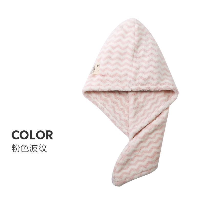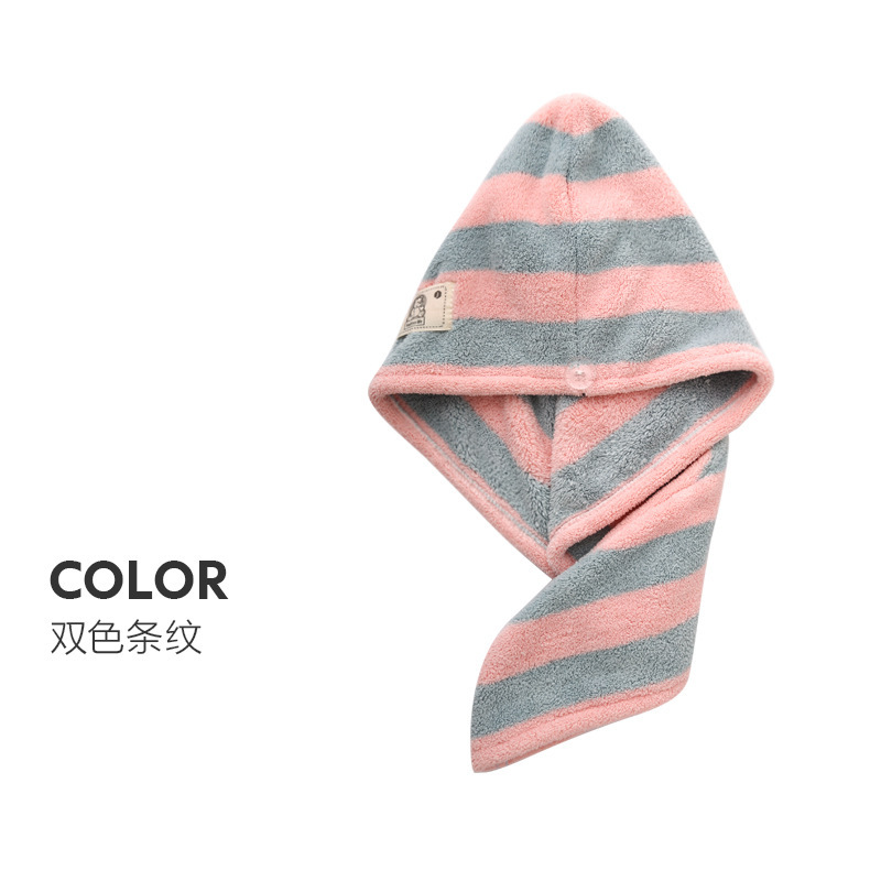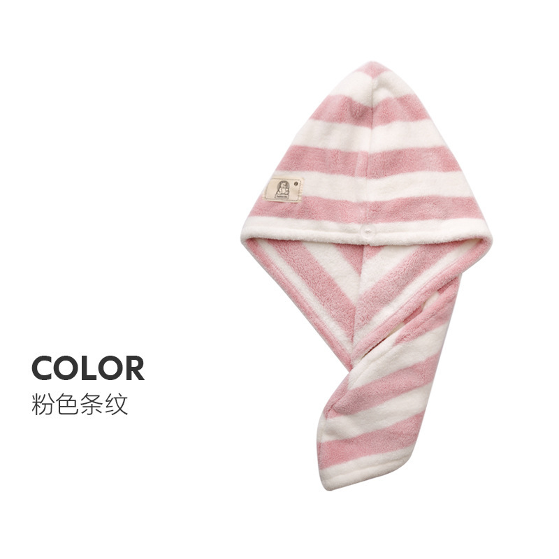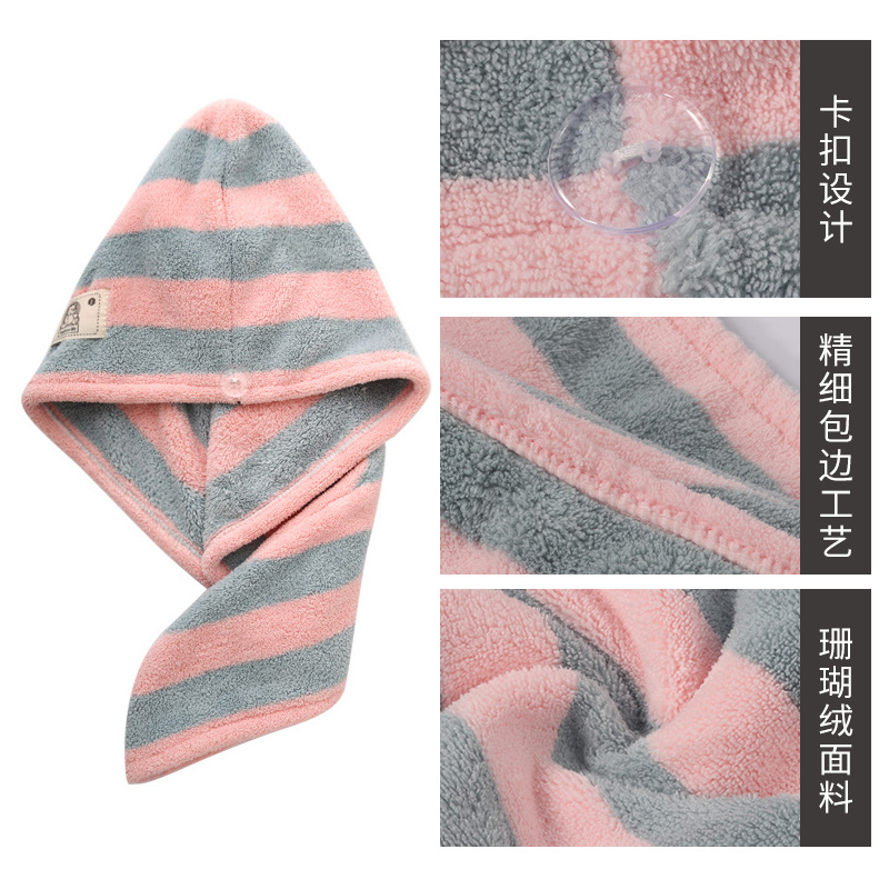 珊瑚绒干发帽吸水条纹干发巾速干干发帽毛巾可爱时尚珊瑚绒