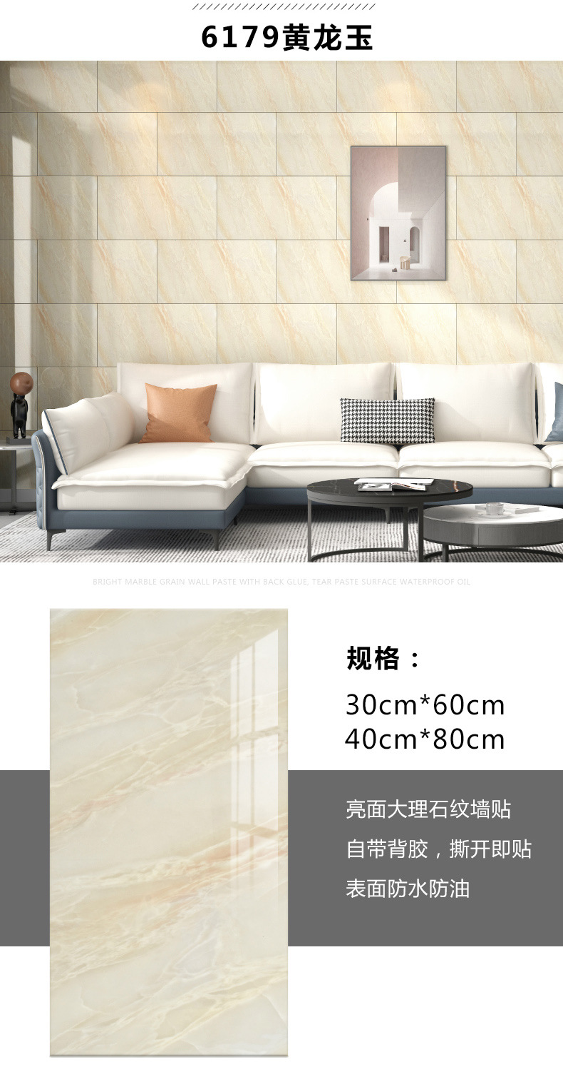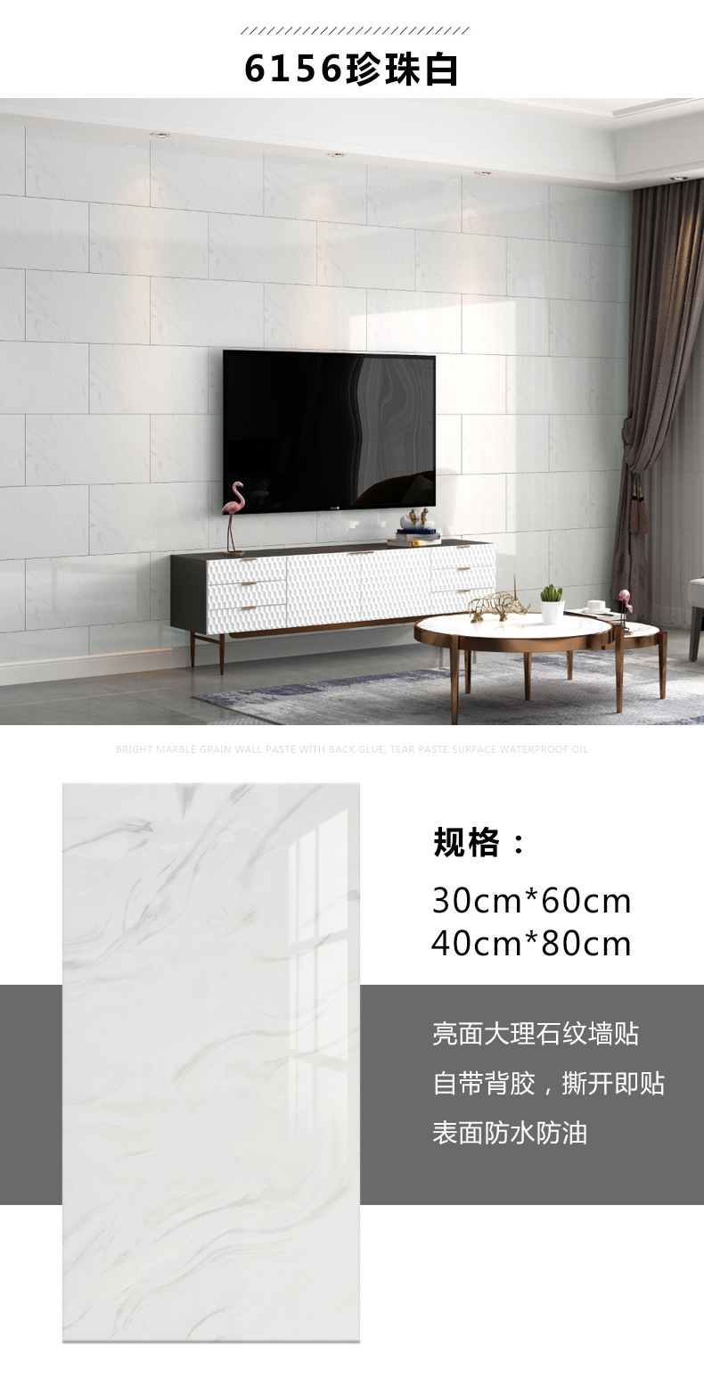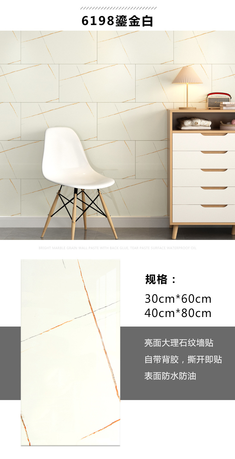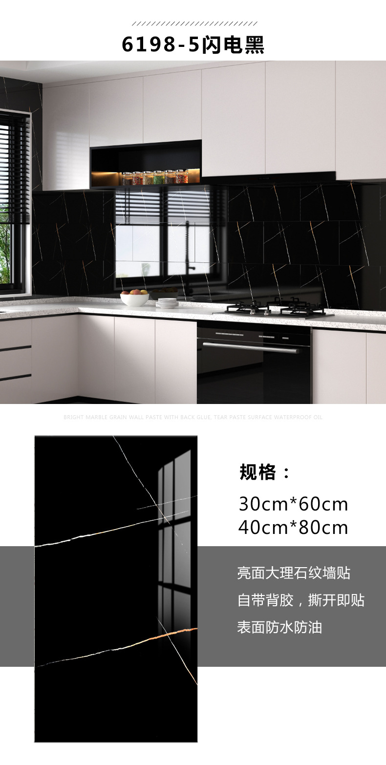 防水仿瓷砖大理石纹墙贴厨房PVC防油贴纸30CMX30CM翻新装饰贴纸