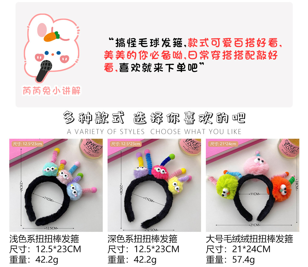 可爱扭扭棒毛绒搞怪天线发箍少女心派对创意发饰女孩洗漱化妆头箍