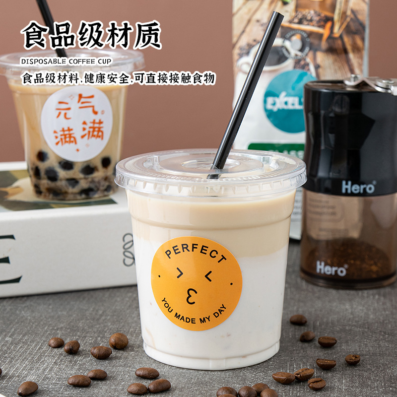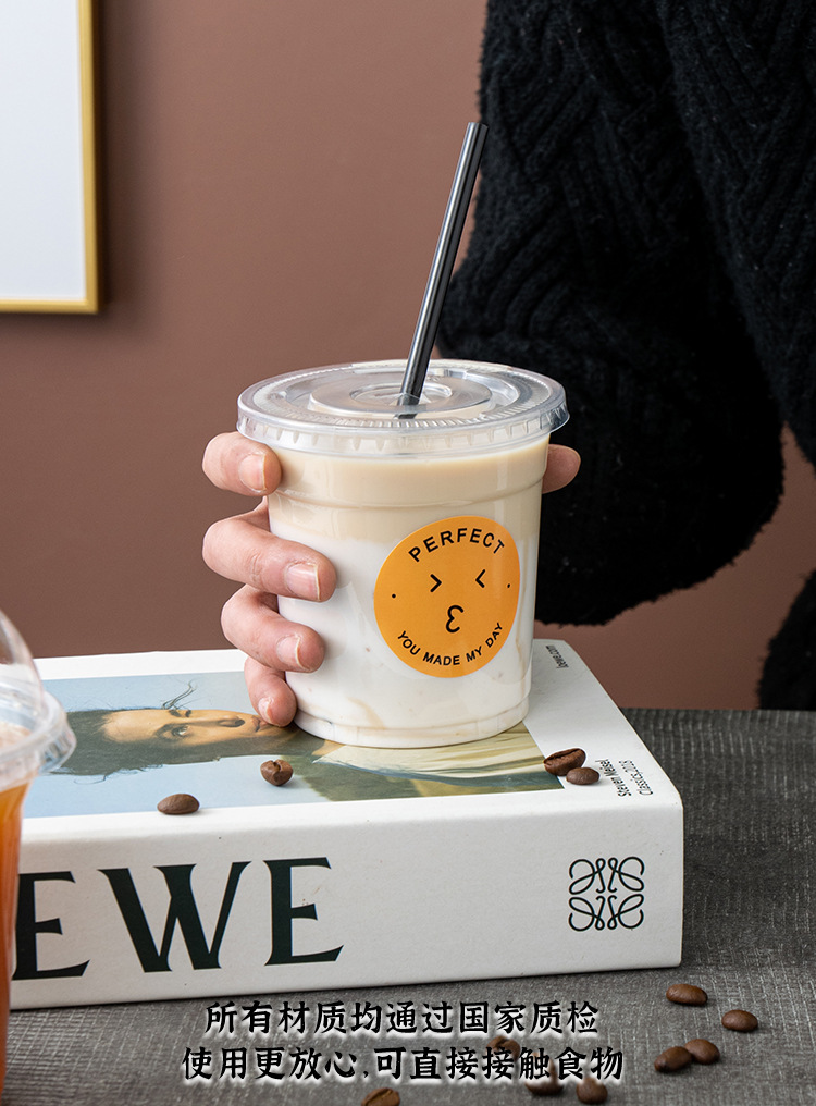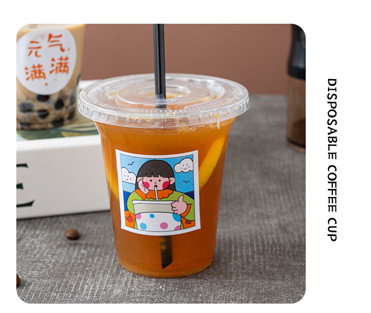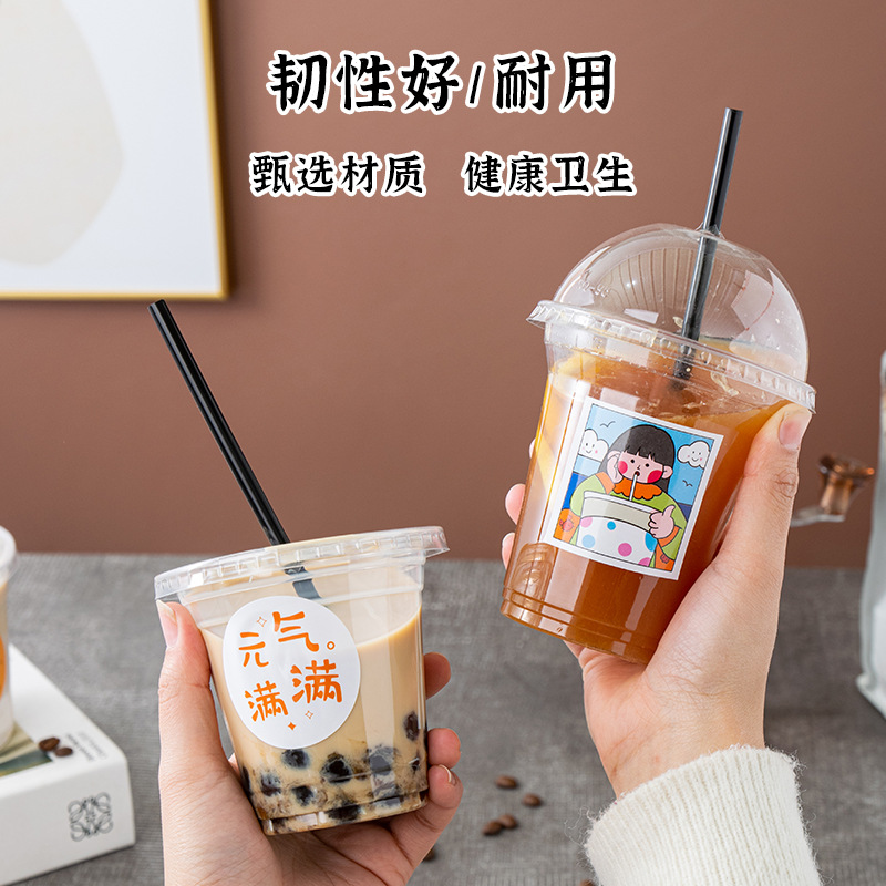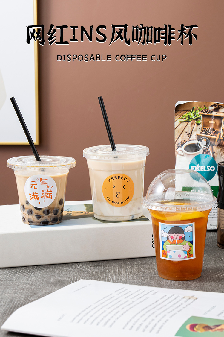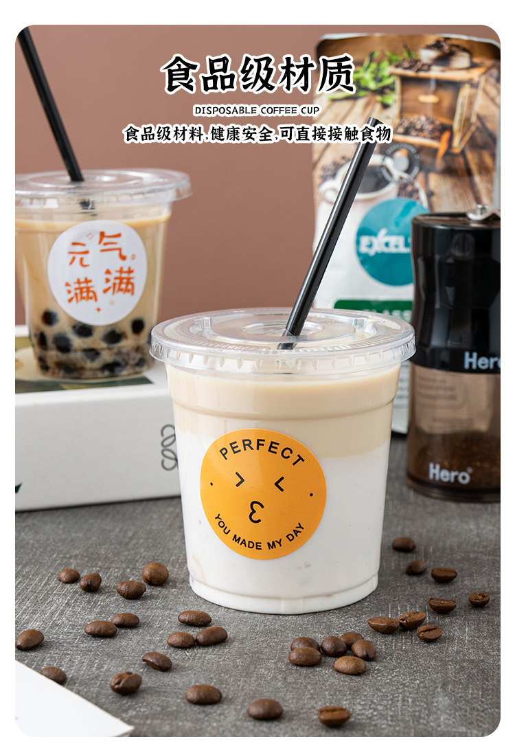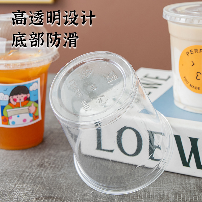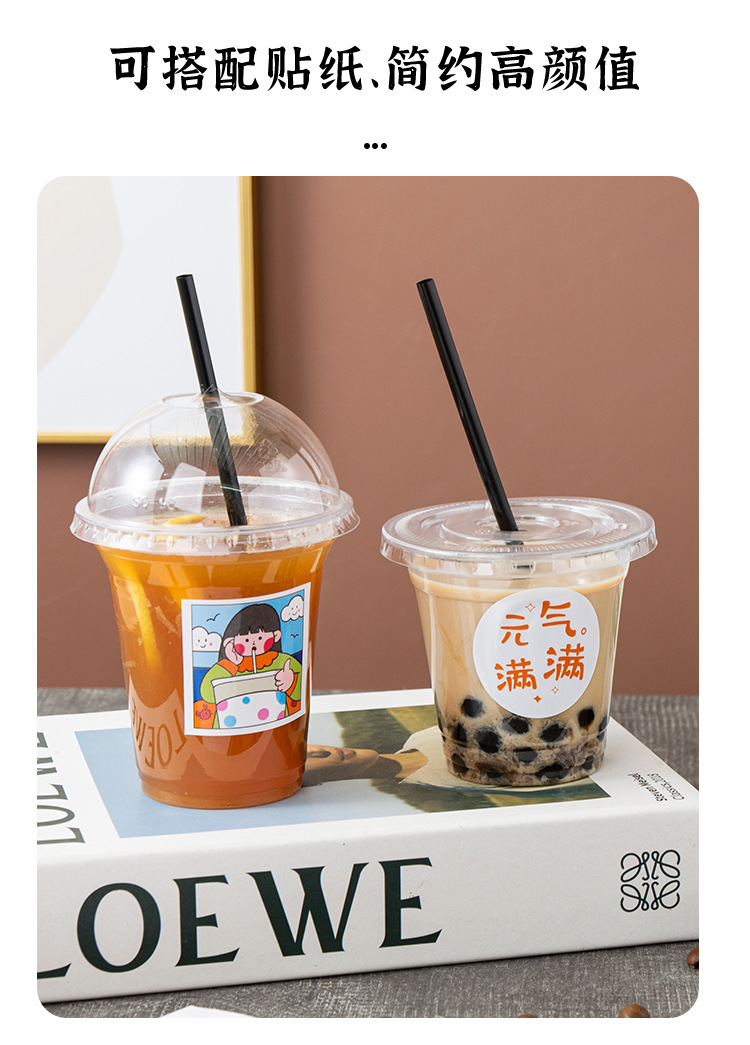 奶茶杯一次性咖啡杯500ml饮料生椰拿铁打包pet带盖冰粉冷饮杯98口