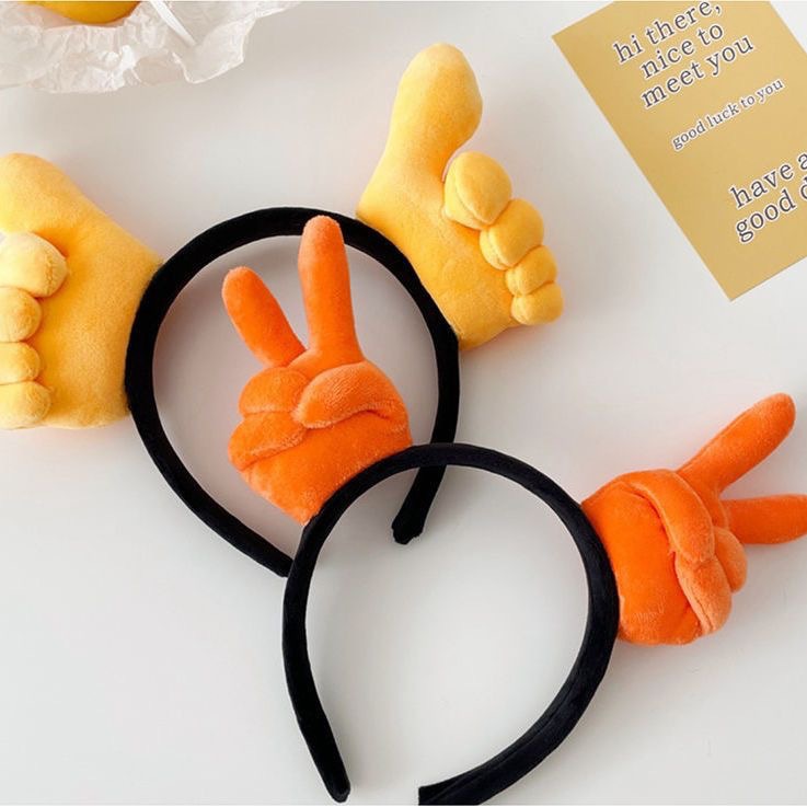 卡通搞怪大拇指胜利比心手势发箍毛绒头箍搞笑头饰少女小孩成人女