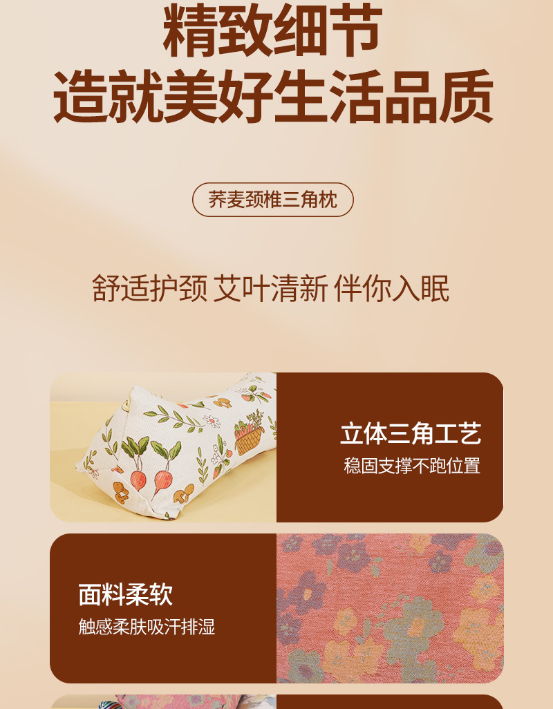 三角颈椎枕 三角荞麦枕家用护颈枕睡眠枕荞麦壳颈椎枕肩周枕批发