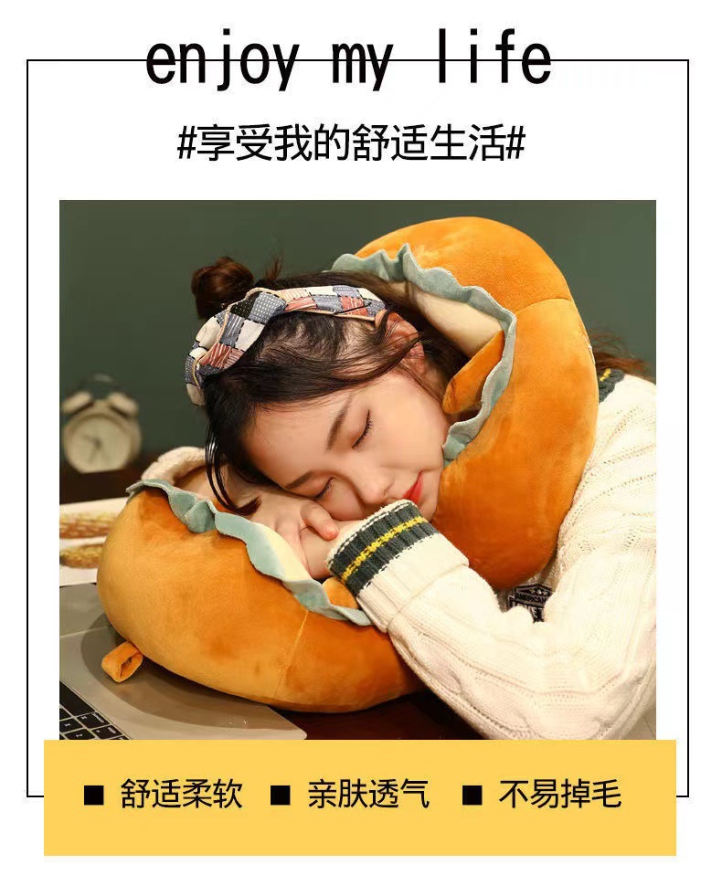 可爱吐司微笑U型颈枕护颈脖子汽车用旅行便携U形枕头颈椎靠枕女