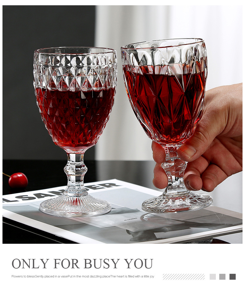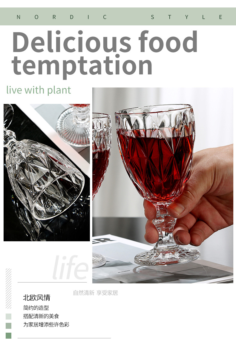ins网红红酒杯 家用欧式浮雕葡萄酒杯香槟杯无铅菱格纹玻璃高脚杯
