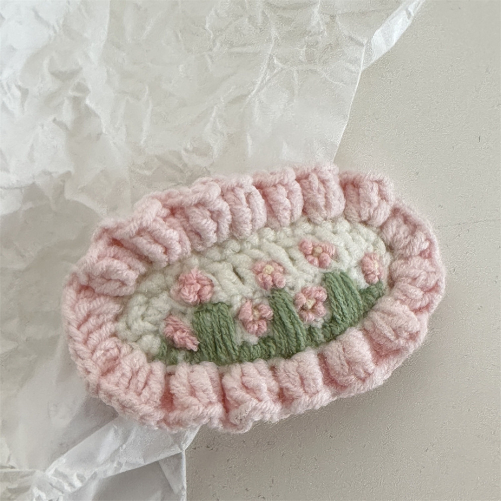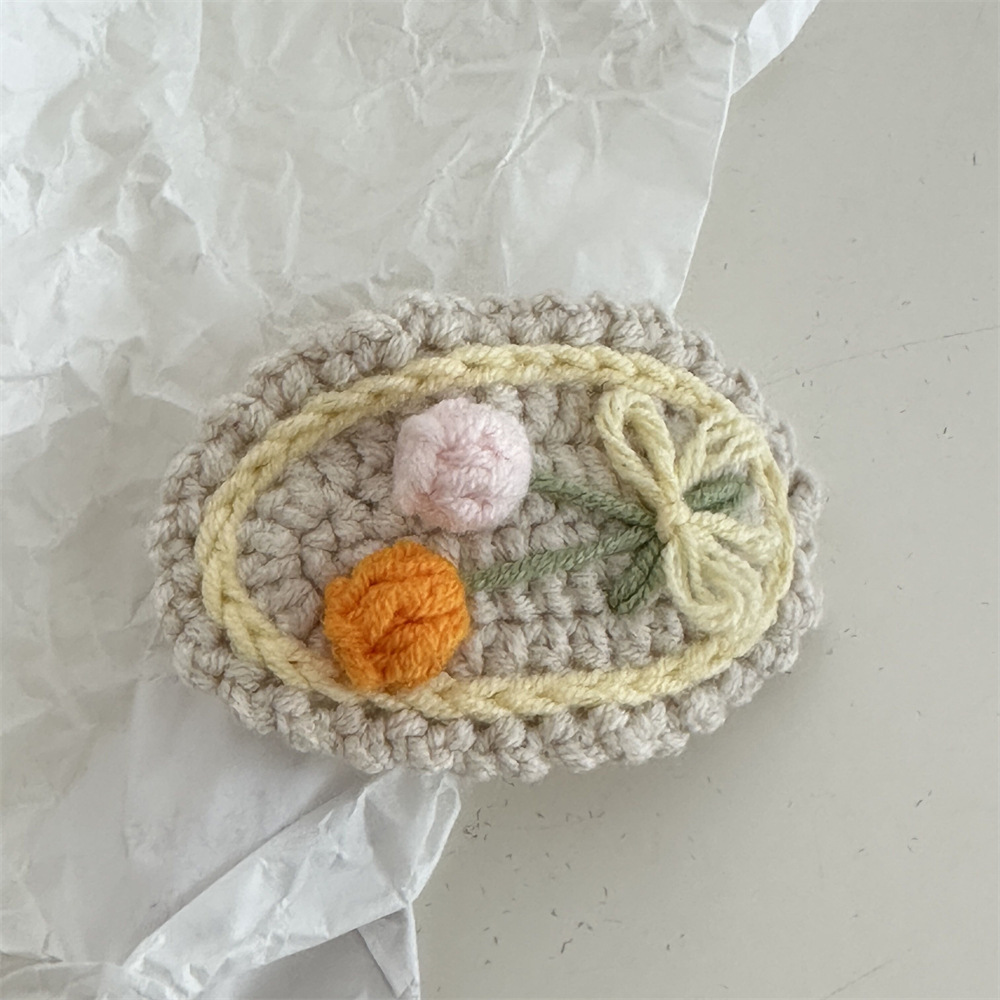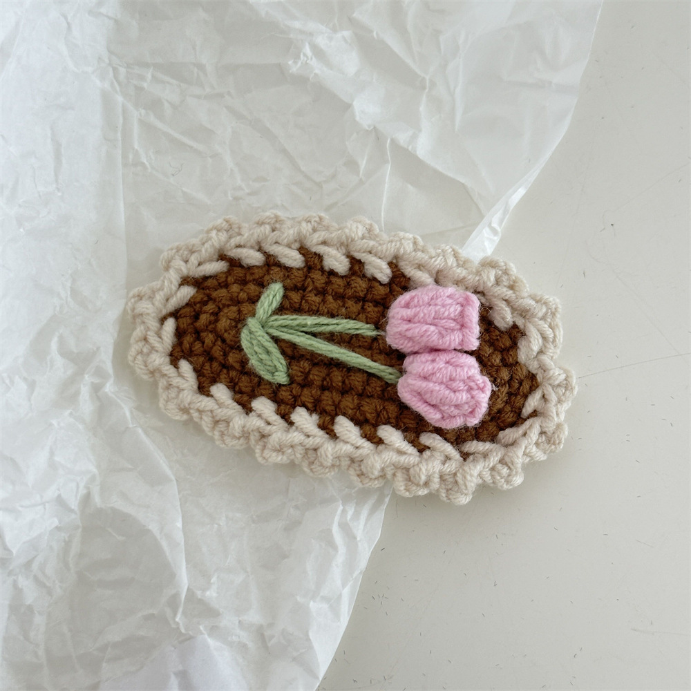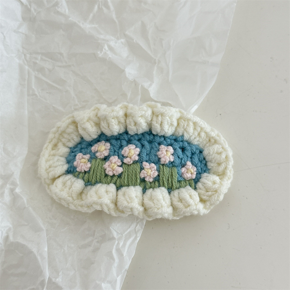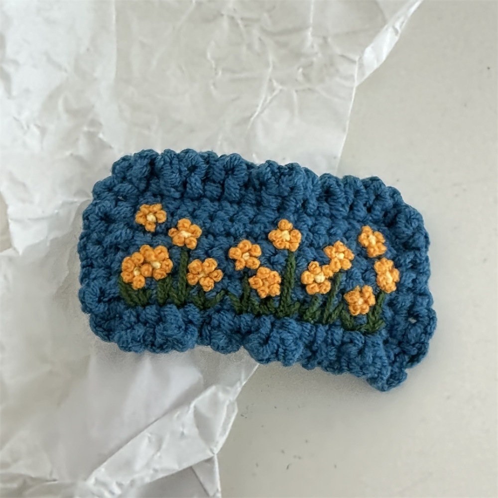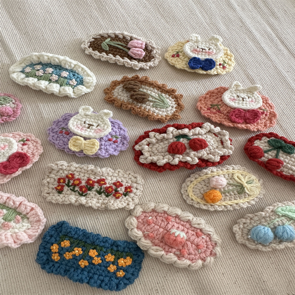 钩针编织手工毛线刺绣清新可爱甜美彩色花朵发夹侧边刘海BB夹发饰