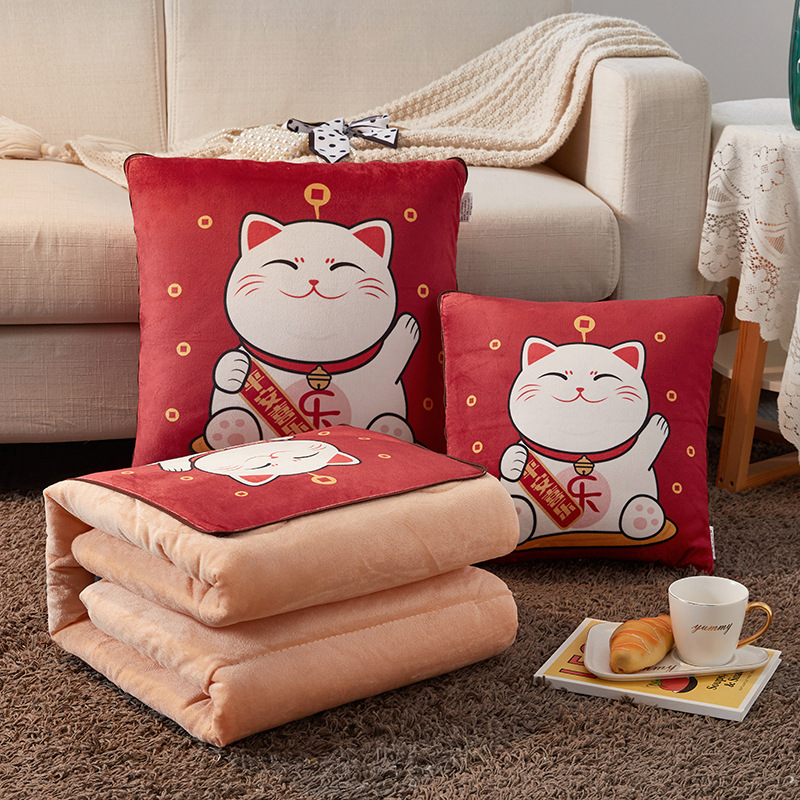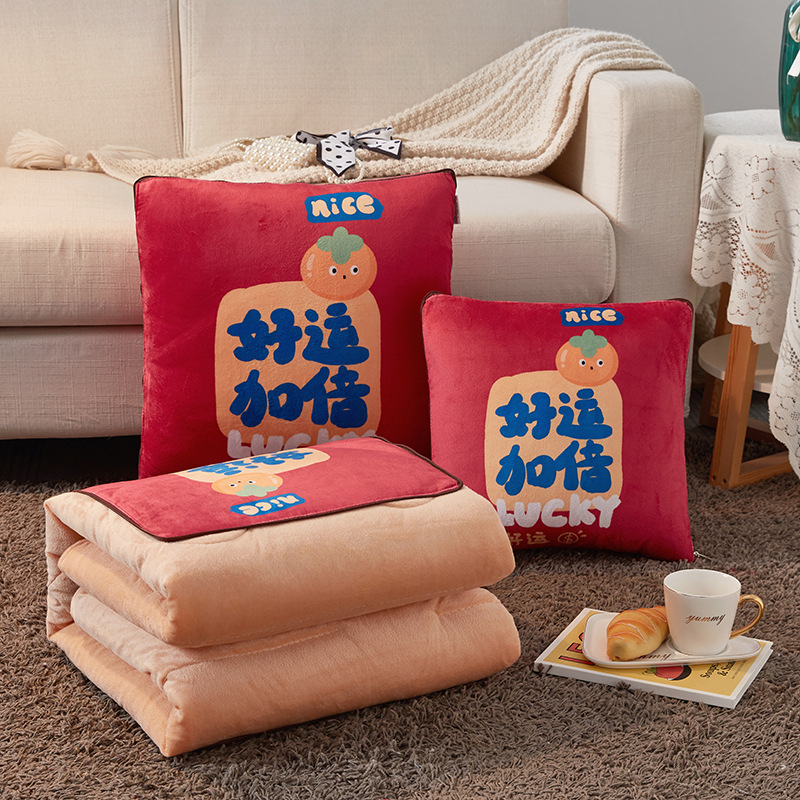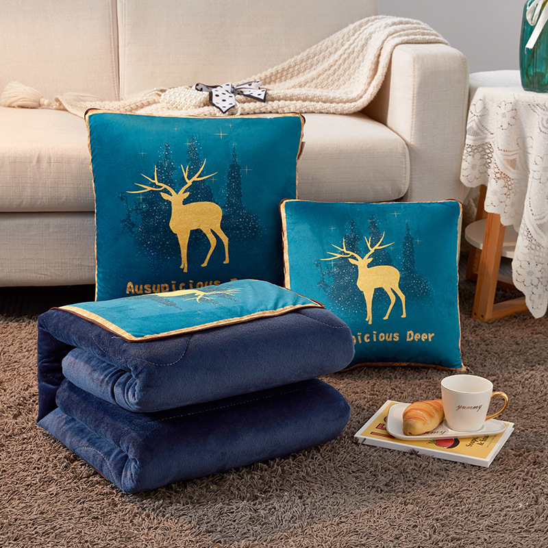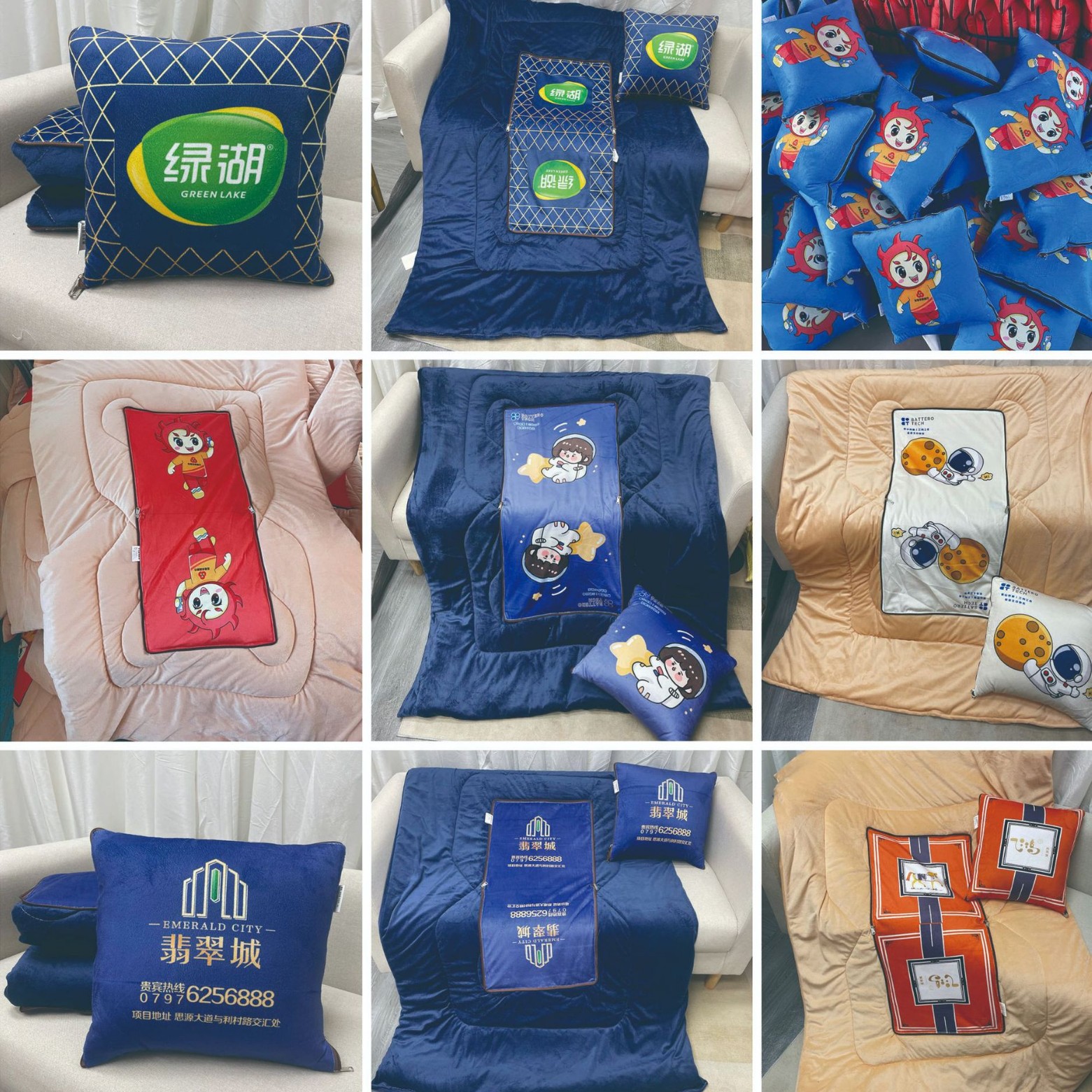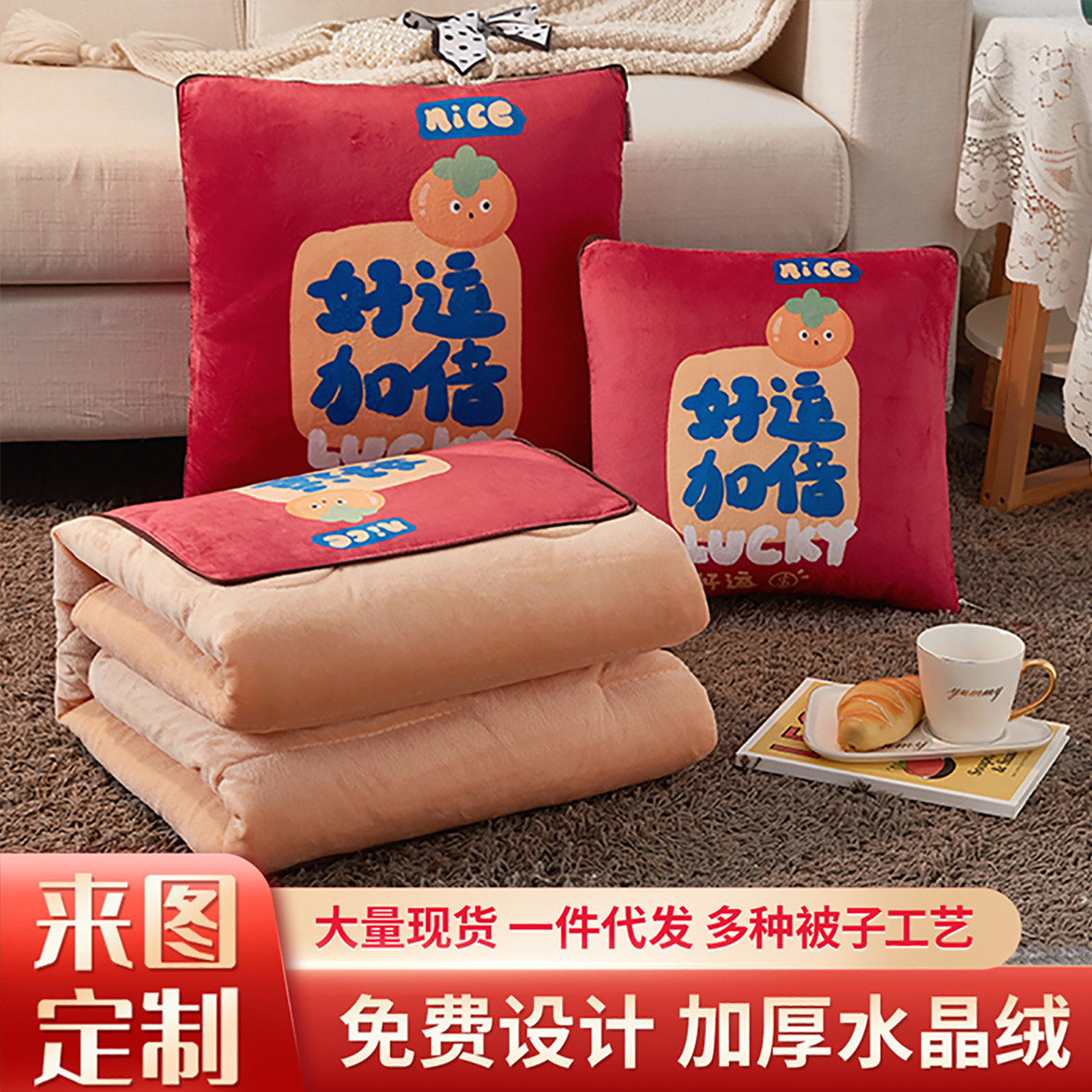 冬季加绒加厚全绒水晶绒抱枕被抱枕二合一礼品印logo卧室车载靠垫