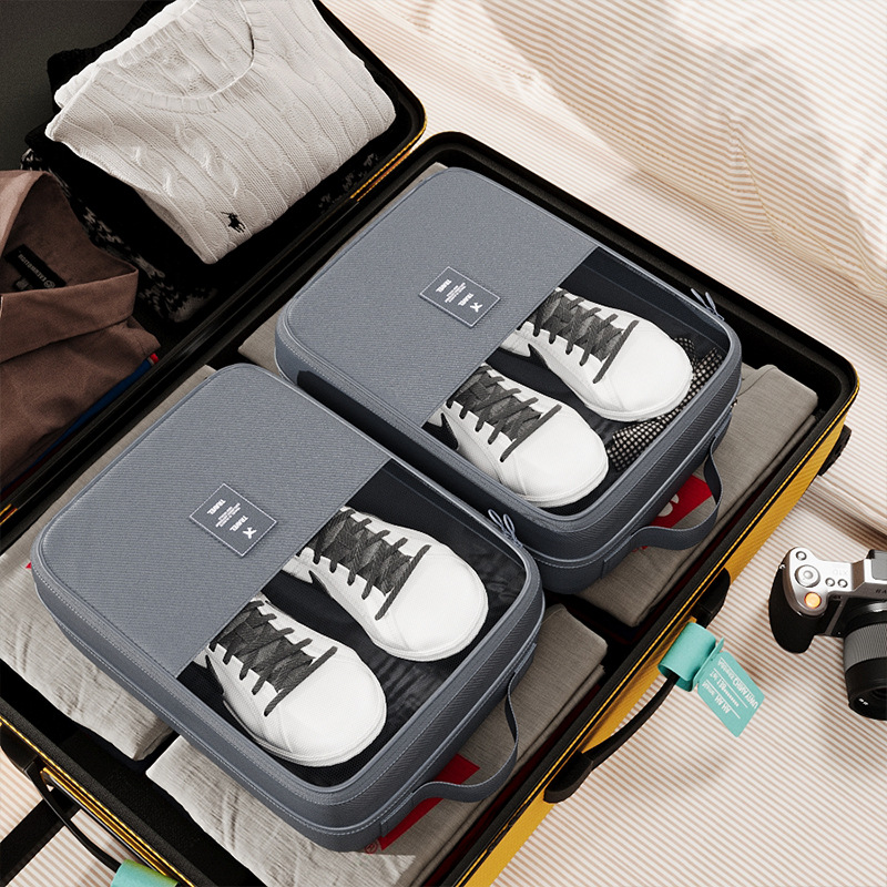 户外旅行鞋子收纳袋便携式加厚防尘收纳鞋袋斜纹布三位鞋盒收纳盒