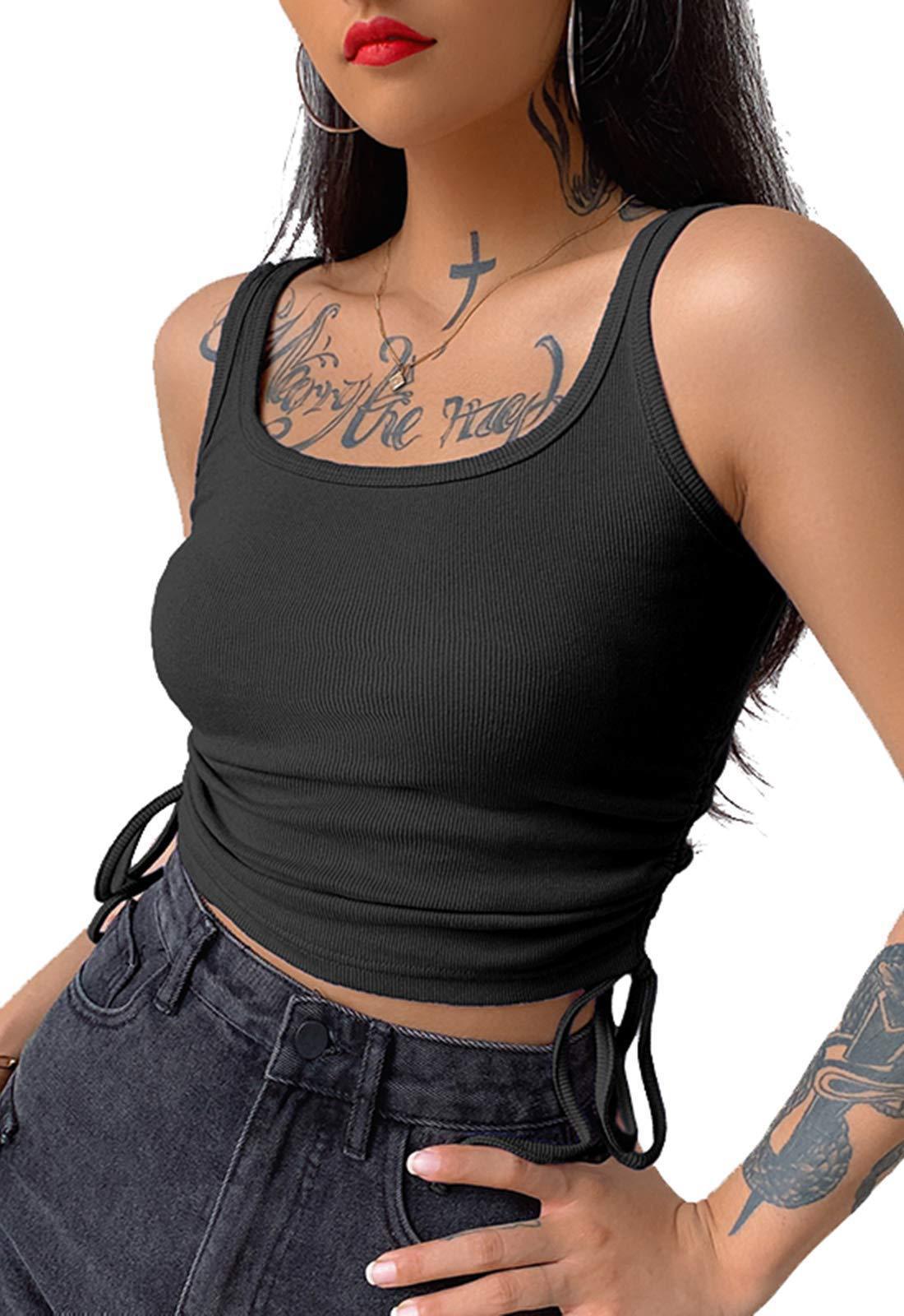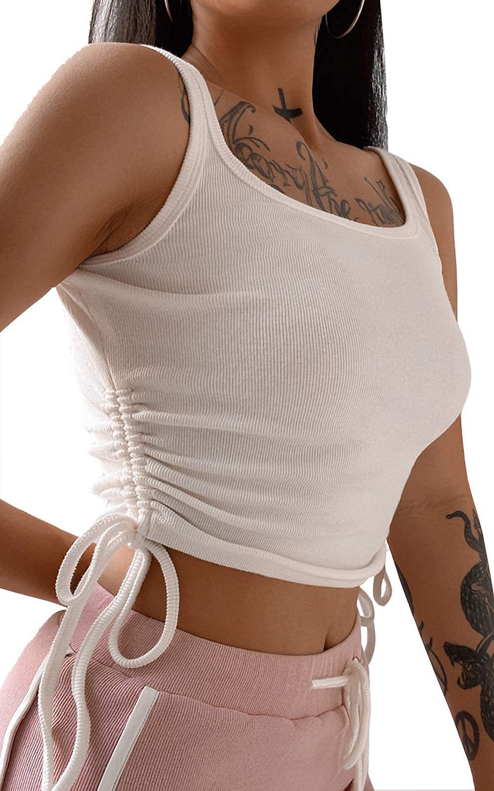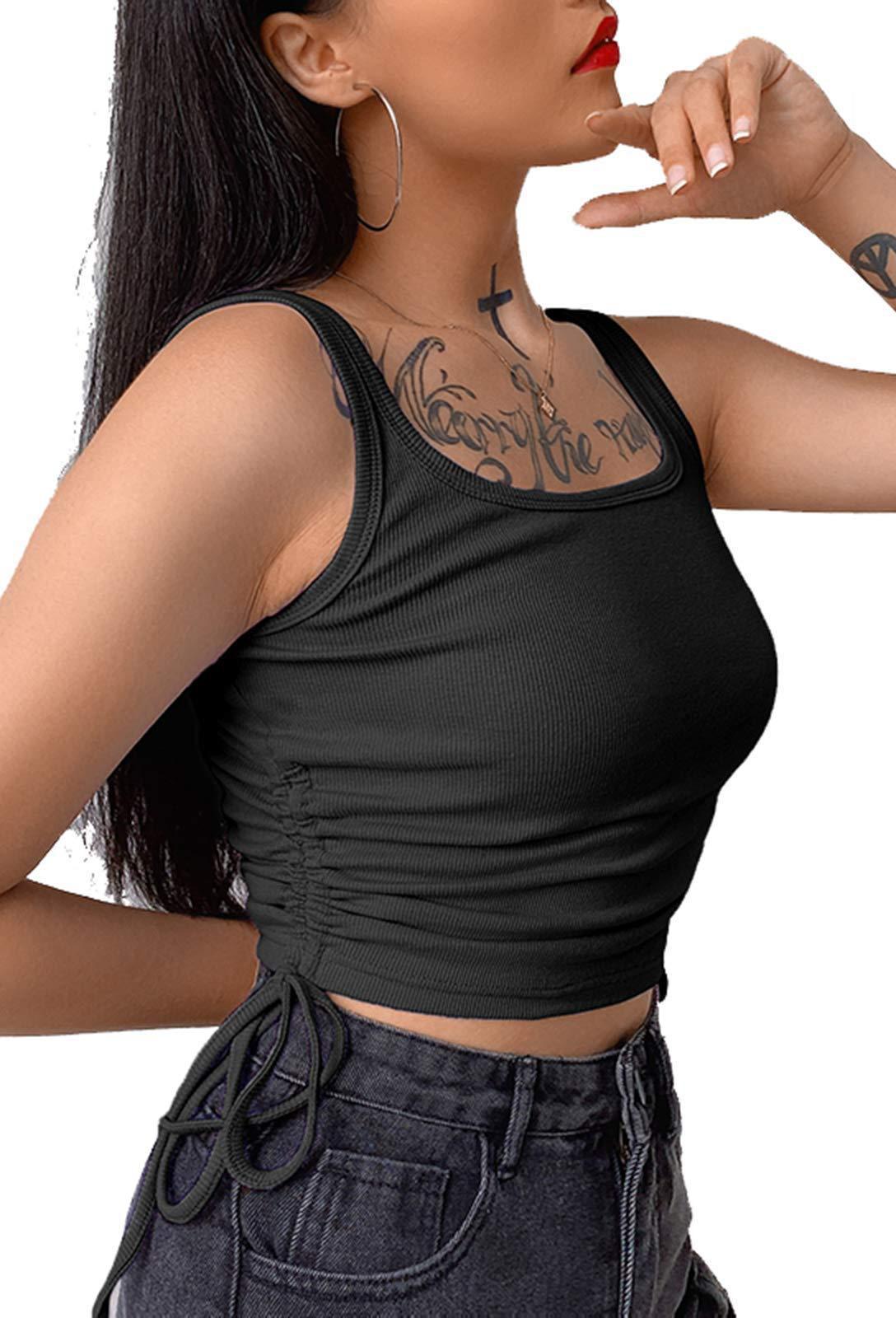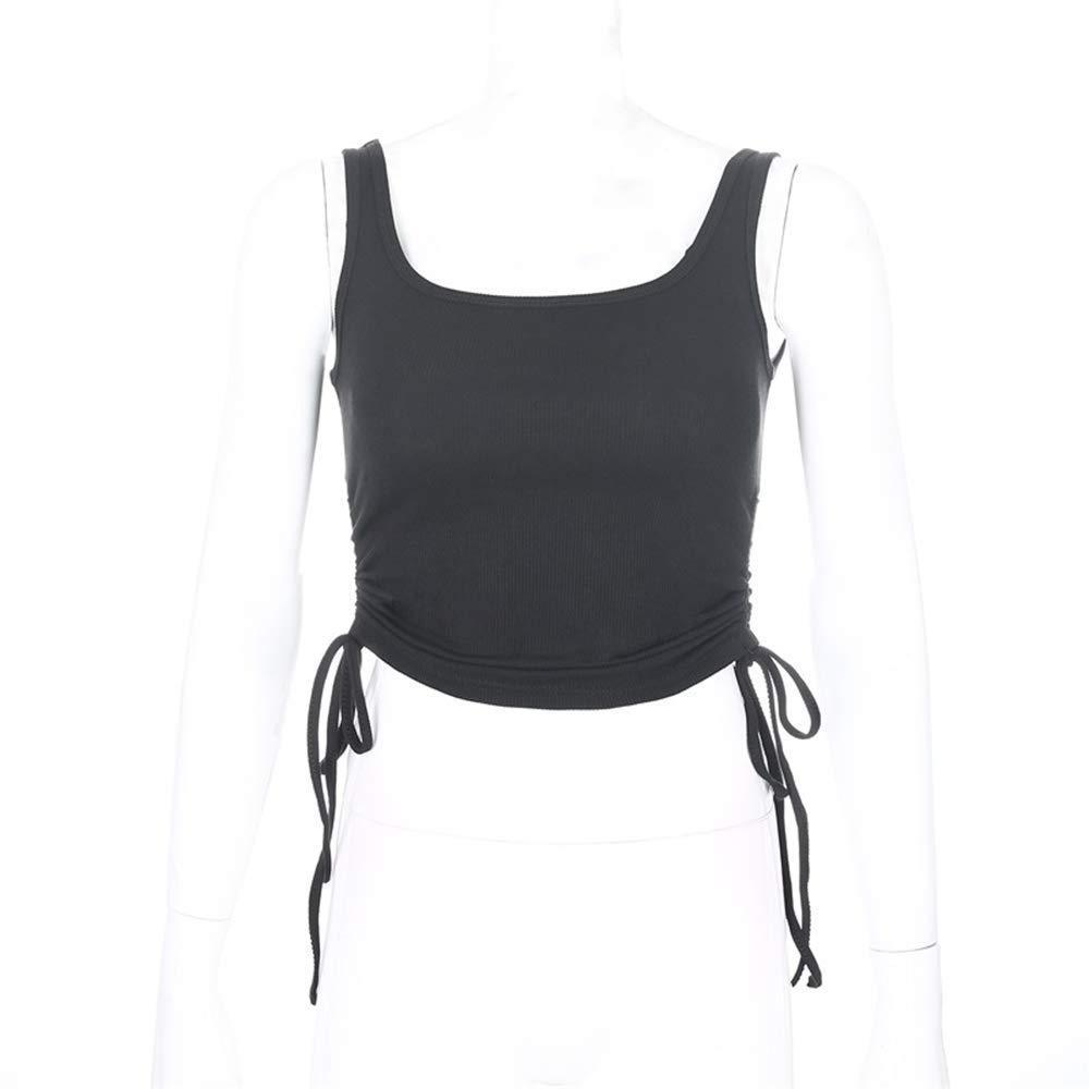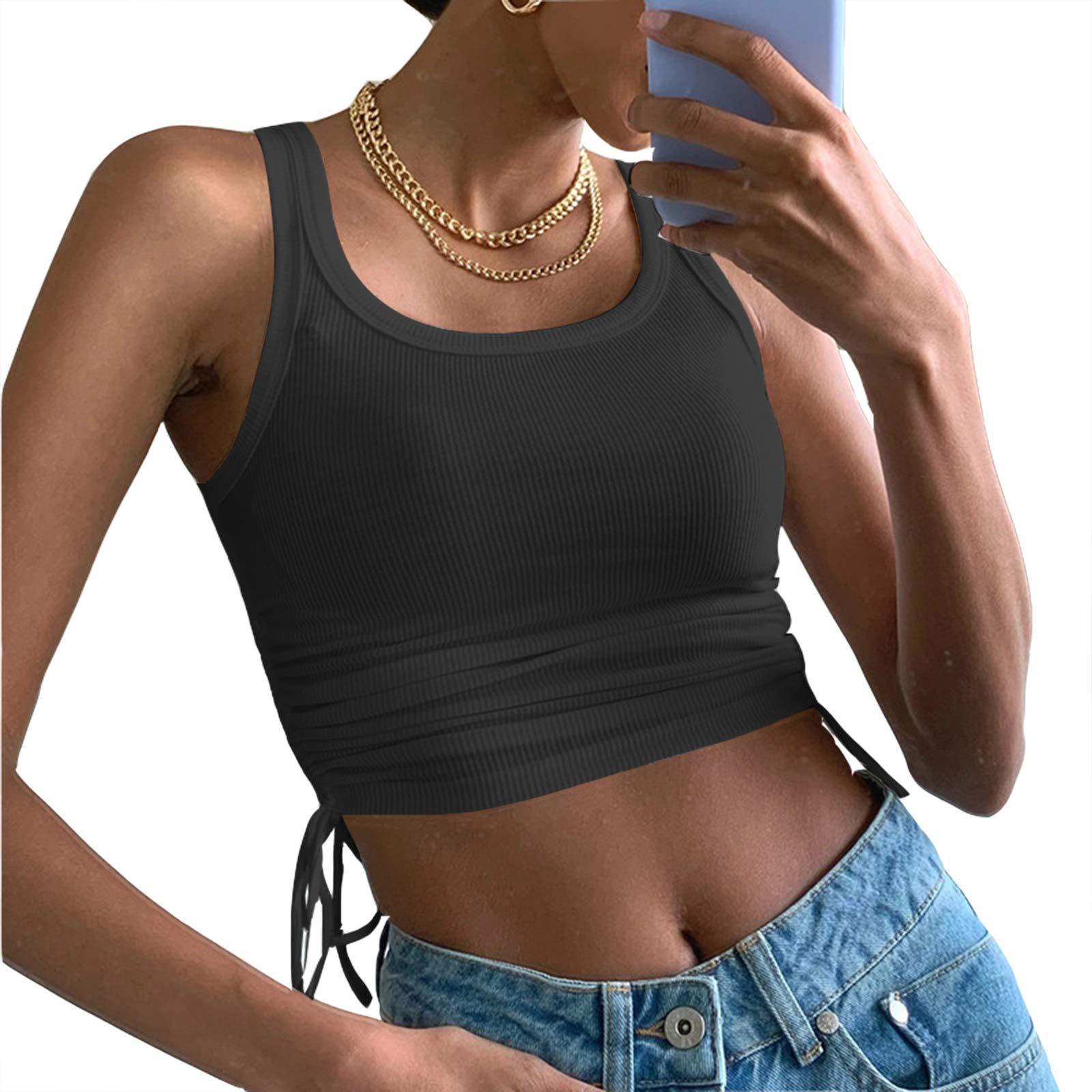 2025夏季新款跨境外贸亚马逊女士时尚纯色短款圆领无袖上衣 T恤